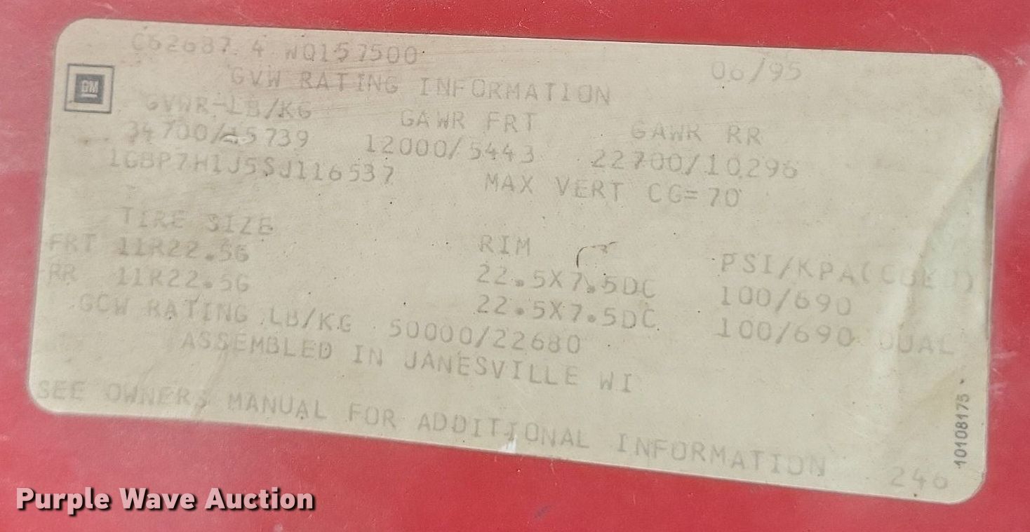Purple Wave is selling a used Construction Dump Truck in Missouri. This item is a 1995 Chevrolet Kodiak dump truck with the following: Miles: 262,397 on odometer, VIN: 1GBP7H1J5SJ116537