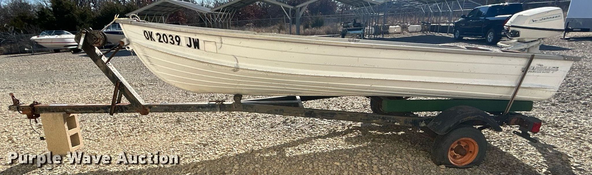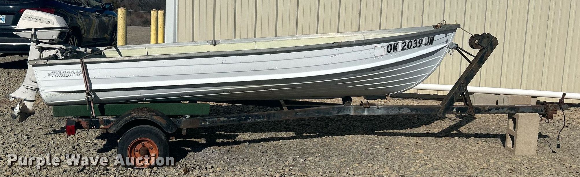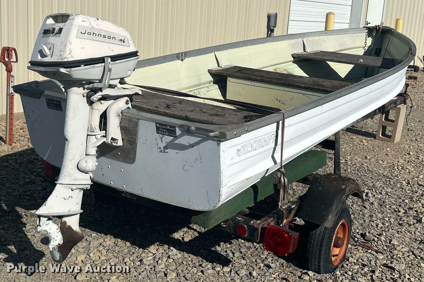 1964 Starcraft 12ft. Sea Scamp boat. Hours: Unknown, Length: 12', Hull ID: 12671, Sale #: 2430-KP. Engine Engine type: Outboard, 1965 Johnson CD22M, Serial: J2586144, Cylinders: 2, Fuel type: Gas, HP: 6. Operators station Capacity Person: 5. Trailer Shop Built, Overall length: 14', Overall width: 62", Ball hitch size: 1 7/8", Axles: Single, Tire size: 4.80-8. Notes Flat tires, Unknown operating condition. Boat- Oklahoma title. Motor -Transfer of ownership documentation will be a bill of sale. Trailer- Transfer of ownership documentation will be a bill of sale. Title distribution may be delayed up to 14 days from verification of funds. Oklahoma State University. Stillwater, OK 74074