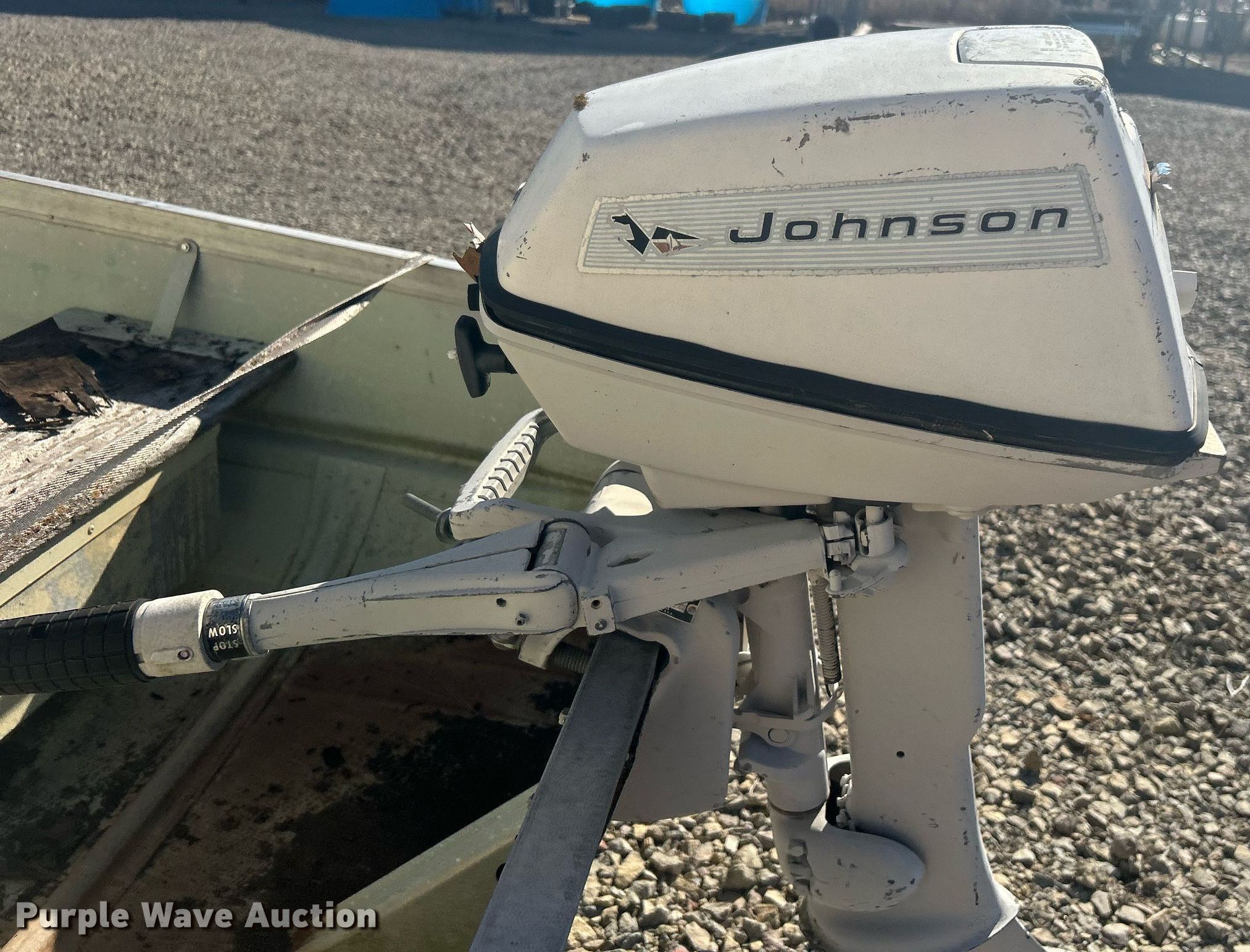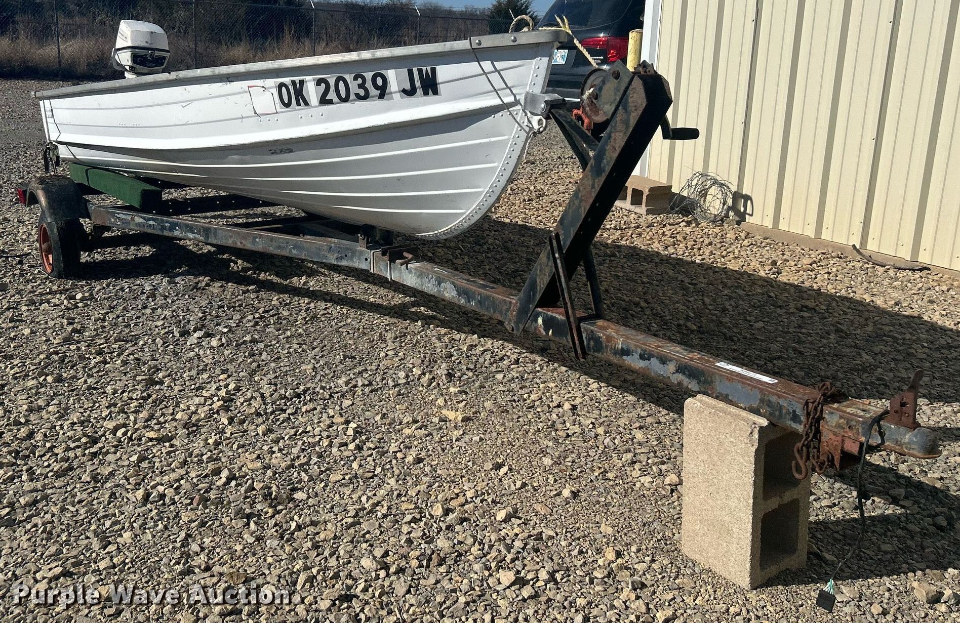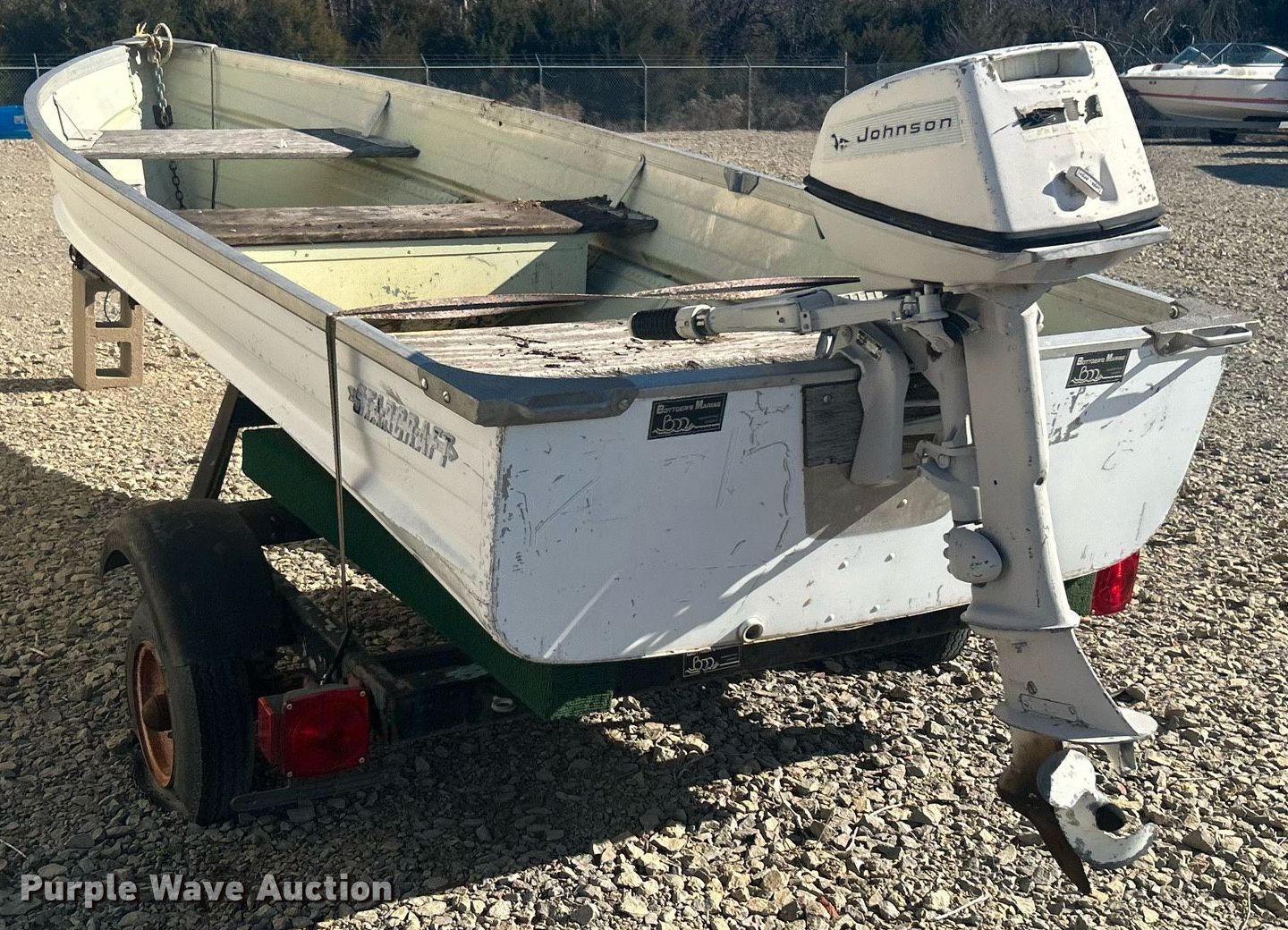 1964 Starcraft 12ft. Sea Scamp boat. Hours: Unknown, Length: 12', Hull ID: 12671, Sale #: 2430-KP. Engine Engine type: Outboard, 1965 Johnson CD22M, Serial: J2586144, Cylinders: 2, Fuel type: Gas, HP: 6. Operators station Capacity Person: 5. Trailer Shop Built, Overall length: 14', Overall width: 62", Ball hitch size: 1 7/8", Axles: Single, Tire size: 4.80-8. Notes Flat tires, Unknown operating condition. Boat- Oklahoma title. Motor -Transfer of ownership documentation will be a bill of sale. Trailer- Transfer of ownership documentation will be a bill of sale. Title distribution may be delayed up to 14 days from verification of funds. Oklahoma State University. Stillwater, OK 74074