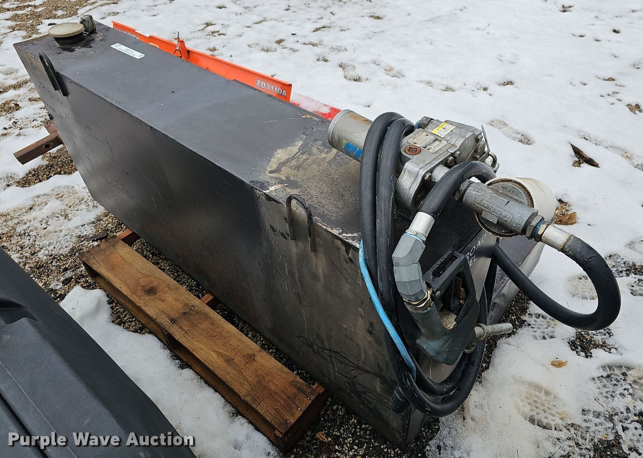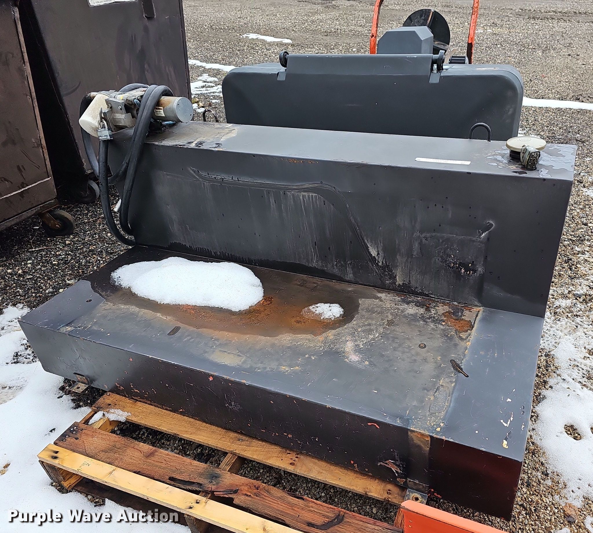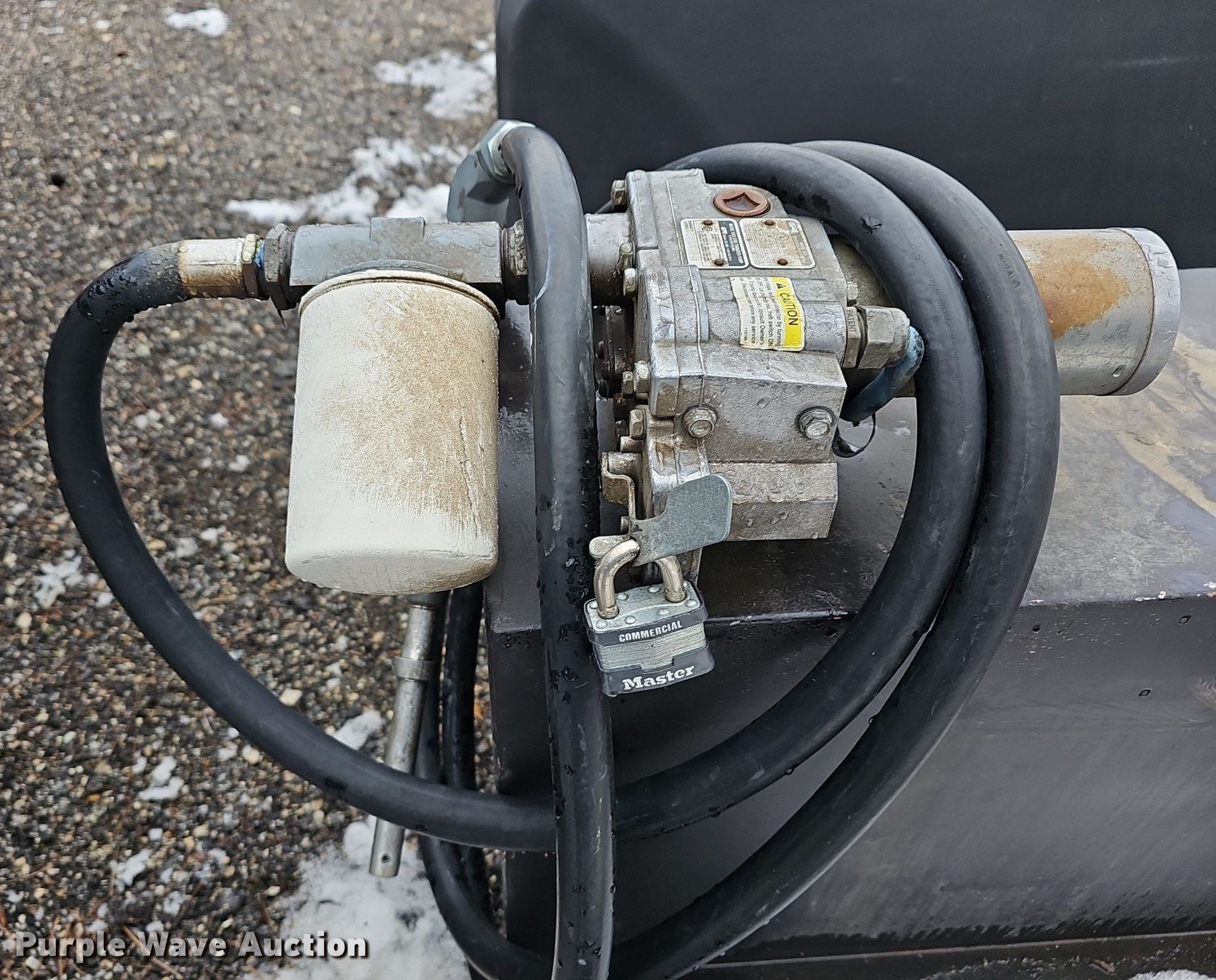 Purple Wave is selling a used Fuel and Lube in Kansas. This item is a Fuel tank with the following: Dimensions: 5' x 32" x 25", Capacity: 90 gallon, Pump, hose and nozzle included
