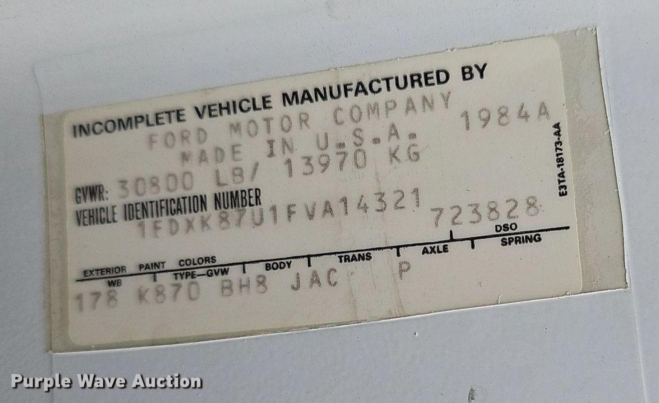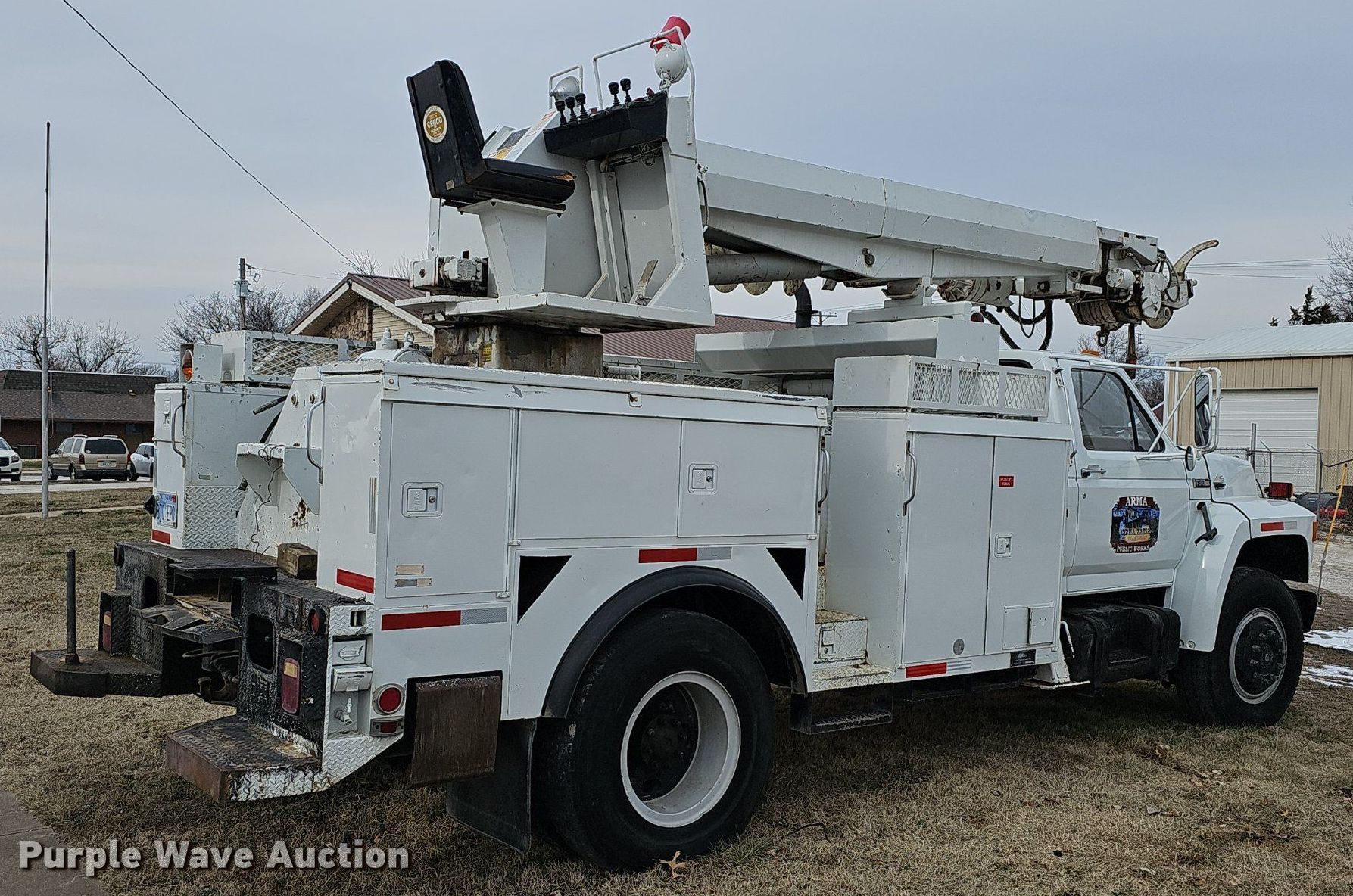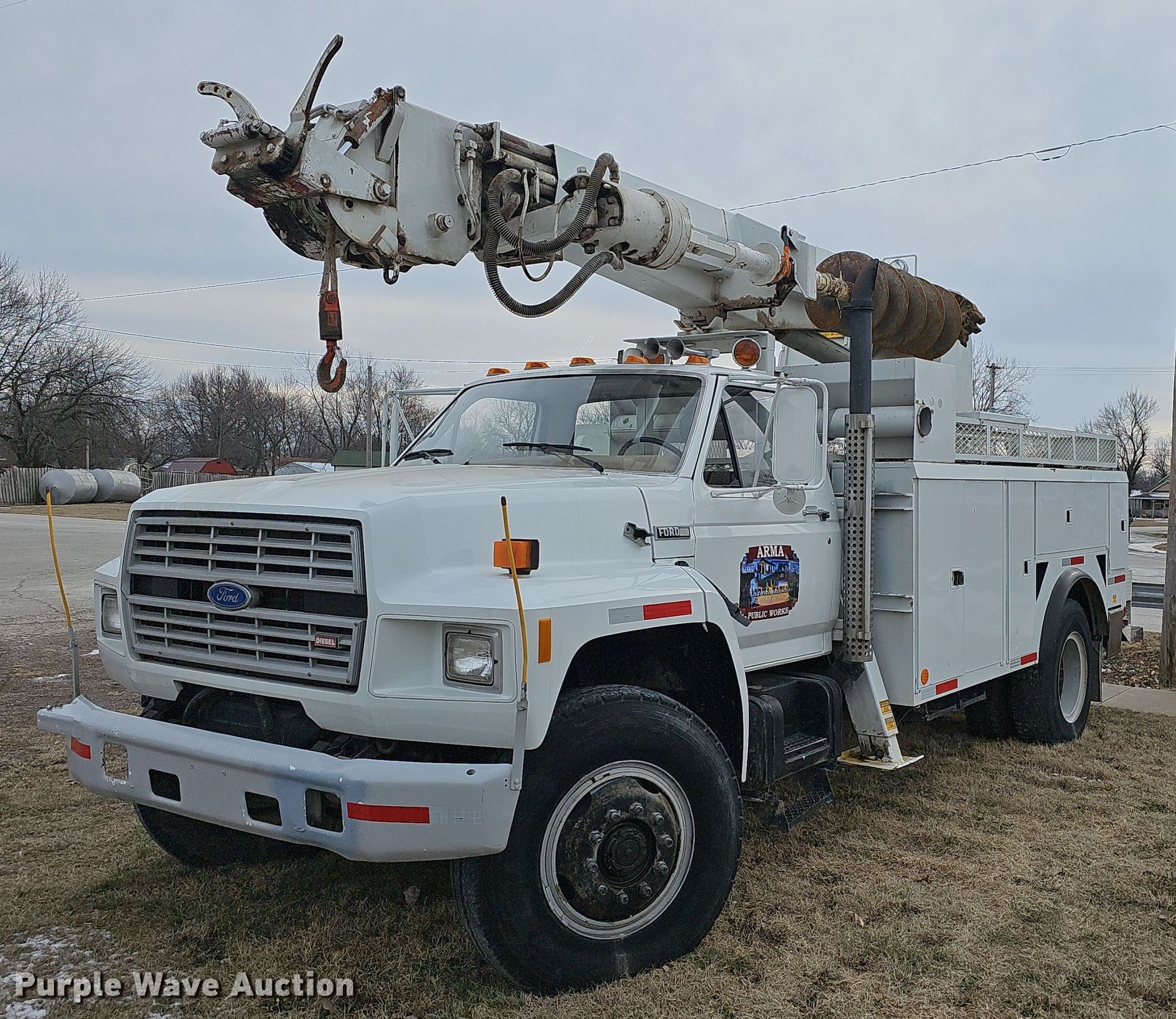 Purple Wave is selling a used Digger Derrick Truck in Kansas. This item is a 1985 Ford F8000 digger derrick truck with the following: Miles: 49,325 on odometer, VIN: 1FDXK87U1FVA14321, Unit #: 4321