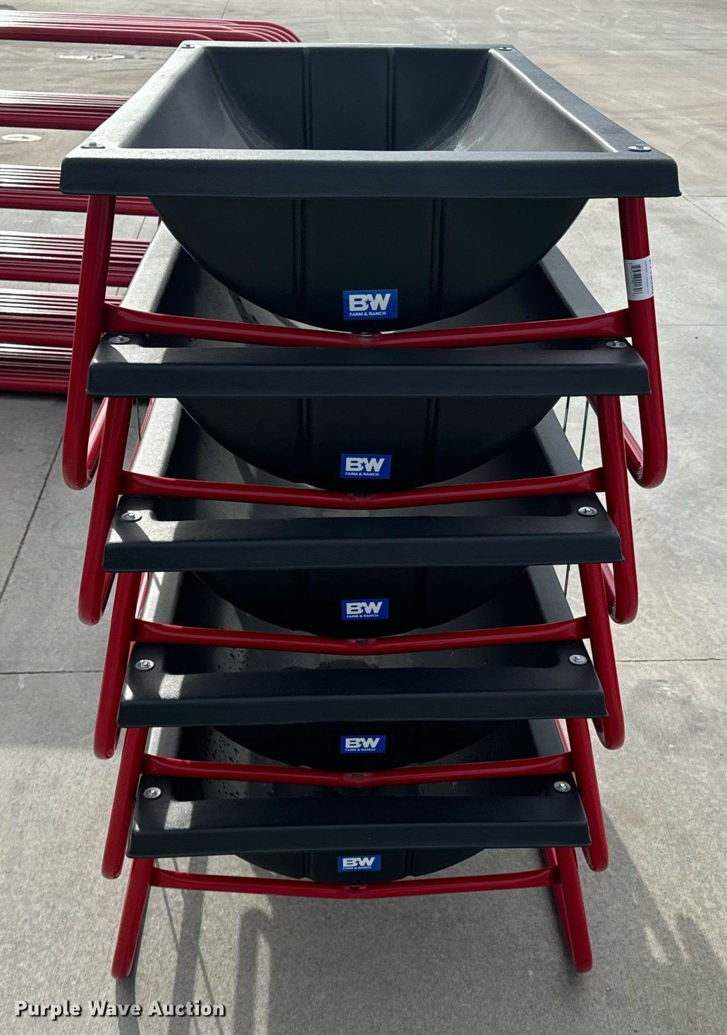 (5) B&W PT15050 bunk feeders. 4' W x 20" H, Unused. B&W Custom Truck Bed / B&W Trailer Hitches / B&W Farm and Ranch. Humboldt, KS 66748