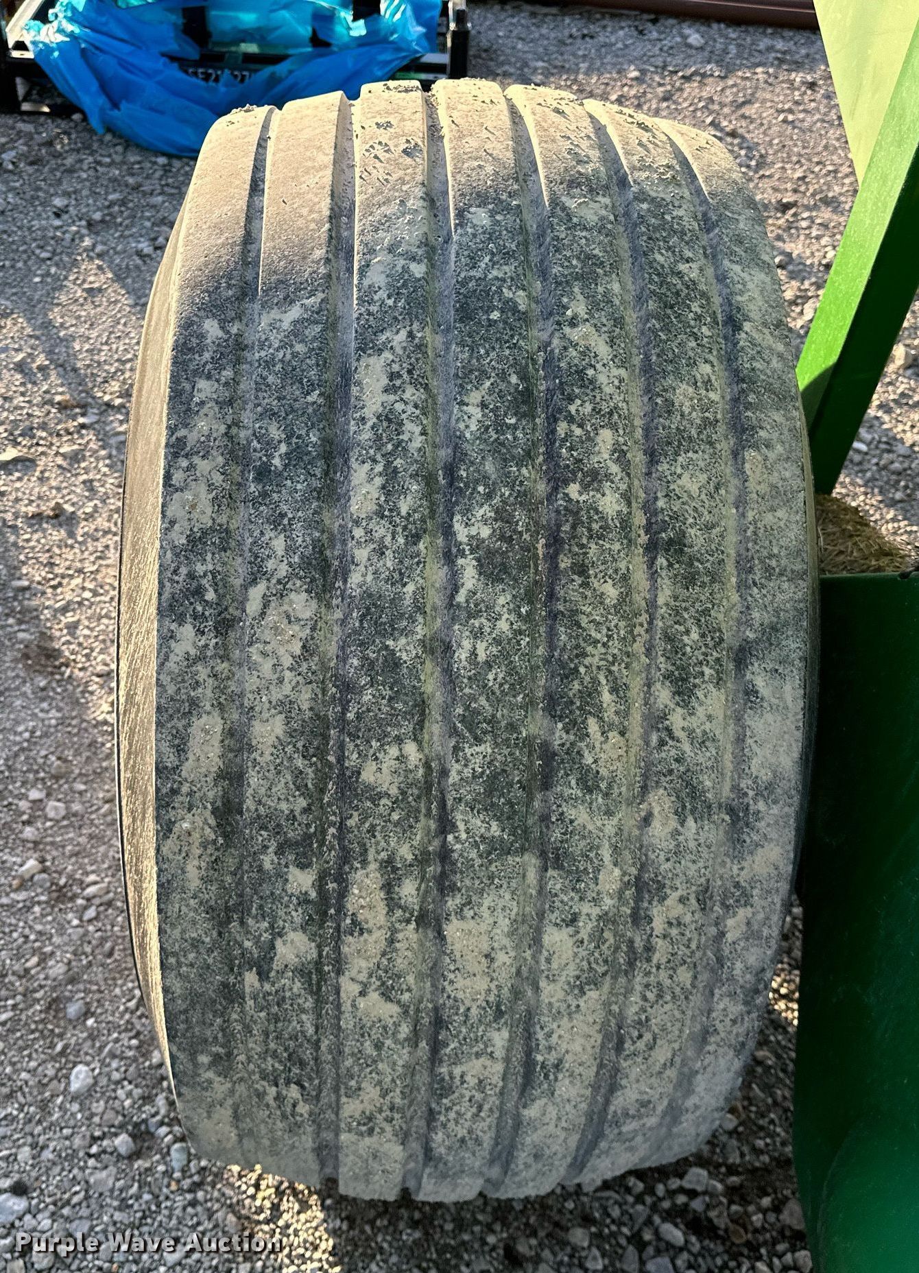 John Deere 569 Mega Wide Plus round baler. Claim #: 3-818319. Features Transport lights, Feed assist roller, Gauge wheels Size: 4.80-8/3.75, Pickup width: 6', Hydraulic pickup lift, Bale size: 5'x6', Auto-tie, Twin twine tie, Net-wrap, Bale kicker. Tires Size: 21.5L-16.1SL, Brand: Titan. Notes Monitor not included, Wiring harness missing, Hydraulic hose missing, Tongue damaged, needs replaced, PTO half shaft missing, Non-operational unit. Insurance salvage unit.. Oklahoma Farm Bureau Insurance. Owasso, OK 74055