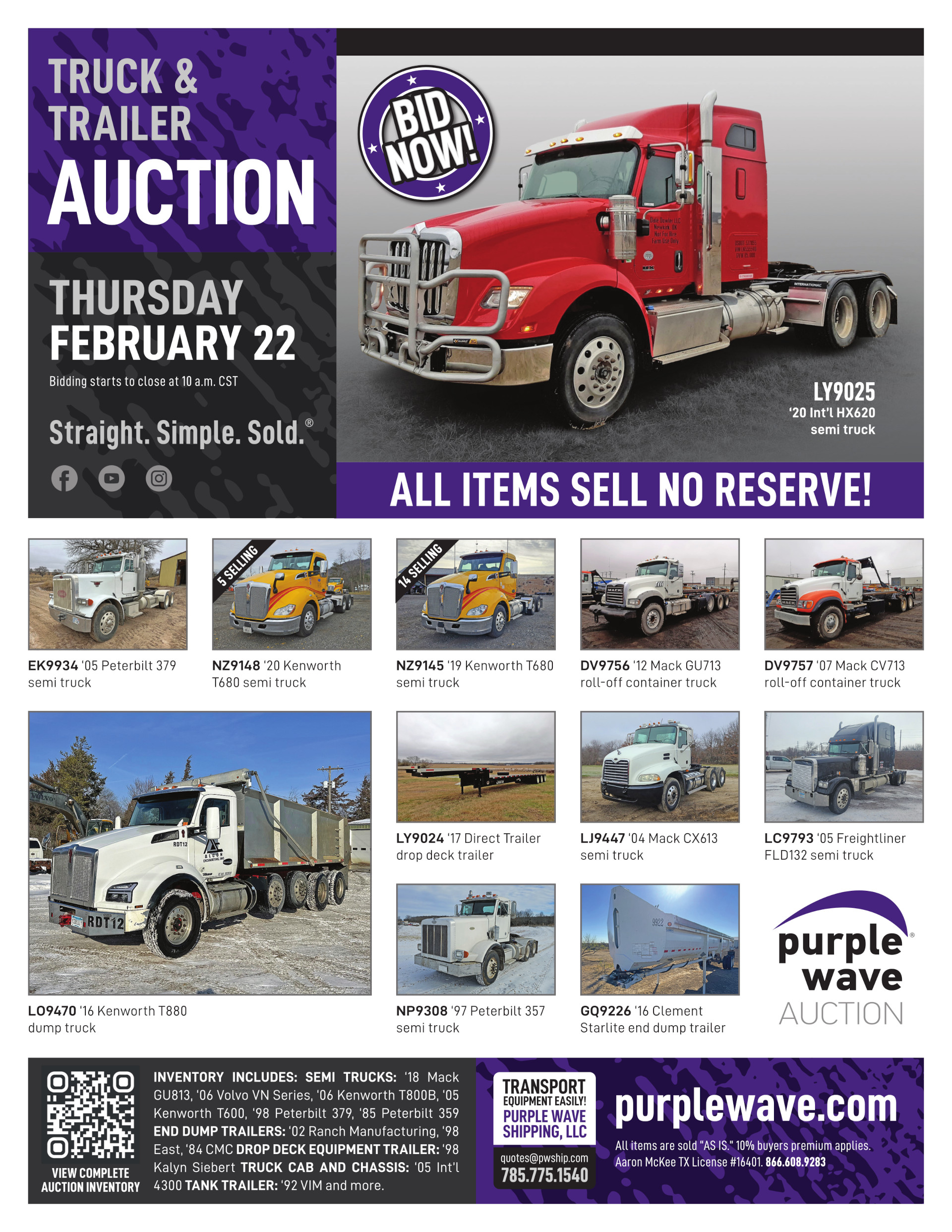 SOLD! Truck and Trailer Auction | 2-22-2024