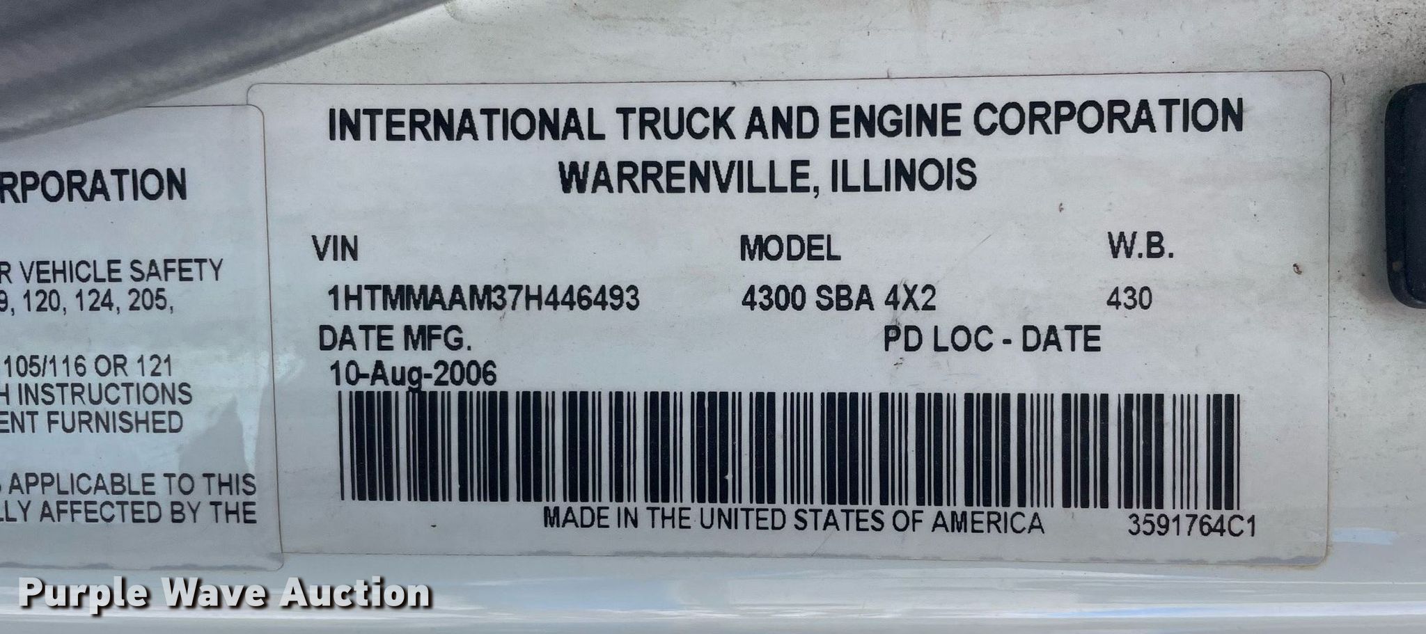 Purple Wave is selling a used Truck Chassis in New York. This item is a 2007 International 4300 truck cab and chassis with the following: Miles: 424,984 on odometer, VIN: 1HTMMAAM37H446493
