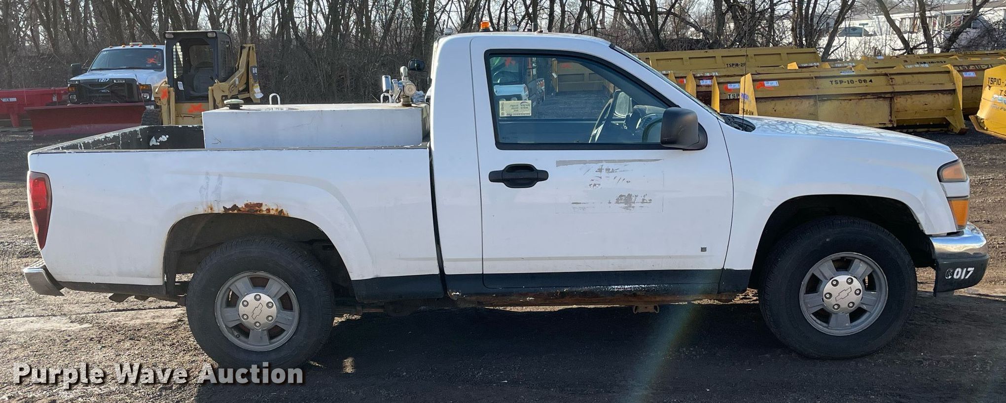 2006 GMC Canyon pickup truck. Miles: 121,361 on odometer, VIN: 1GTCS146868259017, Unit #: 6017. Engine Displacement: 3.5L L5 DOHC, Fuel type: Gas. Transmission Automatic. Interior AC, Heat, Cruise control. Features Auxiliary fuel tank GPI EZ8 pump Volts: 12.. Tires Size: 225/75R15. Notes Dash warning indicator: Check engine, Non-operational tailgate. Illinois title. Snow Management Equipment Auction. 31W377 Spaulding Road. Elgin, IL 60120