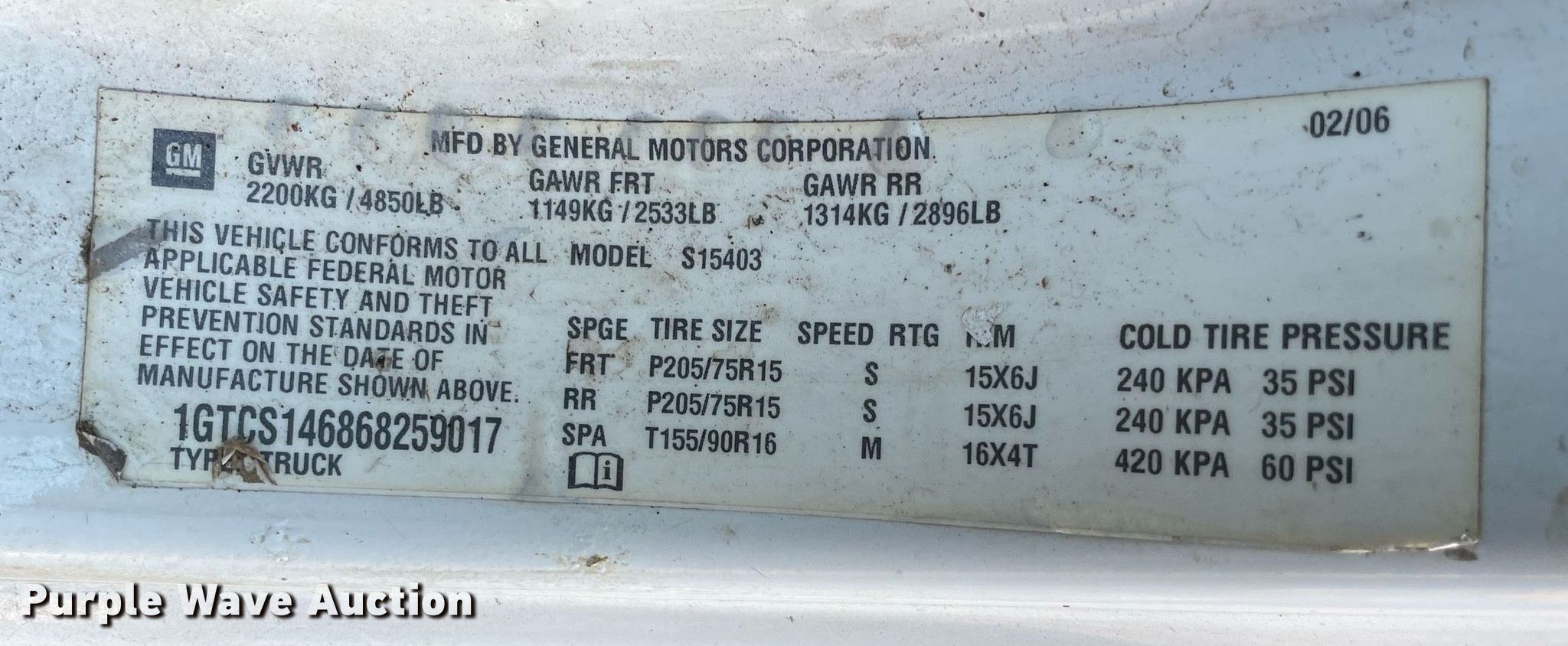 - VIN: 1GTCS146868259017