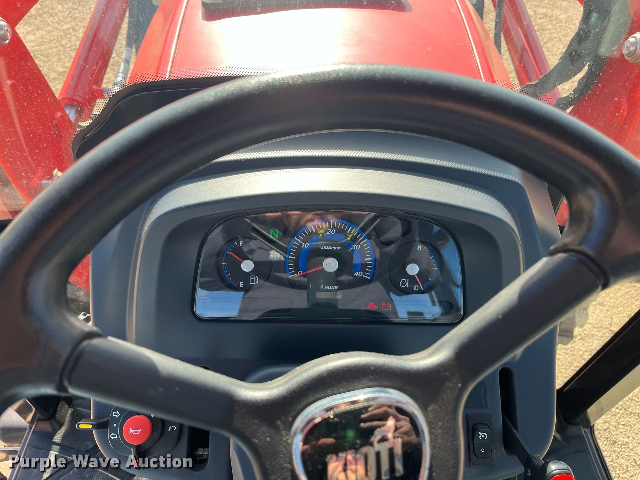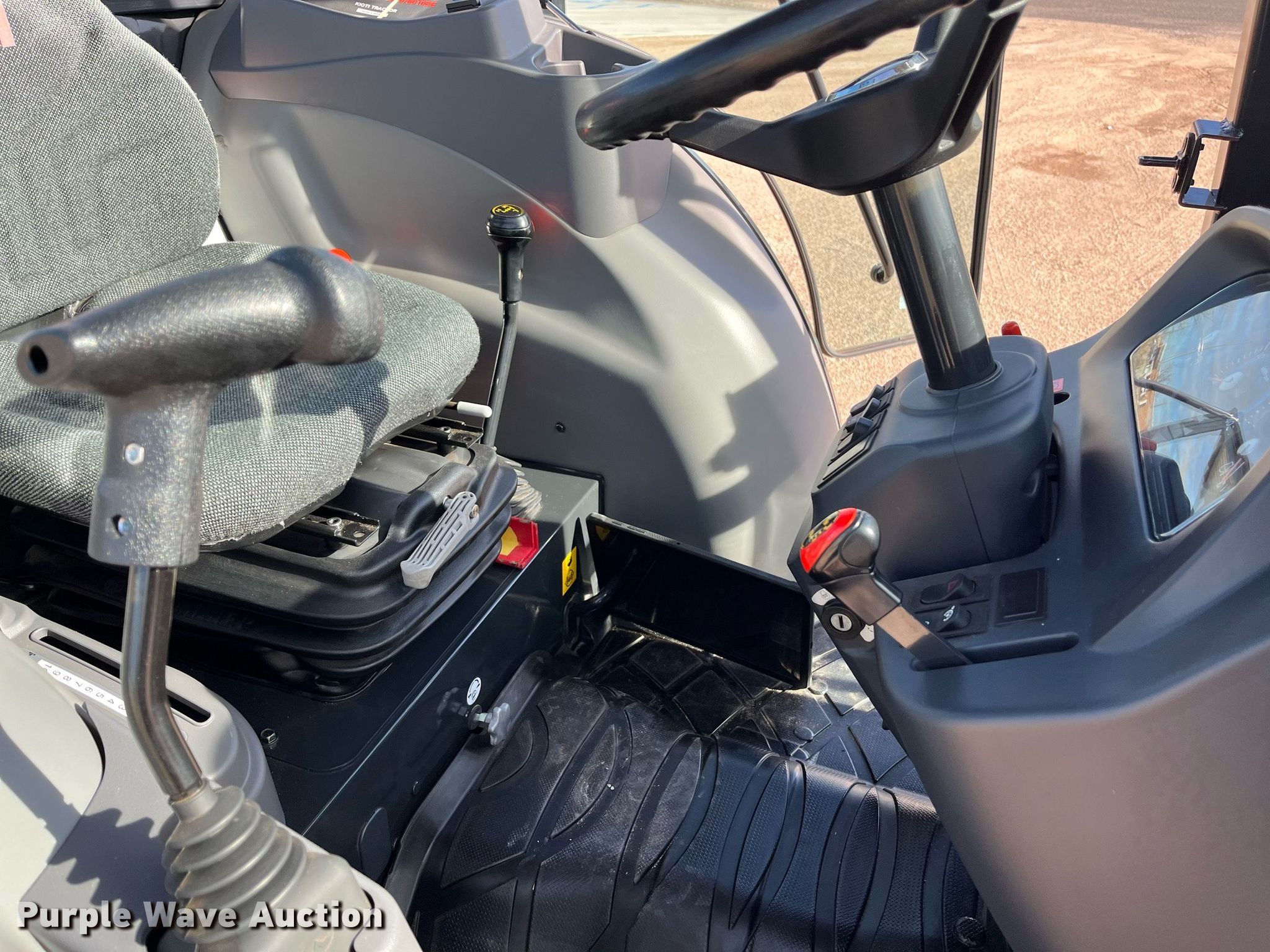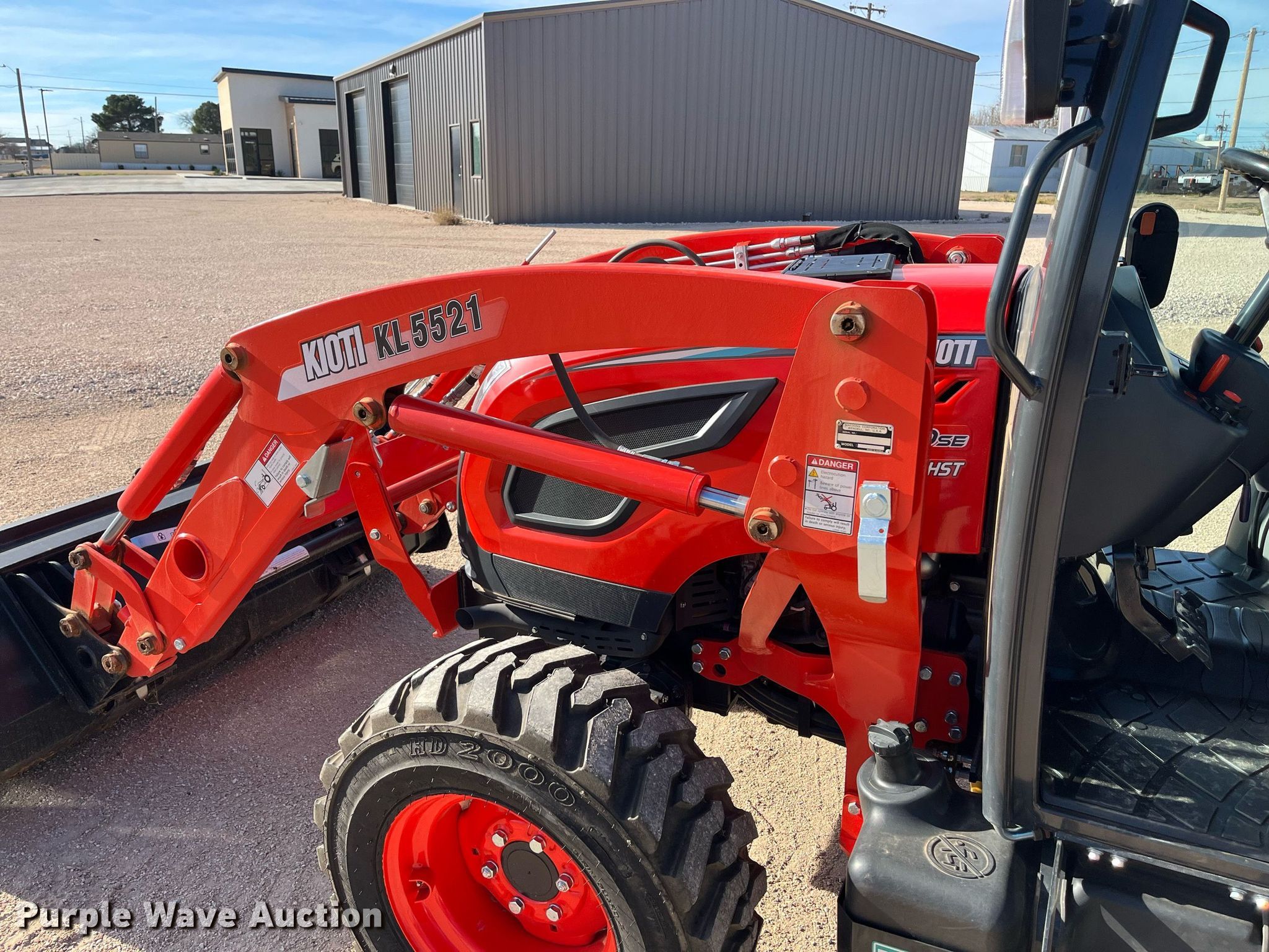 Kioti DK4210SE MFWD tractor. Hours: 39 on meter, Serial: YGG800226. Engine Cylinders: 3, Fuel type: Diesel. Transmission Hydrostatic, Three speed travel, Differential lock. Operators station AC, Heat. Features PTO: 540, Three point Top link, Seven pin outlet, Hydraulic remote sets Rear: 1, Loader Kioti KL5521, Quick attach, Controls: Joystick, Bucket Width: 72".. Tires Front: 10-16.5, Rear: 14.9-24. 300 Southeast Avenue C. Seminole, TX 79360