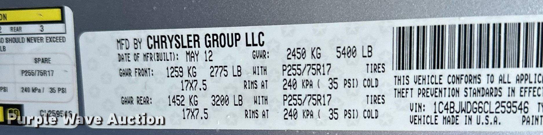 Purple Wave is selling a used Passenger Vehicle in Kansas. This item is a 2012 Jeep Wrangler Unlimited SUV with the following: Miles: 134,757 on odometer, VIN: 1C4BJWDG6CL259546