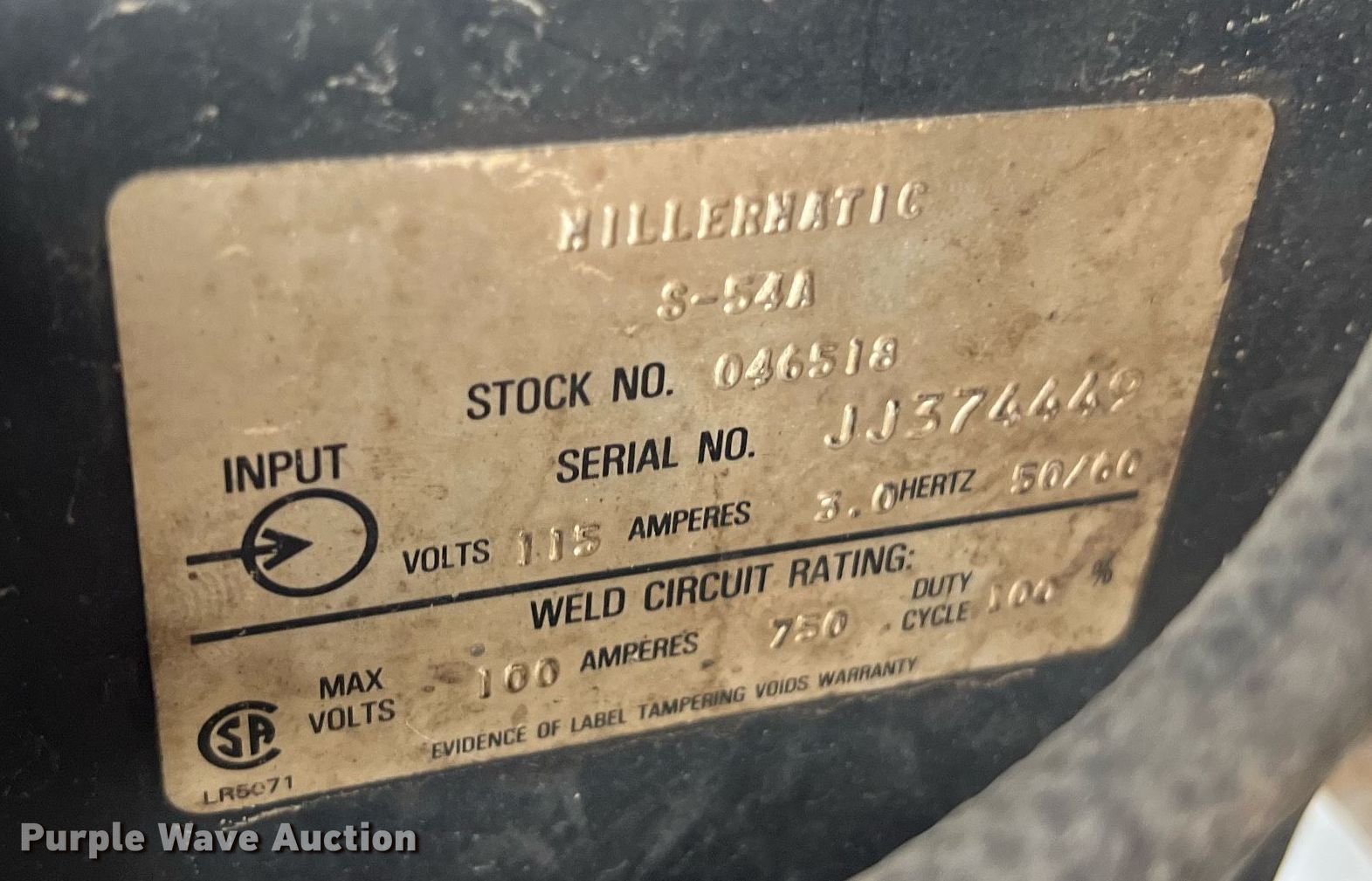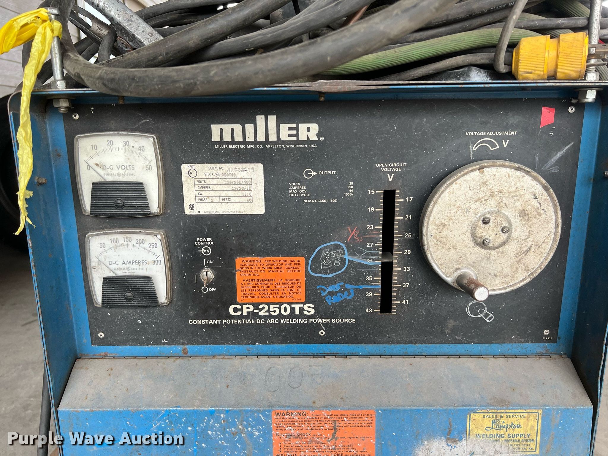 Purple Wave is selling a used Welder (Manual) in Texas. This item is a Miller CP-250TS welder/generato with the following: Serial: JF942815