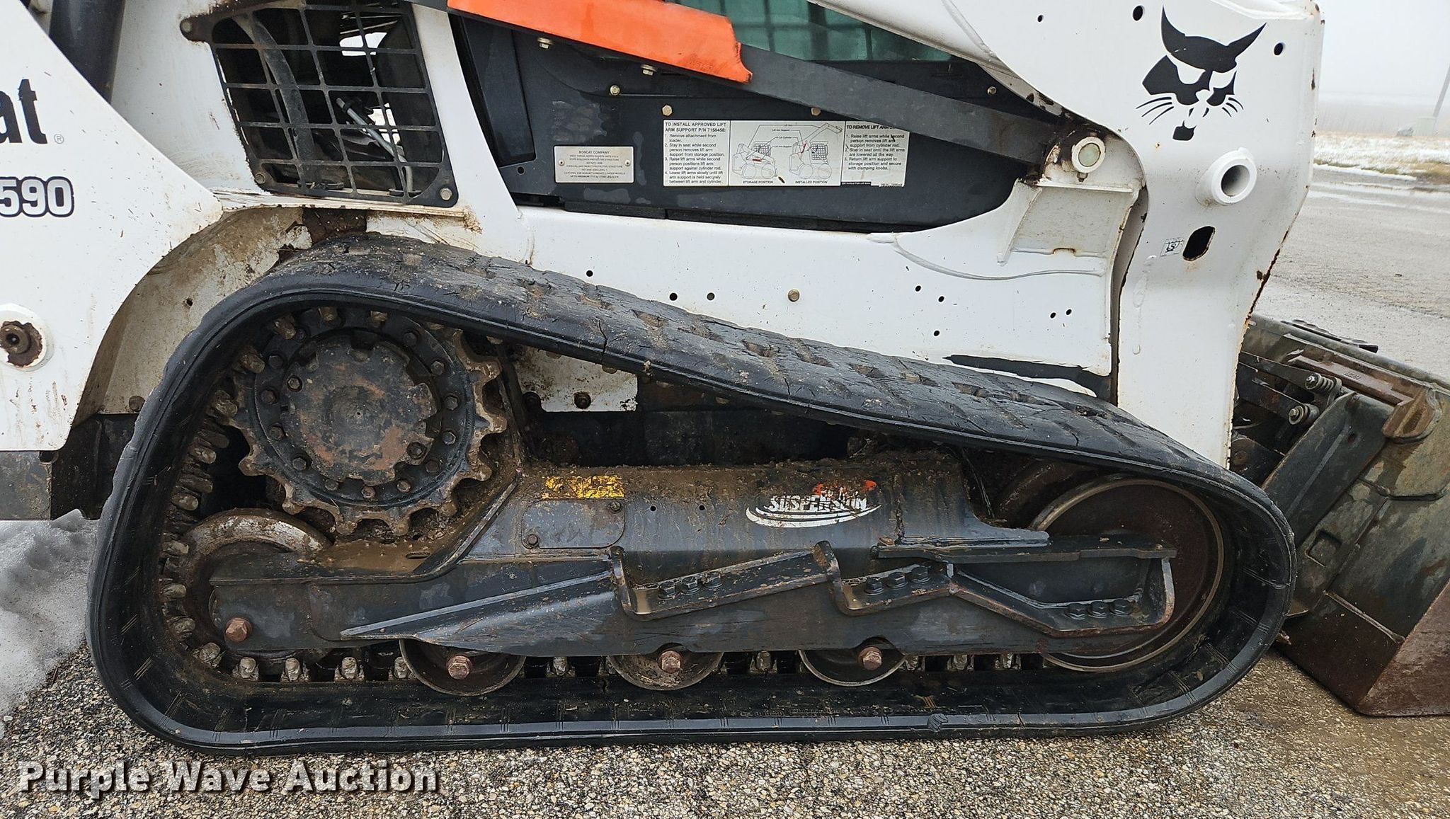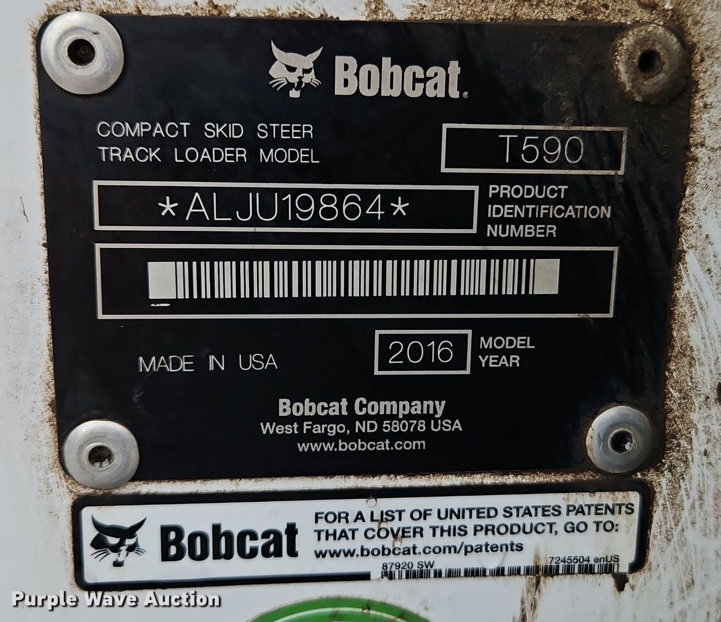Purple Wave is selling a used Tracked Skid Steer Loader in Missouri. This item is a 2016 Bobcat T590 tracked skid steer loader with the following: Hours: 1,452 on meter, Serial: ALJU19864