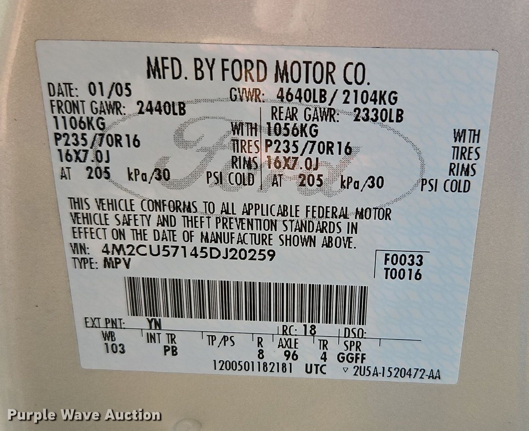 • LB9765 image for item LB9765 2005 Mercury  Mariner Premier SUV