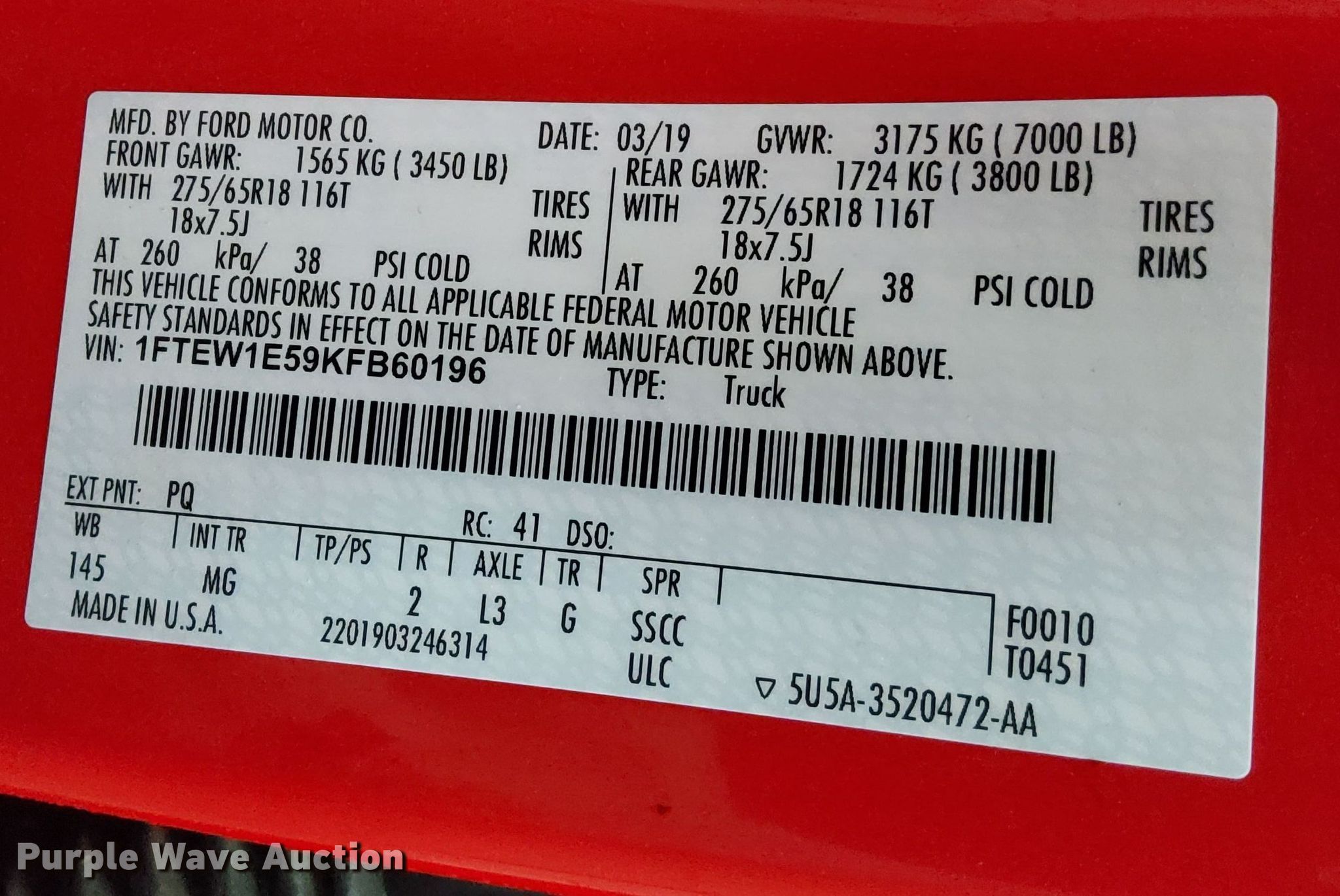 Purple Wave is selling a used 1/2 Ton Pickup or Van in Iowa. This item is a 2019 Ford F150 SuperCrew pickup truck with the following: Miles: 106,689 on odometer, VIN: 1FTEW1E59KFB60196