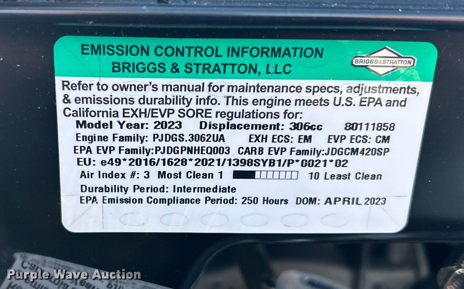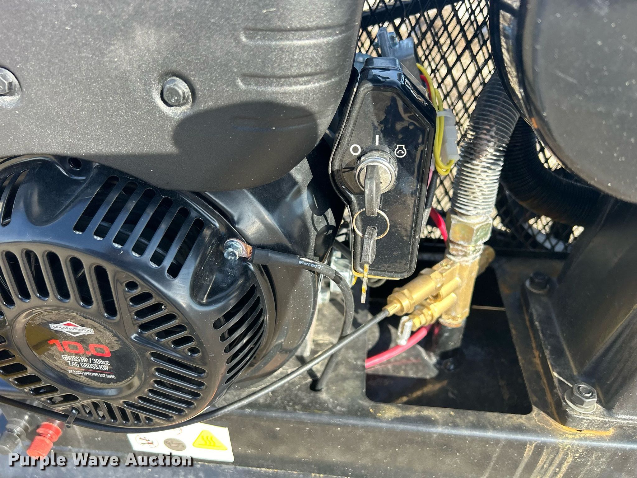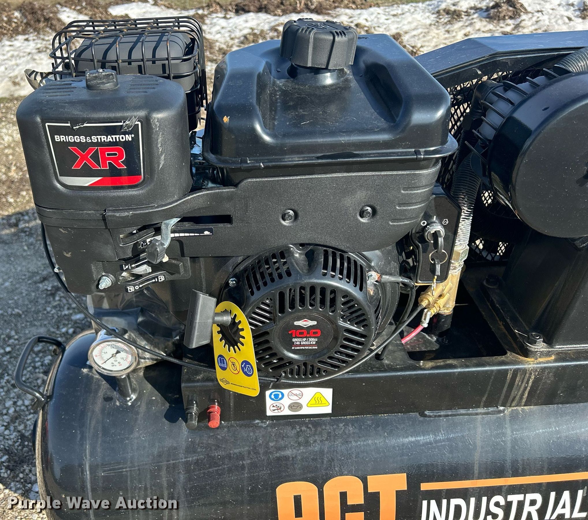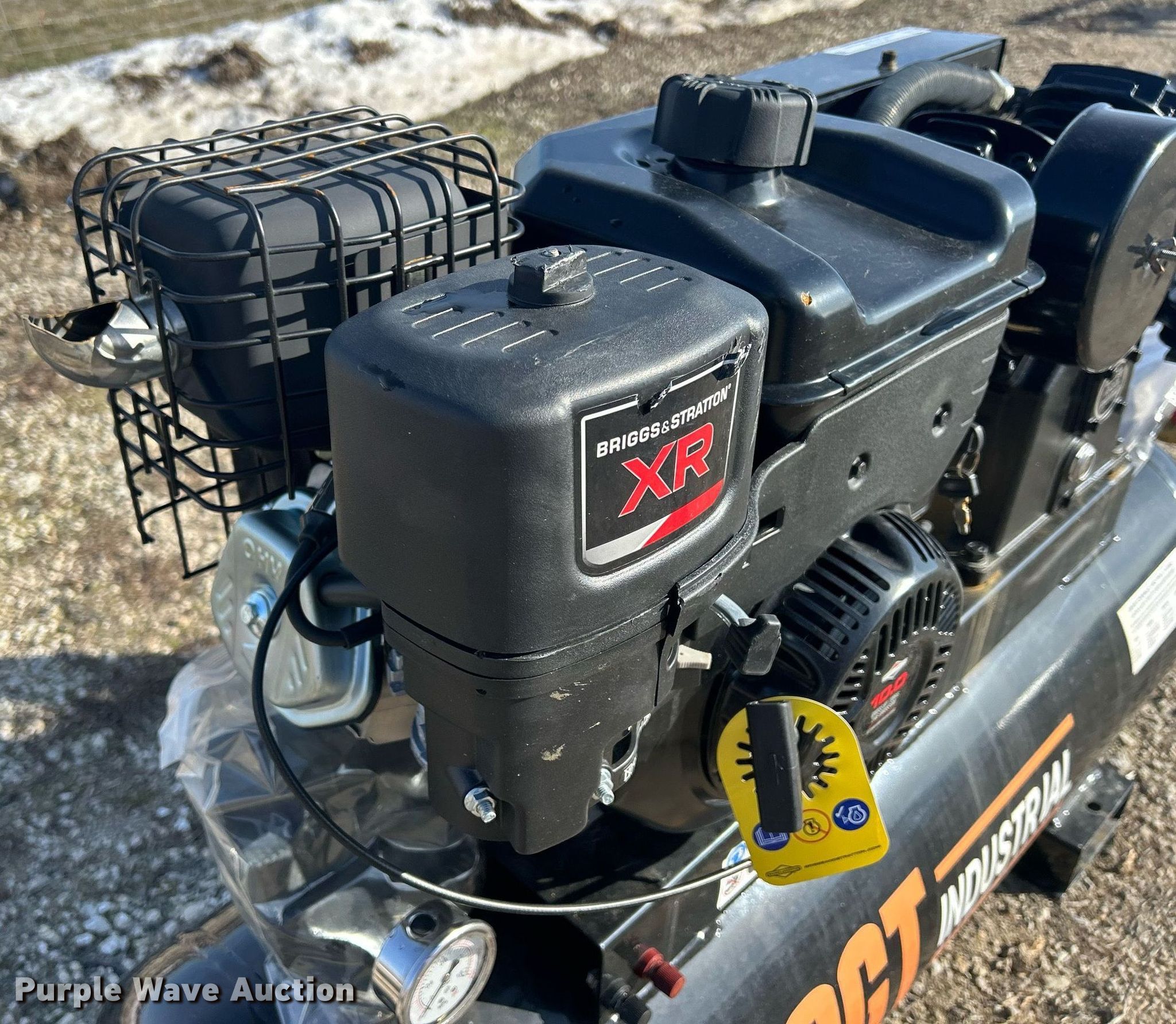 2023 AGT air compressor. Engine. Briggs & Stratton XR, Displacement: 306 cc, Fuel type: Gas, HP: 10. Features Tank capacity: 30 gallons, Skid mounted. Notes Unused. Springville, IA 52336