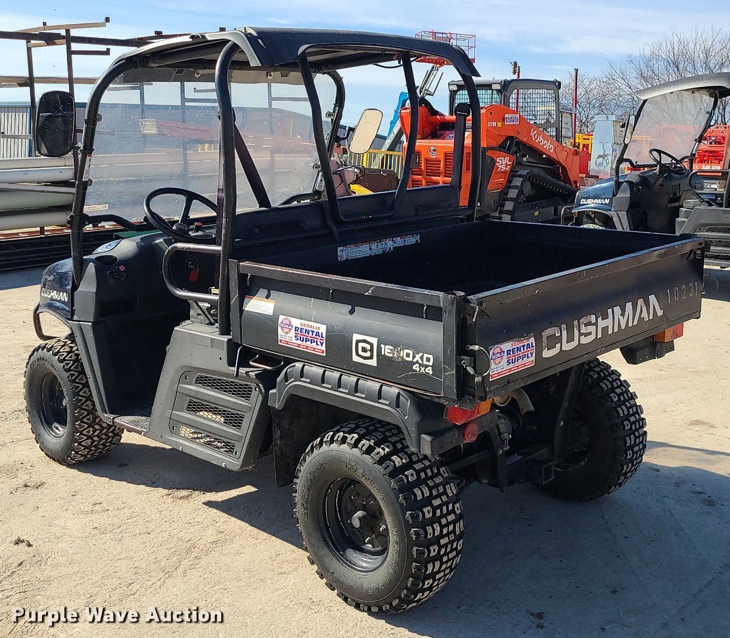 2013 Cushman 1600XD utility vehicle. Hours: 527 on meter, VIN: AD1UW22BPE2000128. Engine Displacement: 1.007L, Cylinders: 3, Fuel type: Diesel. Chassis Four wheel drive. Operators station Canopy. Features Receiver hitch, Dump bed 52" L x 60" W. Tires Size: 25x10x12. Transfer of ownership documentation will be a bill of sale. Sedalia Rental & Supply. 21474 US-50. Sedalia, MO 65301