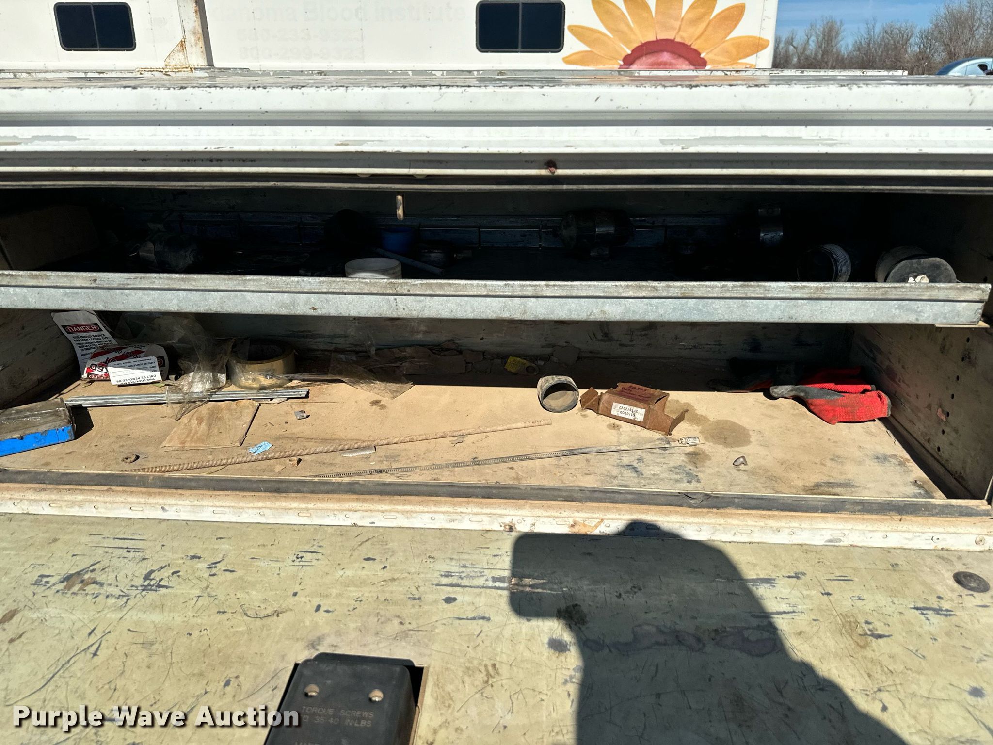 2015 Ford F550 Super Duty utility / service truck. Miles: 281,176 on odometer, VIN: 1FD0X5GT4FEB32095. Engine Displacement: 6.7L V8 OHV, Cylinders: 8, Fuel type: Diesel. Transmission Automatic. Chassis Axles: Single, Suspension: Spring, Brakes: Hydraulic. Interior AC, Heat, Heated mirrors, Power windows, Power locks, Cruise control, Auxiliary controls, Brake controller. Features 12' L x 8' W. Tires Size: 255/70R19.5. Notes No battery, Non-operational unit. Oklahoma title. Title distribution may be delayed up to 14 days from verification of funds. Jim Miller. 5014 sw 20th. Oklahoma City, OK 73099