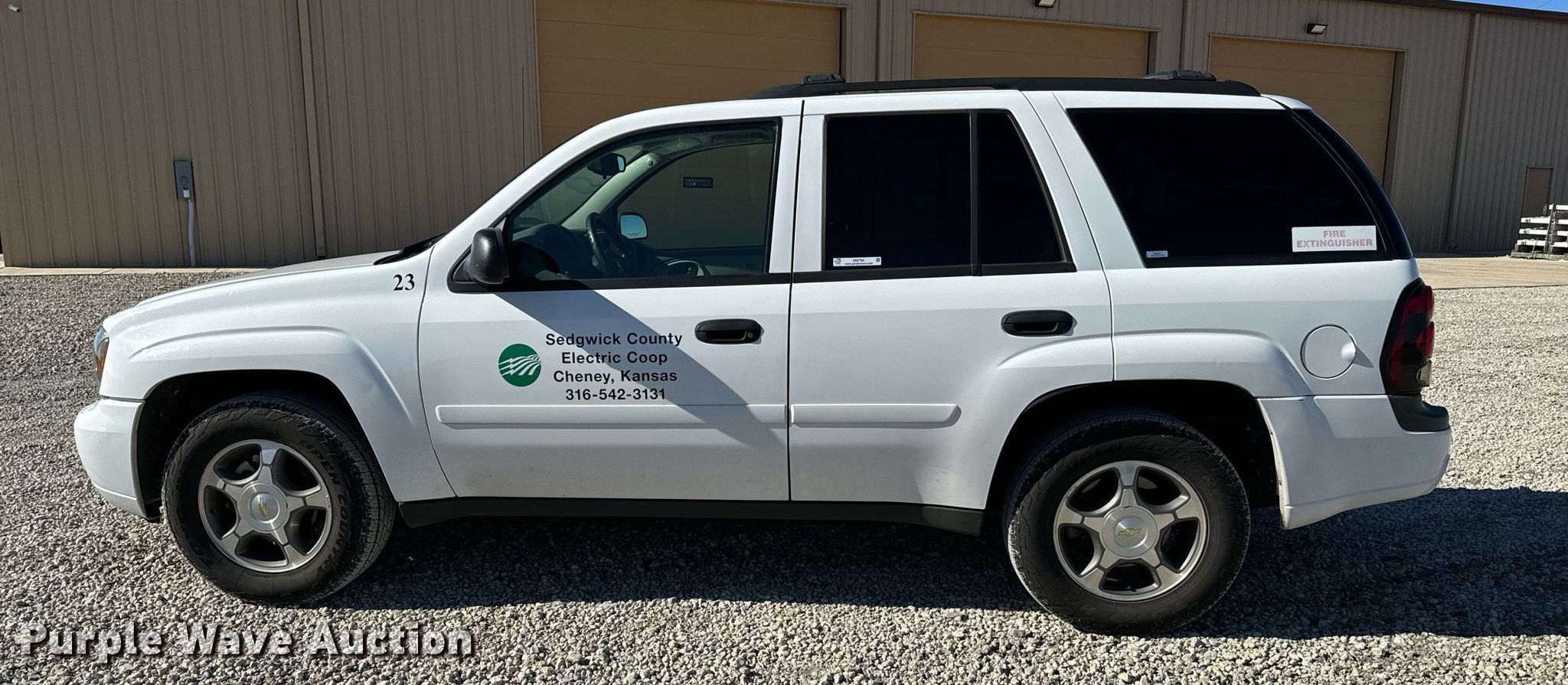 2008 Chevrolet TrailBlazer LS SUV. Miles: 132,576 on odometer, VIN: 1GNDT13S282262394. Engine Displacement: 4.2L L6 DOHC, Cylinders: 6, Fuel type: Gas. Transmission Automatic, Four wheel drive. Interior AC, Heat, Seat: Power driver, Power windows, Power locks, Cruise control. Tires Size: 245/65R17. Notes Decals will be removed prior to auction. Kansas title. Title distribution may be delayed up to 14 days from verification of funds. Sedgwick County Electric Coop. Cheney, KS 67025