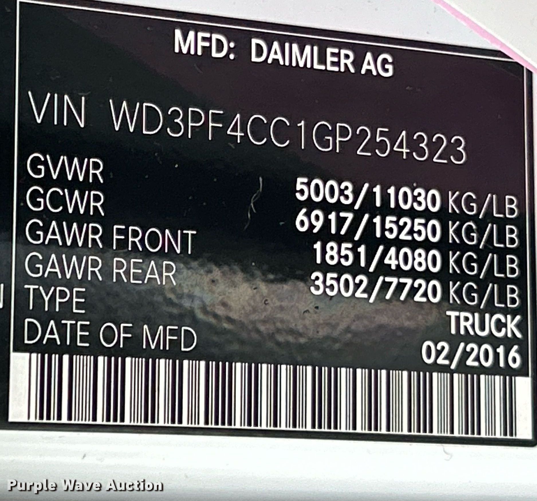 - VIN: WD3PF4CC1GP254323