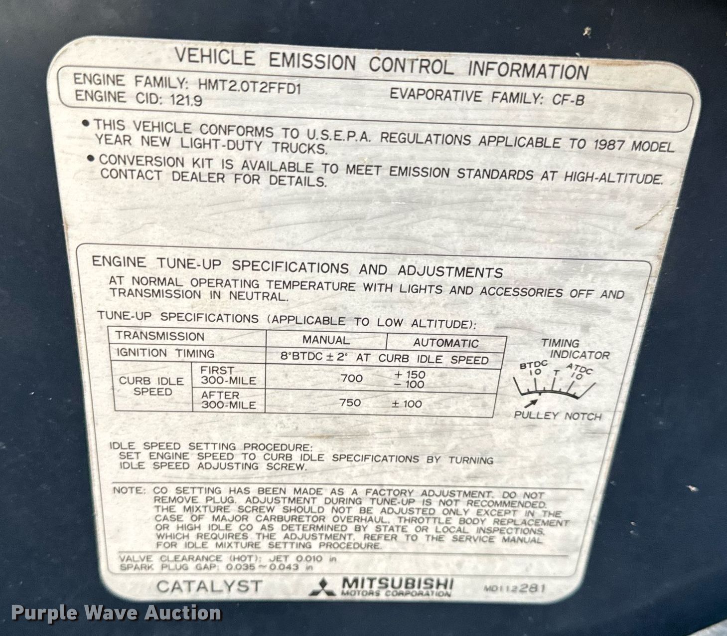 Purple Wave is selling a used Compact Pickup or Van in Missouri. This item is a 1987 Dodge Ram 50 pickup truck with the following: Miles: 70,703 on odometer, VIN: JB7FL24D7HP069068