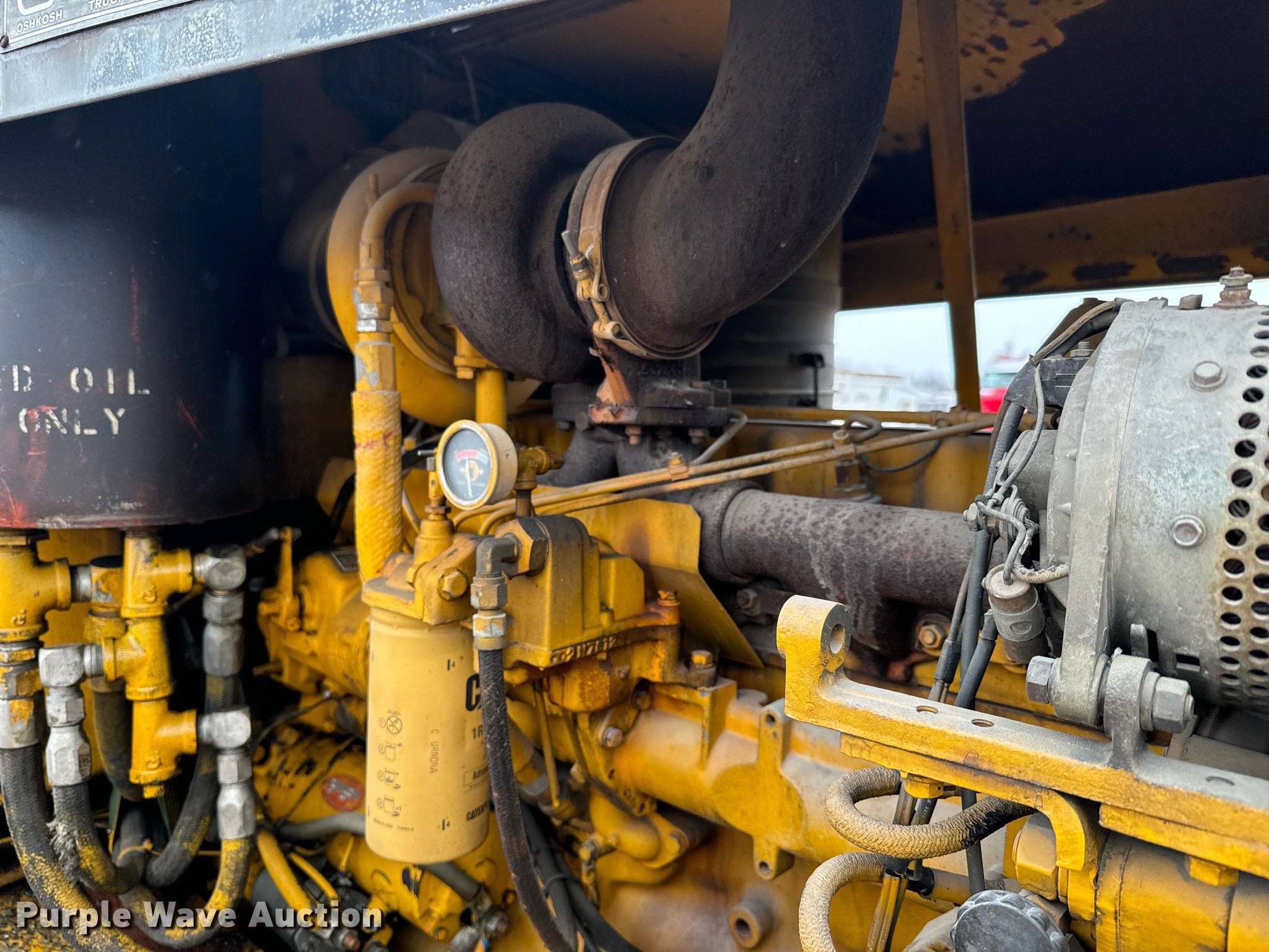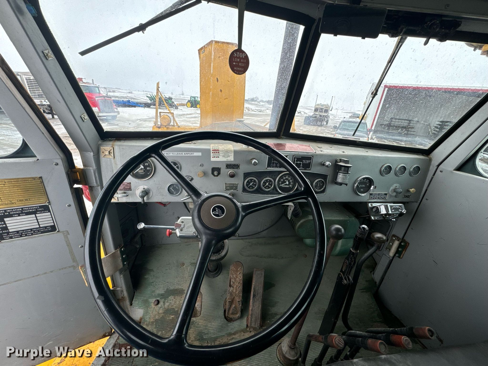 1975 Oshkosh W-1700-15 snowblower truck. Miles: 2,521 on odometer, VIN: 3626-R-75. Engine Caterpillar 1673C, Cylinders: 6, Fuel type: Diesel. Second engine Caterpillar D343, Cylinders: 6, Fuel type: Diesel. Transmission Twin stick, Manual, Speed: 15. Chassis Four wheel drive, Axles: Single, Suspension: Spring, Brakes: Hydraulic, GVWR: 34,000 lbs. Interior Heat. Features Snow blowers Width: 102", Height: 57", (2) Augers Width: 36", Blower Width: 36". Tires Size: 14.00R20. Notes Cracked driver window, Rear glass missing, Air compressor issues, coolant in air system, Non-operational snow blower, non - operational U joint , Drive shaft issues, non - operational U joint. Transfer of ownership documentation will be a bill of sale. Corning, KS 66417