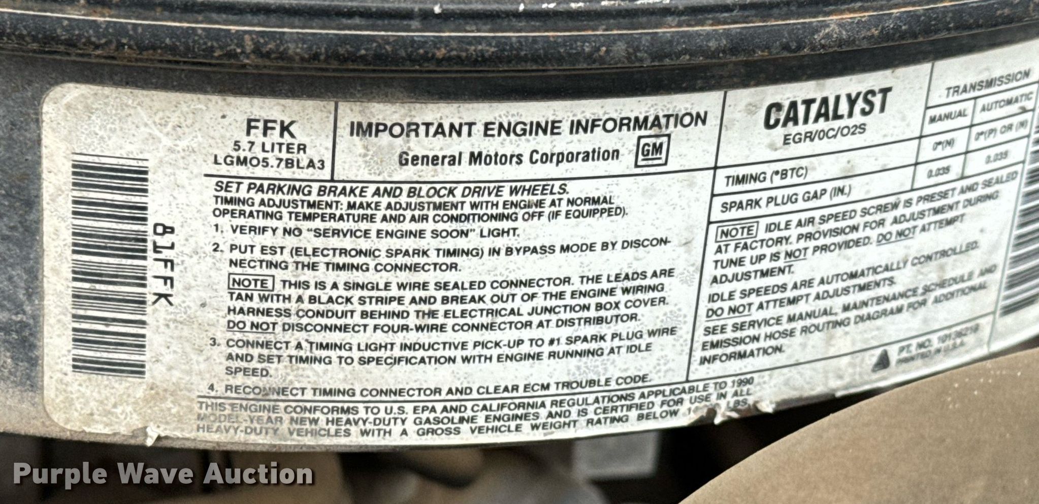 Purple Wave is selling a used 3/4 or 1 Ton Pickup or Van in Kansas. This item is a 1990 Chevrolet C2500 flatbed pickup truck with the following: Miles: 65,097 on odometer, VIN: 1GCGC24K7LE120236