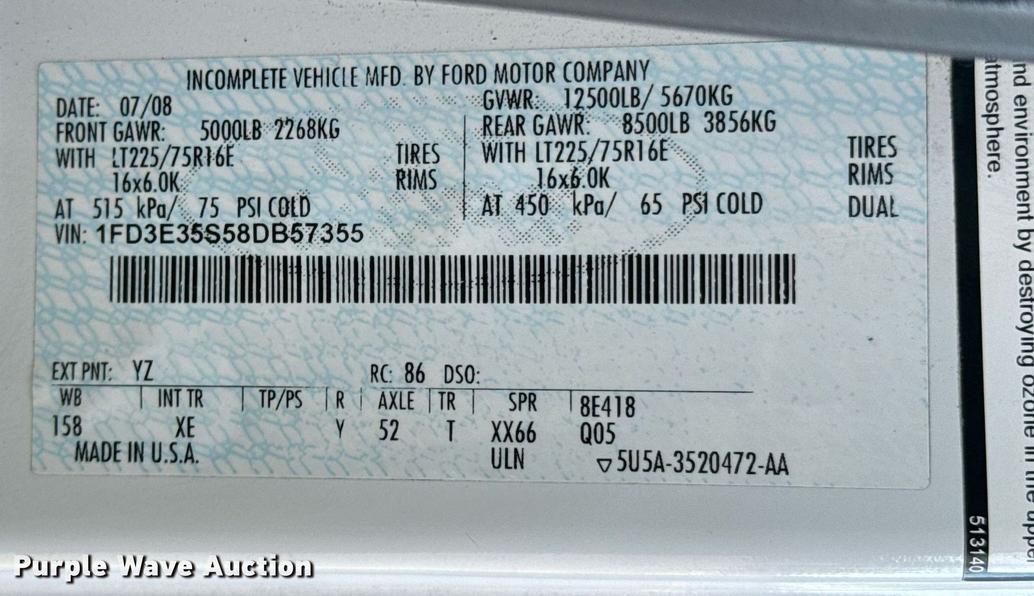 - VIN: 1FD3E35S58DB57355
