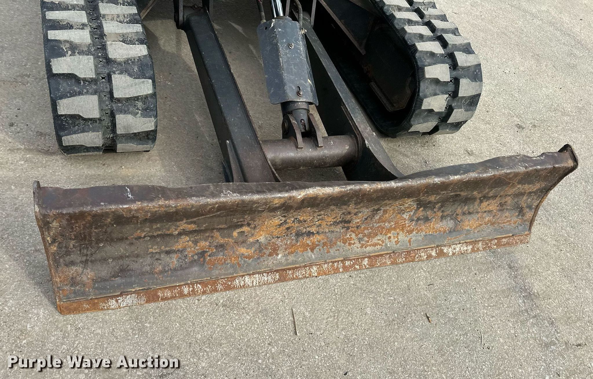 2017 Bobcat E42 mini excavator. Hours: 2,461 on meter, Serial: B2VW13437. Engine Bobcat, Cylinders: 4, Fuel type: Diesel, HP: 42.7. Transmission Hydrostatic. Operators station Enclosed cab, AC, Heat. Features Auxiliary hydraulics Standard, Two-way, Backfill blade Width: 69", Boom Swing, Stick Stick length: 55", Quick coupler: Mechanical, Thumb: Hydraulic, Bucket Bobcat, Width: 18", Teeth: 4. Tracks Width: 13", Rubber. Platte Rental & Supply. 6304 Northwest Bell Road. Parkville, MO 64152