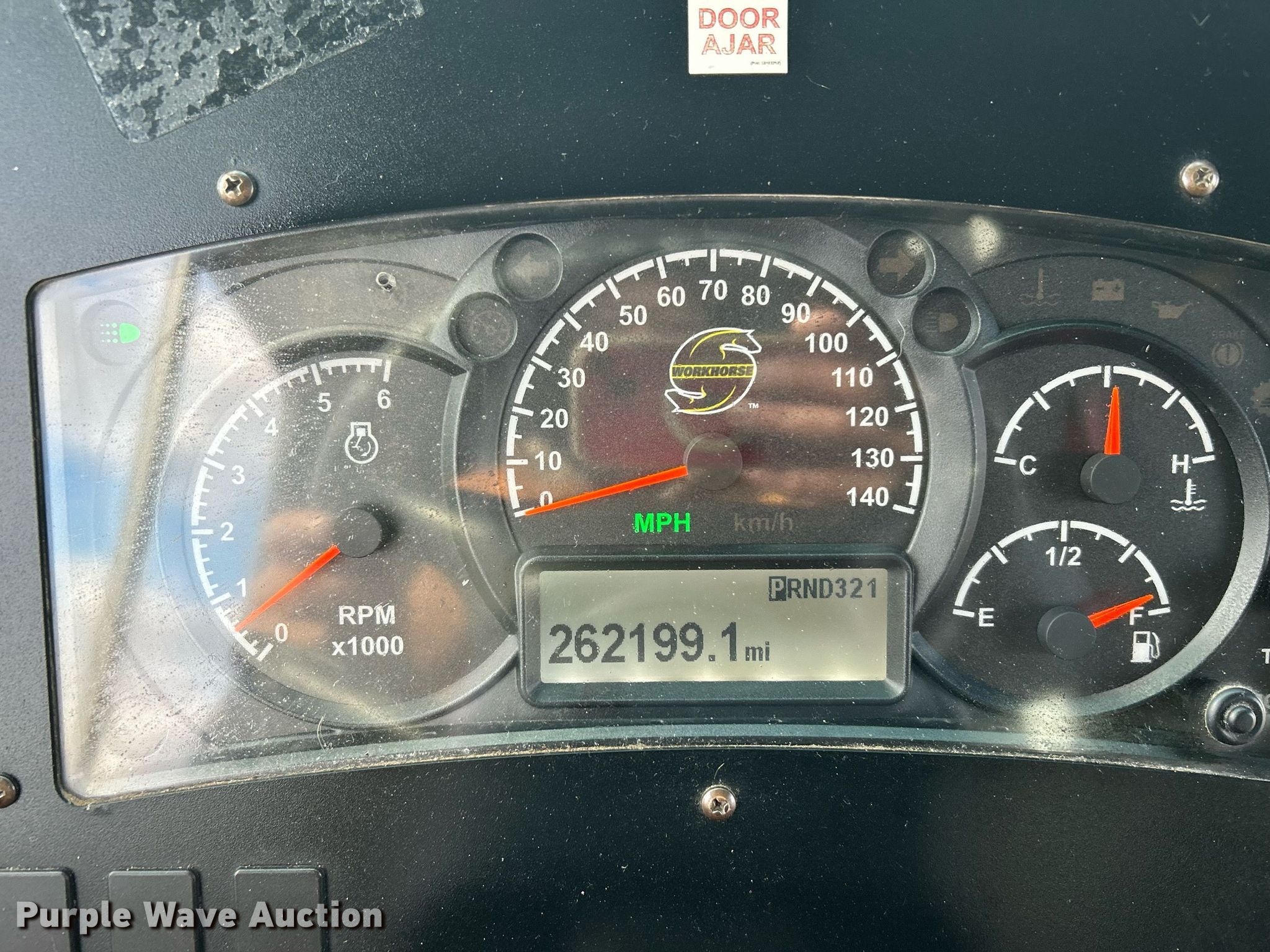 2012 Workhorse W62 delivery van. Miles: 262,199 on odometer, VIN: 5B4LFG2E5C3448076. Engine Displacement: 6.0L, Cylinders: 8, Fuel type: Gas. Transmission Automatic. Chassis Axles: Single, Suspension: Spring, Brakes: Hydraulic, GVWR: 17,000 lbs. Interior AC, Heat, Cruise control. Features Box bed 18' L x 94" W x 96" H, End gate lift Thieman TVL20A, Capacity: 2,000 lbs.. Tires Size: 245/70R19.5. Notes Windshield chipped or cracked. Oklahoma title. Title distribution may be delayed up to 14 days from verification of funds. 15107 North 137th East Avenue. Collinsville, OK 74021