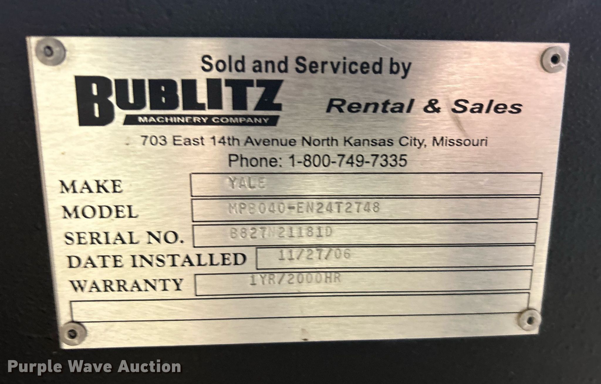 Yale MPB040-EN24T2748 pallet jack has sold in Collinsville, Oklahoma for $467.50. Item OI9560 sold on February 28th, 2024.