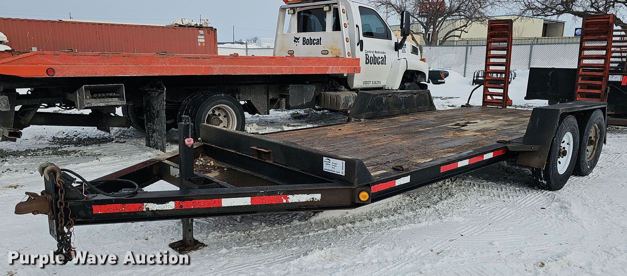 2012 Redi Haul FSL18NBHDE-102 equipment trailer. VIN: 47SS182T1C1025843, Unit #: CN00074. Dimensions Overall: 23' 6" L x 102" W, Deck: 18' L x 78" W, Ramps: Manual Length: 60". Features Deck type: Wood. Chassis Ball hitch: 2 5/16", Landing gear: Single, Suspension: Spring, Brakes: Electric, Axles: Tandem, GVWR: 14,400 lbs. Tires Steel wheels, Size: 235/85R16. Notes Deckboards damaged. Nebraska title. Title distribution may be delayed up to 14 days from verification of funds. Central Nebraska Bobcat. 3809 Westgate Road. Grand Island, NE 68803