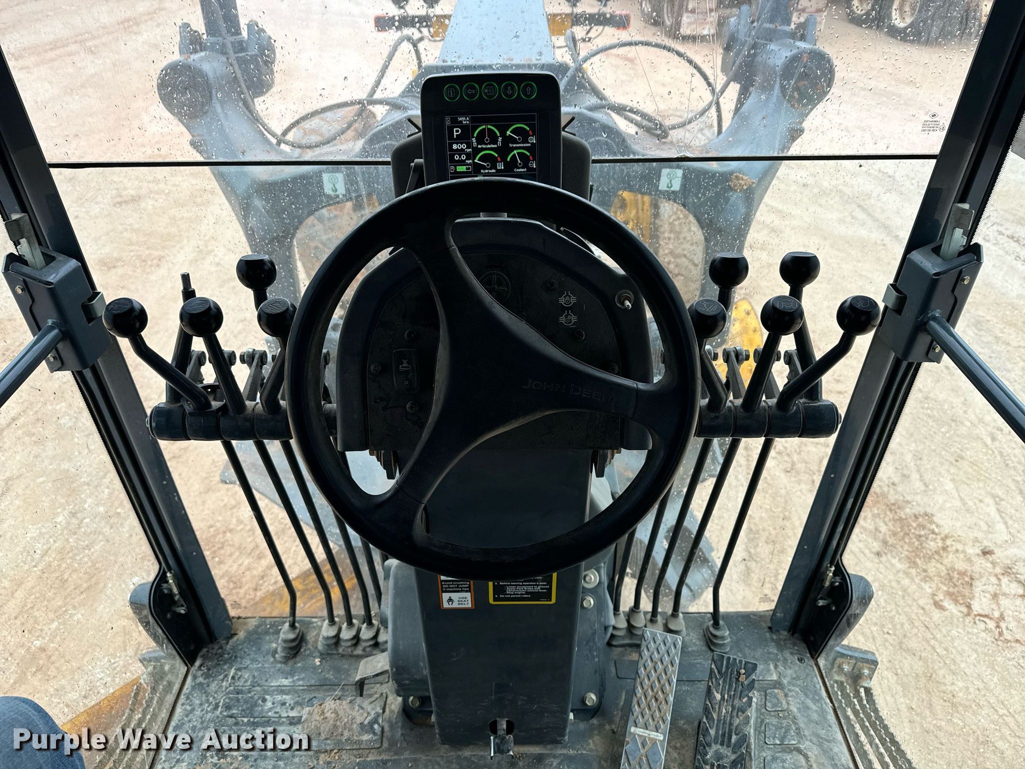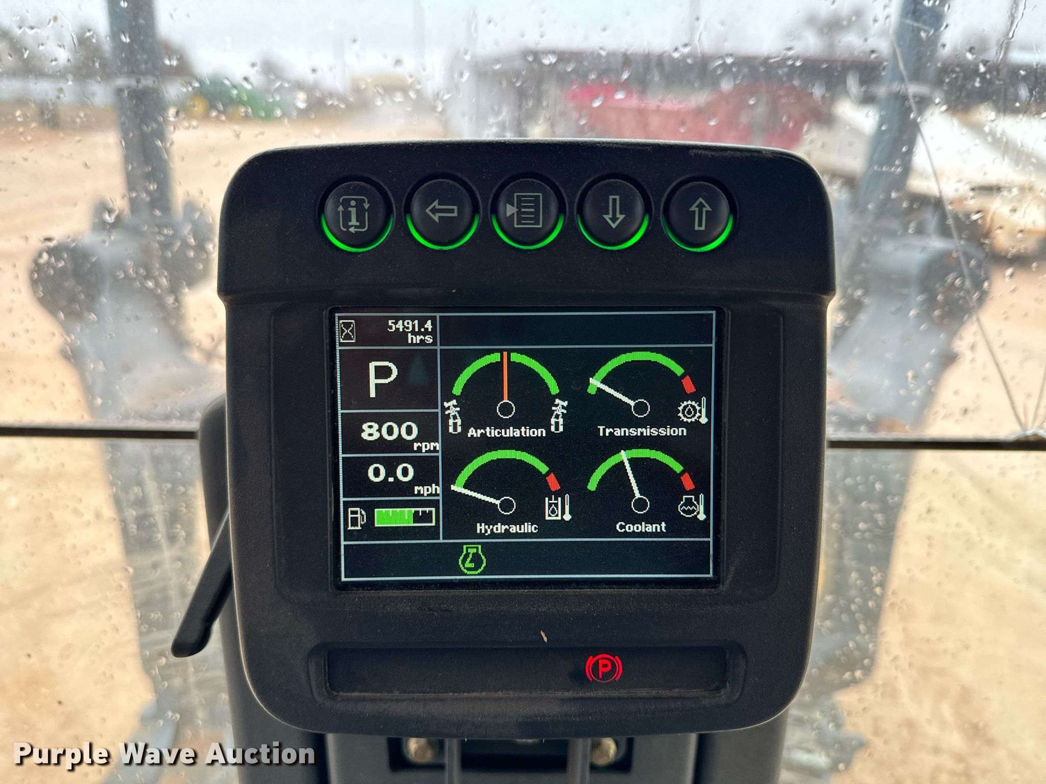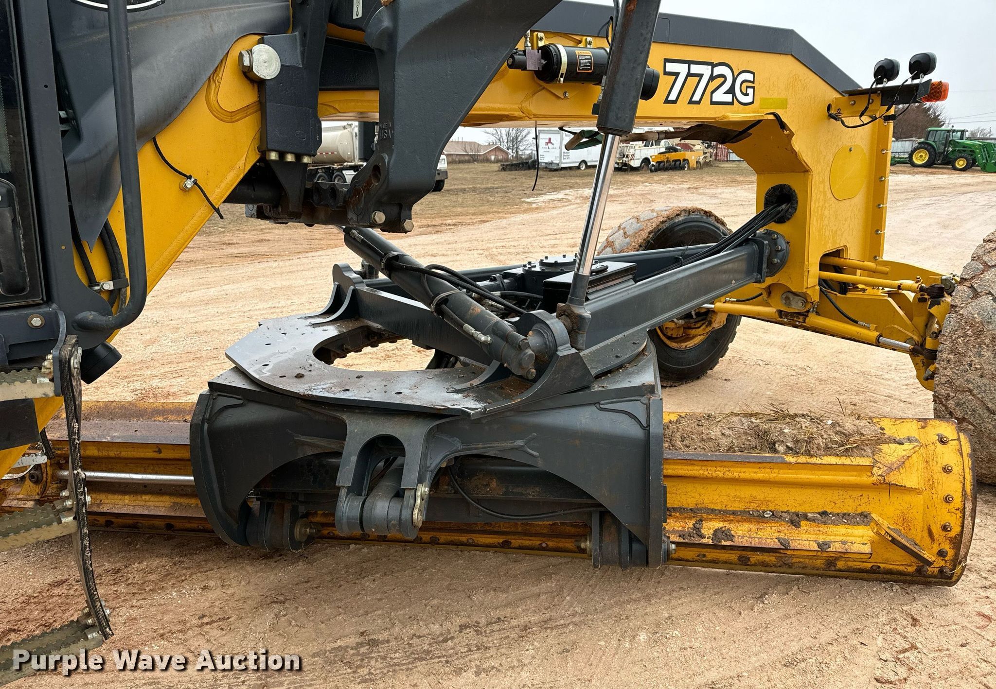 2011 John Deere 772G motor grader. Hours: 5,491 on meter, Serial: 1DW772GXPA0632772. Engine John Deere 6090HDW01, Serial: RG6090L094220, Displacement: 9.0L, Cylinders: 6, Fuel type: Diesel. Transmission Powershift, 8F - 8R. Chassis All wheel drive, Differential lock. Operators station Enclosed cab, AC, Heat, Hydraulic control valves: 10, Grade control. Features Moldboard: Tip control, Side shift, Moldboard total width: 14', Circle slip clutch, Rear ripper John Deere, Scarifier teeth: 2. Tires Size: 17.5R25. Notes Transmission rebuilt July 2022. View repairs. Wheeler County, TX. 1410 West Oklahoma Avenue. Wheeler, TX 79096
