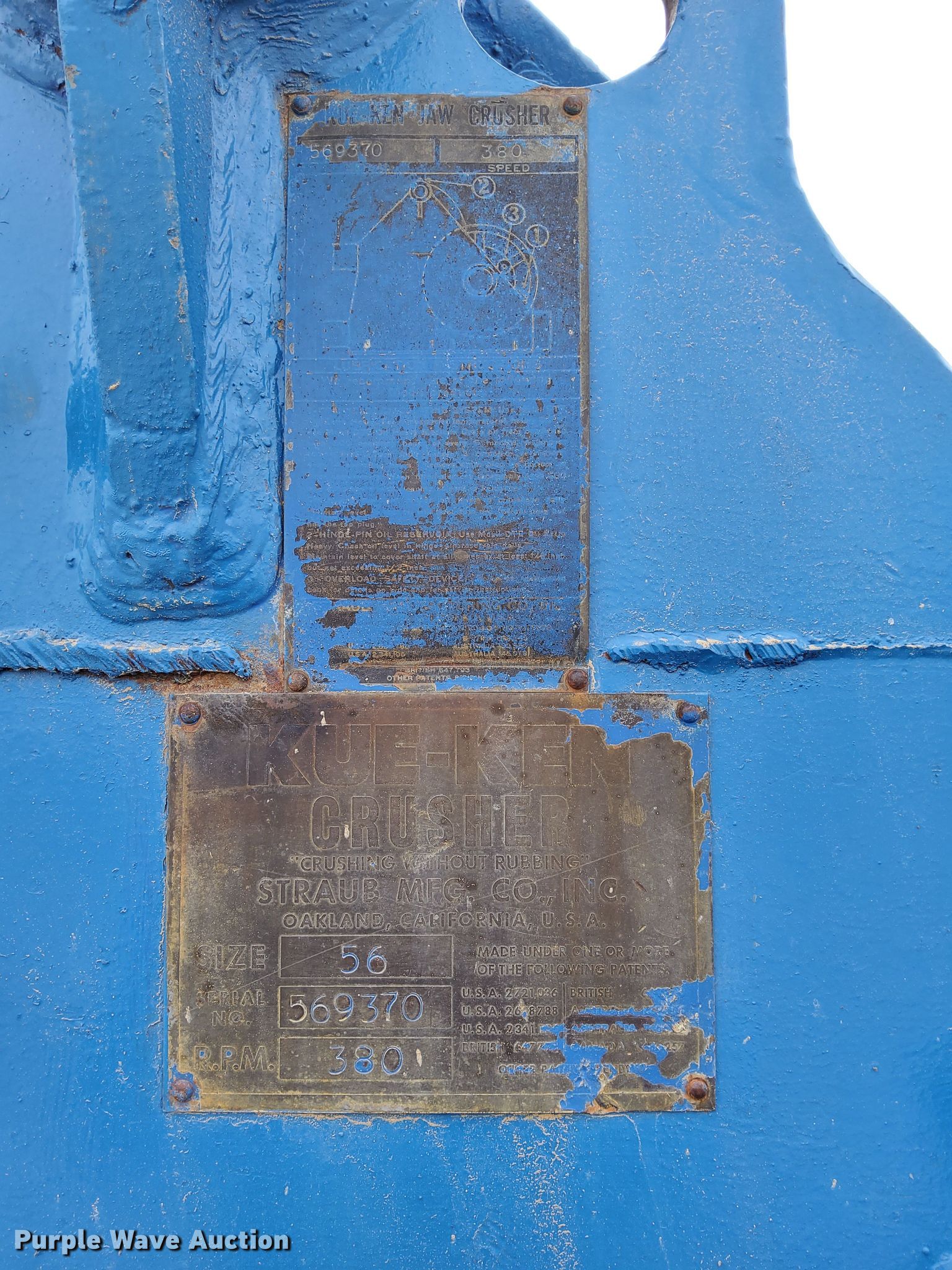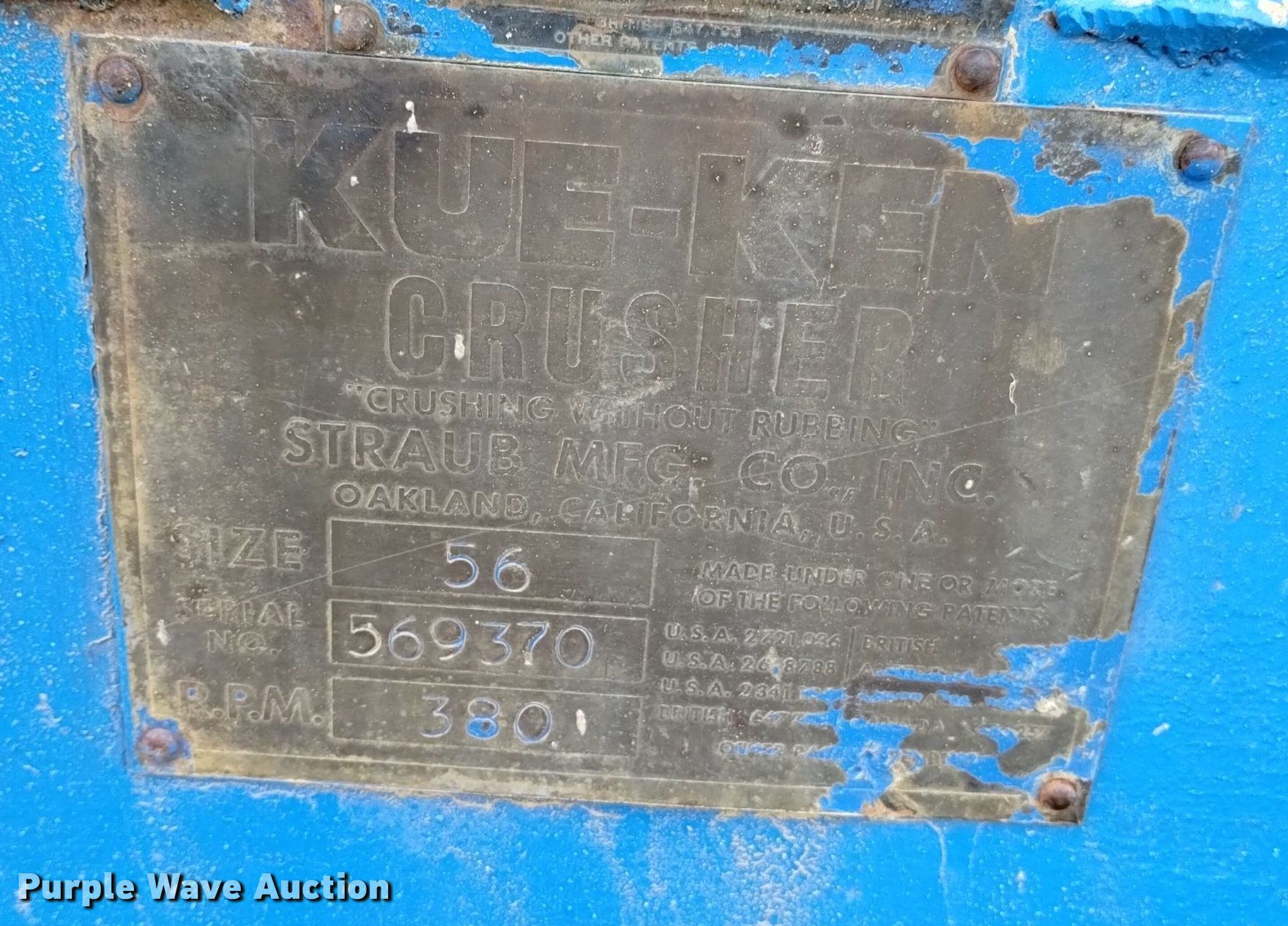 Purple Wave is selling a used Crusher or Crushing Plant in Wyoming. This item is a Kue Ken crusher with the following: Serial: 569370