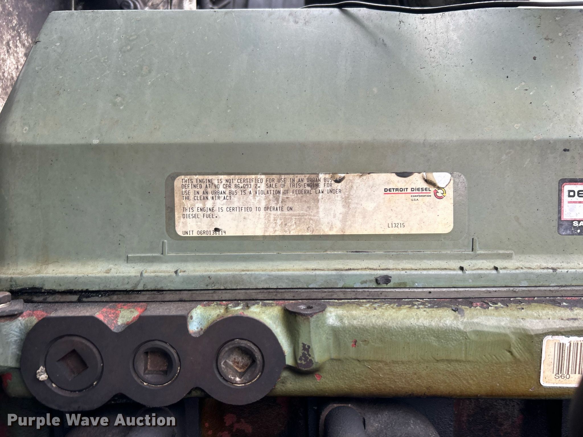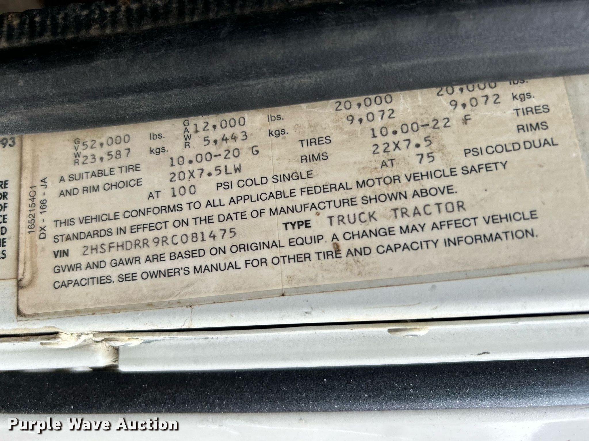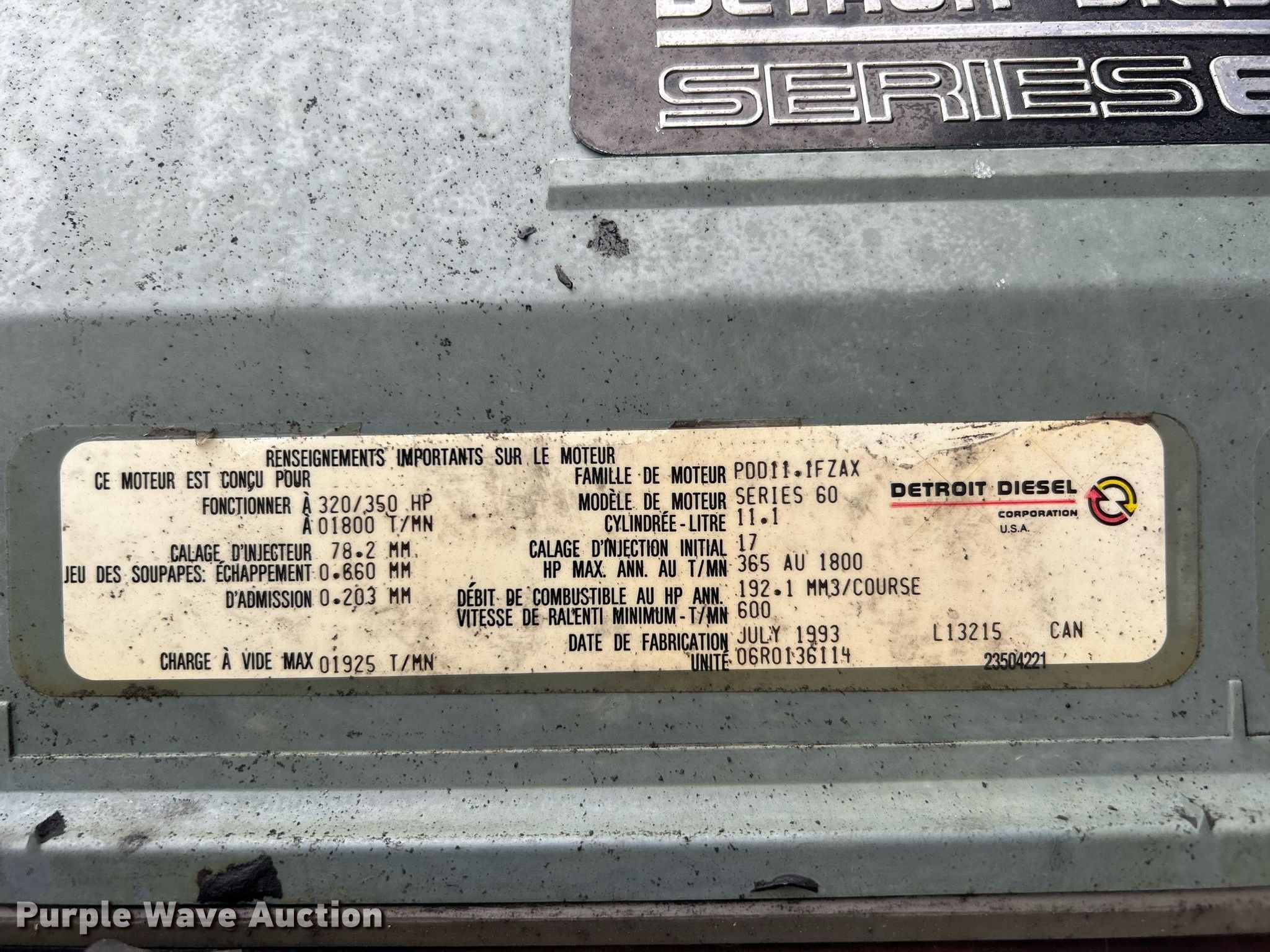 1994 International 9400 dump truck. Miles: 889,365 on odometer, VIN: 2HSFHDRR9RC081475. Engine Detroit Diesel Series 60, Displacement: 11.1L, Cylinders: 6, Fuel type: Diesel, HP: 365. Transmission Eaton Fuller, Manual, Speed: 10. Chassis Axles: Tandem, Differential lock: Inter-axle, Suspension: Air Dump valves, Brakes: Air, GVWR: 52,000 lbs FAWR: 12,000 lbs, IAWR: 20,000 lbs, RAWR: 20,000 lbs. Interior AC, Heat, Cruise control. Features Dump bed 15' L x 96" W, Side height: 36", Side board height: 6", Bed type: Steel, Roll tarp, Ram: Single, End gate: Air operated. Tires Size: 285/75R22.5. Notes Windshield chipped or cracked. Oklahoma classic title. Title distribution may be delayed up to 14 days from verification of funds. Merriman Trucking. Cleveland, OK 74020