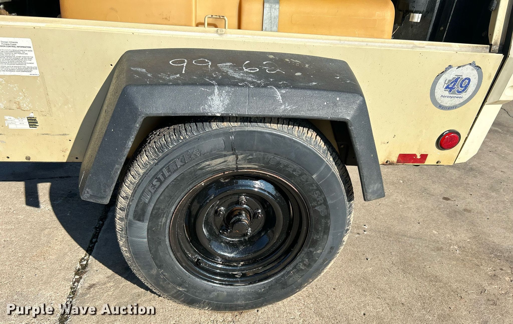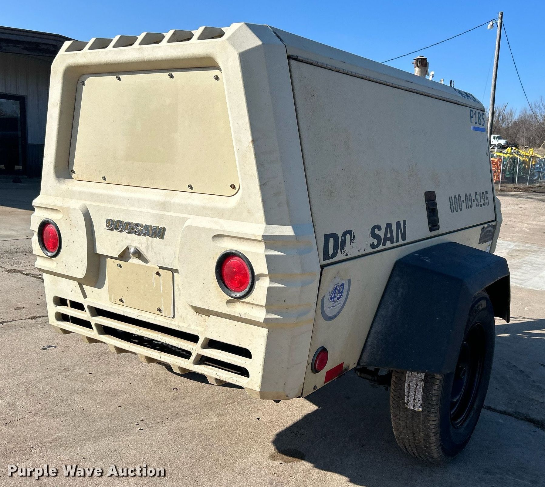 Purple Wave is selling a used Air Compressor in Oklahoma. This item is a 2016 Doosan P185WDO air compressor with the following: Hours: 1,856 on meter, Serial: 475617UCAAF63
