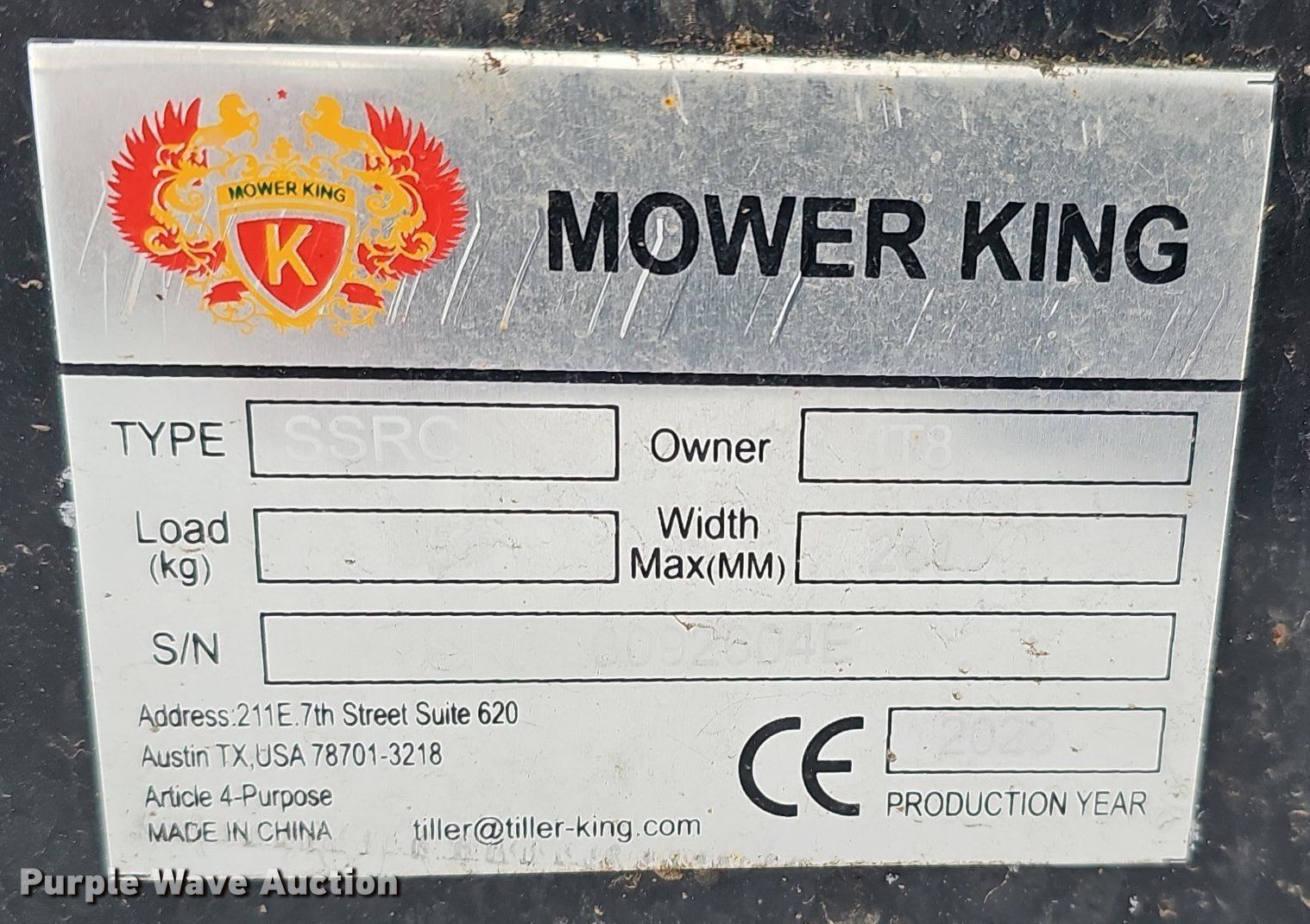 Purple Wave is selling a used Skid Steer Attach. in Nebraska. This item is a 2023 Mower King SSRC 72" W skid steer rotary mower with the following: Serial: SSSRC23092604E, Unused