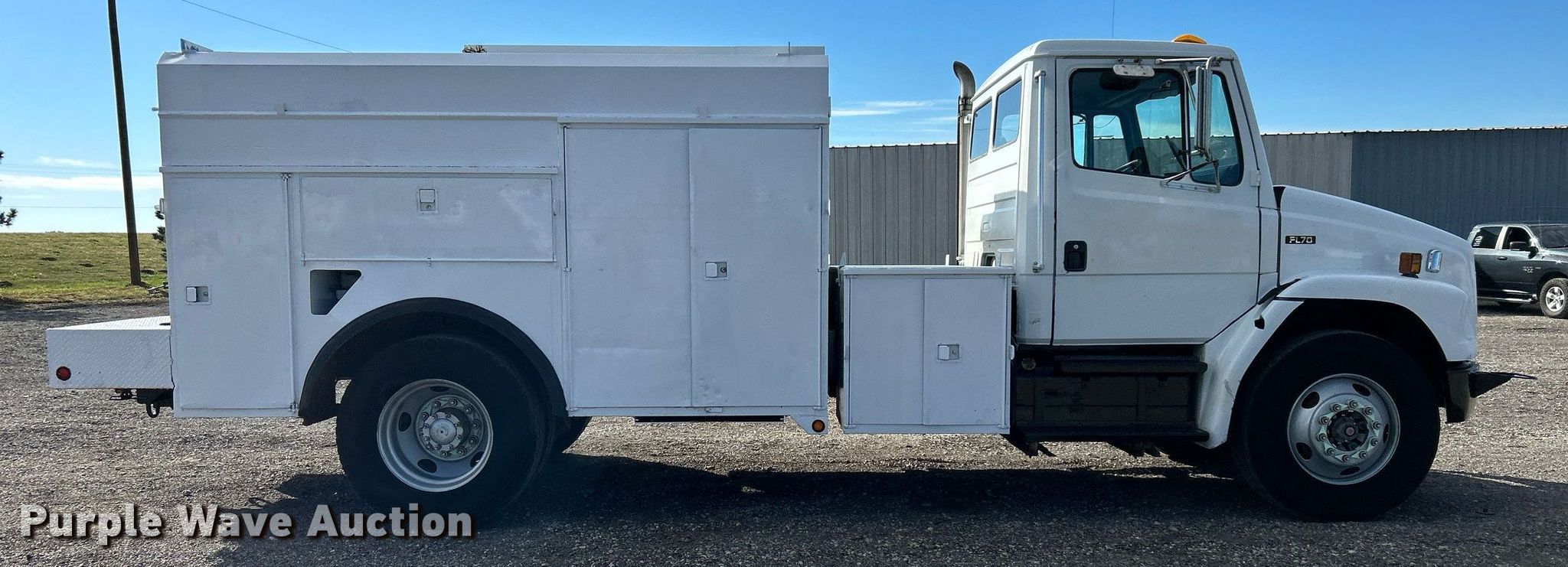 Purple Wave is selling a used Service Truck in Oklahoma. This item is a 2000 Freightliner FL70 utility / service truck with the following: Miles: 114,517 on odometer, Hours: 8,021 on meter, VIN: 1FV6HLCA0YHG14284