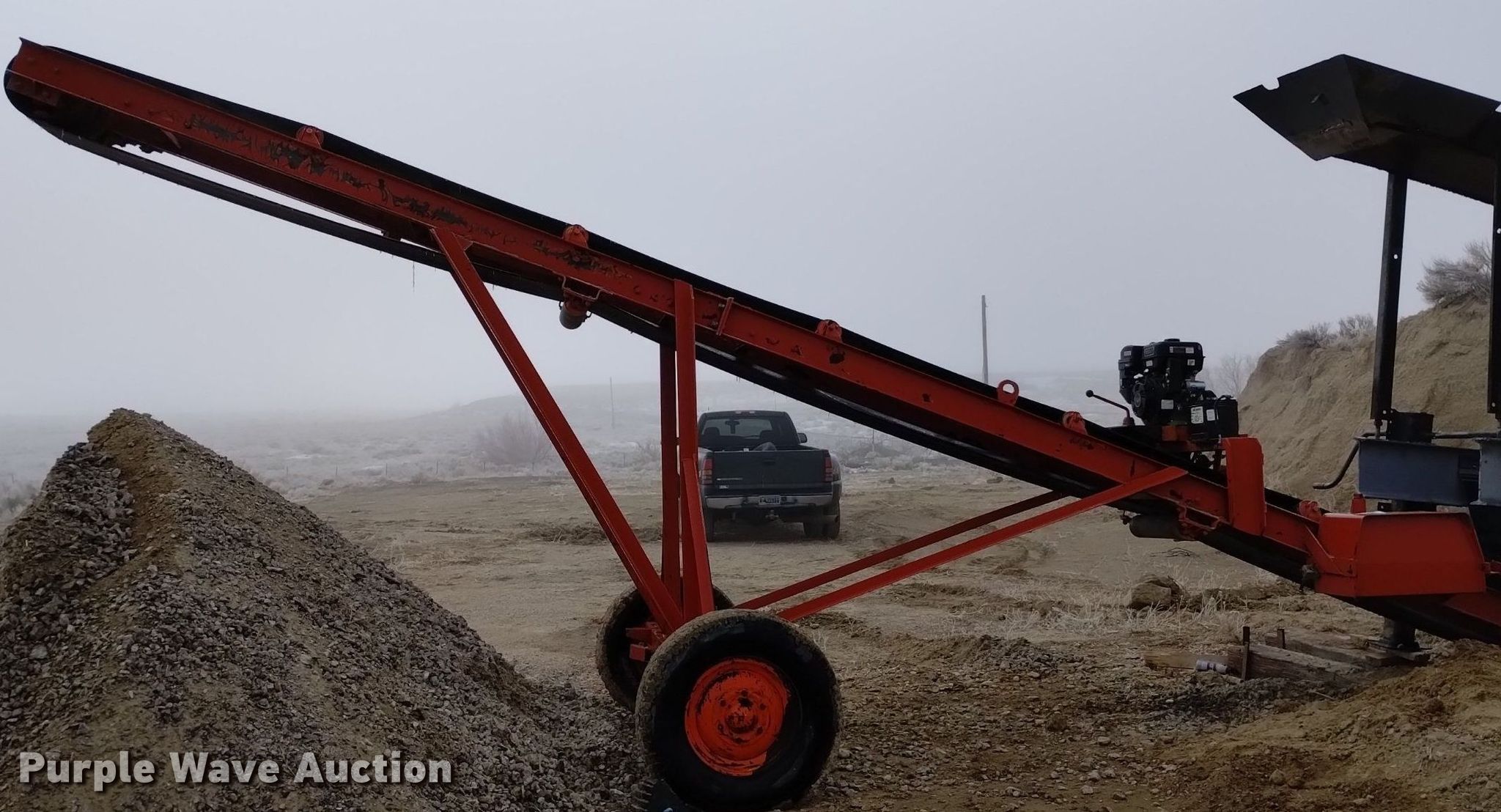 Purple Wave is selling a used Conveyor in Wyoming. This item is a Cedarapids radial stacking conveyor with the following: Serial: 27385