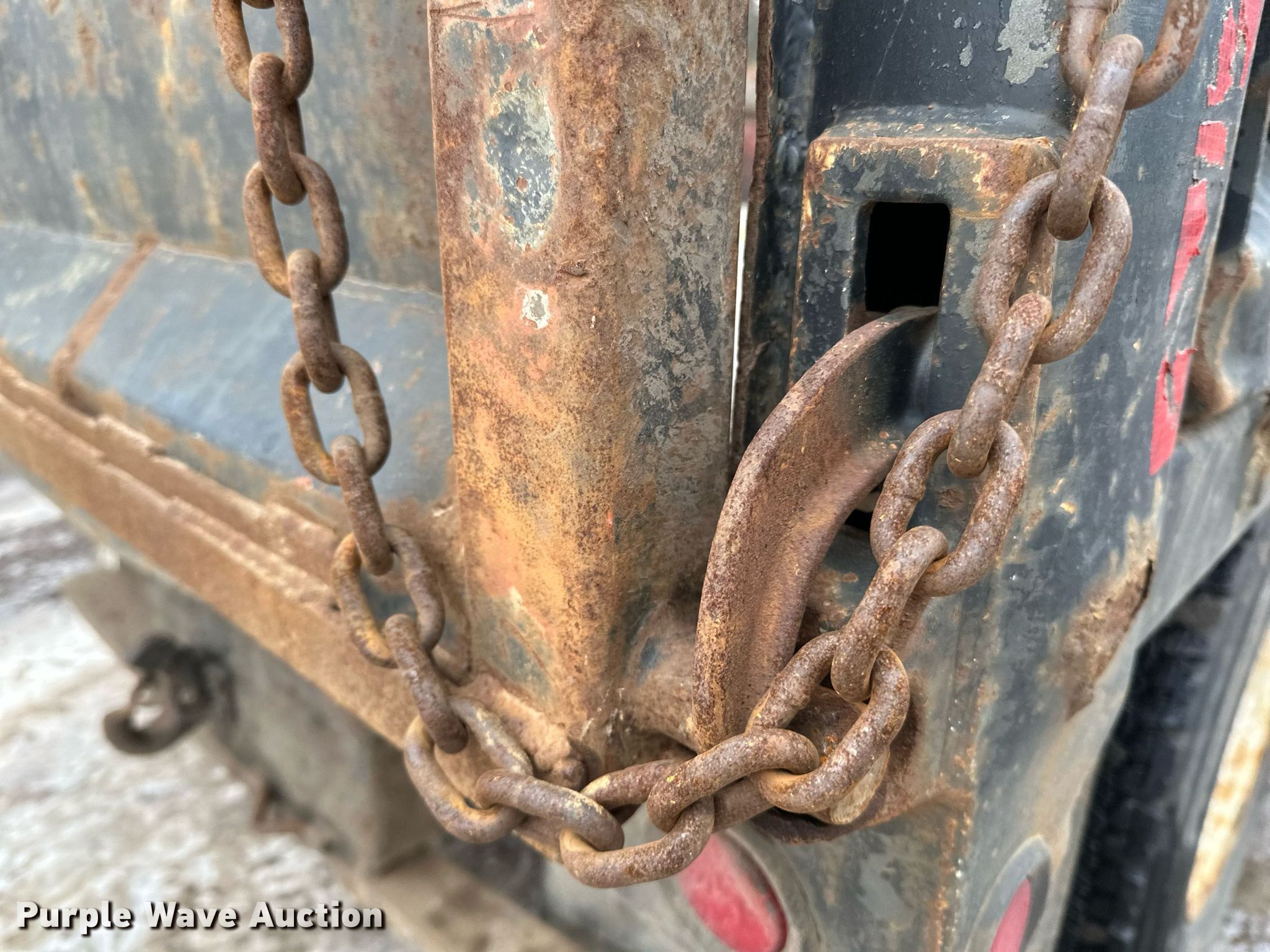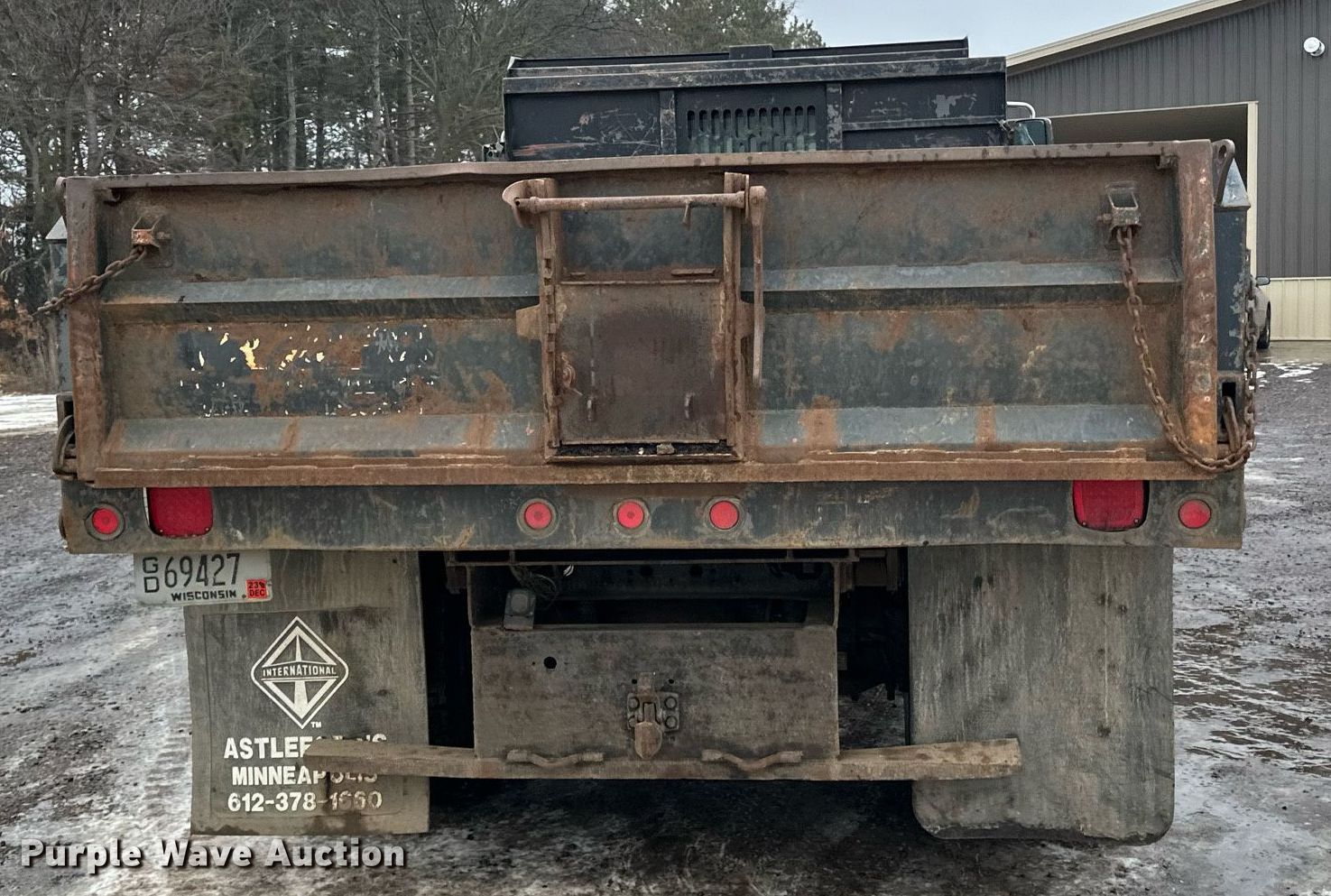 2003 International 4300 dump flatbed truck. Miles: 296,911 on odometer, Hours: 11,060 on meter, VIN: 1HTMMAAM63H559414. Engine International DT466, Displacement: 7.6L, Cylinders: 6, Fuel type: Diesel. Transmission Automatic. Chassis Axles: Single, Suspension: Spring, Brakes: Hydraulic, PTO, GVWR: 25,500 lbs. Interior AC, Heat, Heated mirrors, Power windows, Cruise control, Brake controller. Features Dump bed Jcraft, 14' L x 99 1/2" W, Side height: 18", Side board height: 10", Bed type: Steel, Ram: Single, End gate: Manual. Tires Front: 11R22.5, Rear: 275/80R22.5. Notes Dash warning indicator: ABS. Wisconsin title. Title distribution may be delayed up to 14 days from verification of funds. Willow River Co. 850 Kelly Road. Hudson, WI 54016