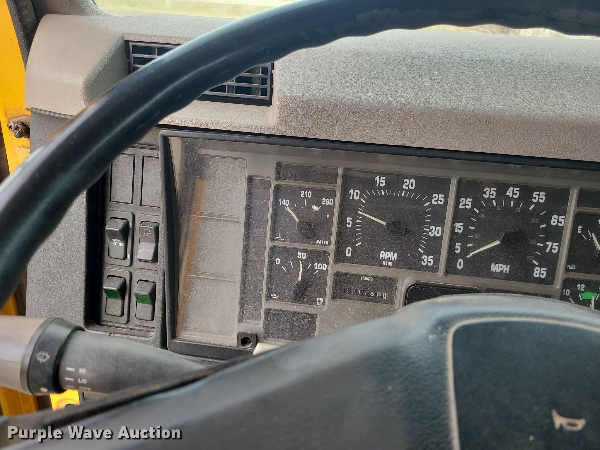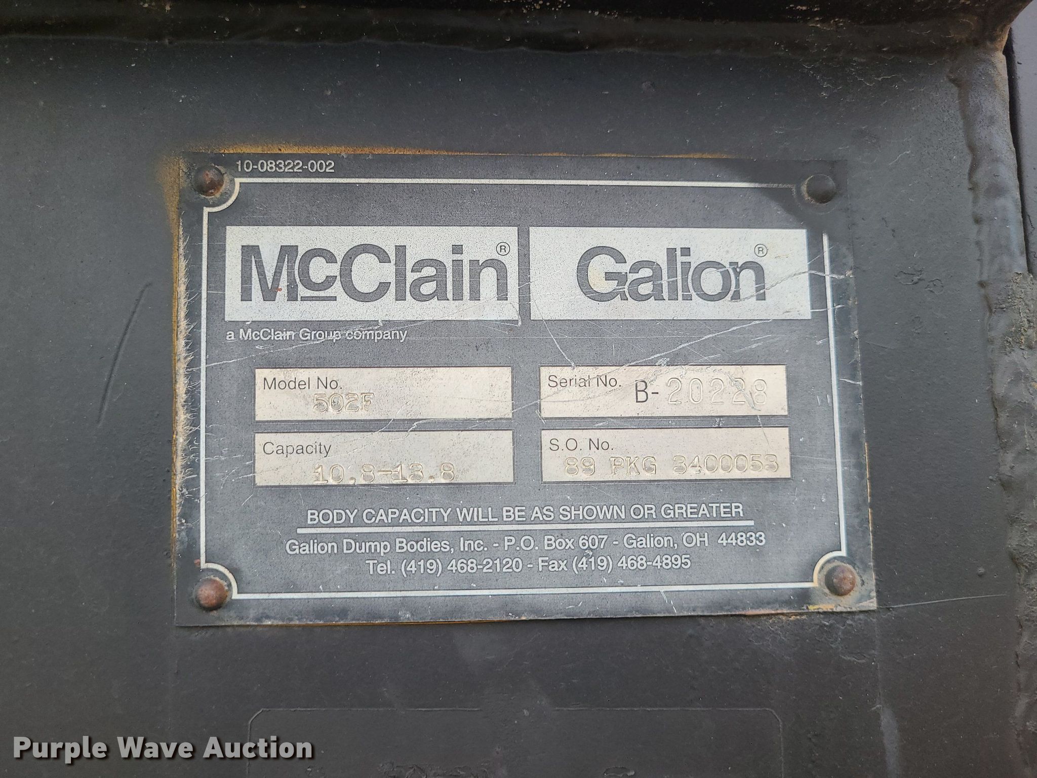 2002 International 4900 dump truck. Miles: 219,695 on odometer, Hours: 11,168 on meter, VIN: 1HTSHAAR12H537200. Engine International DT466E, Displacement: 7.6L, Cylinders: 6, Fuel type: Diesel. Transmission Allison, Automatic. Chassis Axles: Tandem, Suspension: Spring over walking beam, Brakes: Air, PTO, Wheelbase: 170". Interior AC/Heat, Cruise control. Features Dump bed Mcclain Galion 502F, 14' L x 96" W, Side height: 43", Bed type: Steel, Roll tarp, Ram: Single, End gate: Manual. Tires Size: 11R22.5. Notes Trailer not included. View repairs. Montana title. PDA Enterprises LLC. 547 West Lone Jack Lees Summit Road. Lone Jack, MO 64070