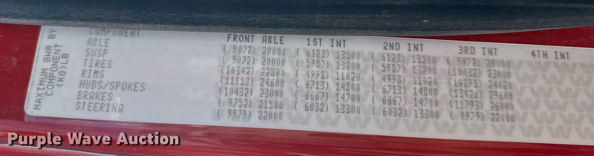 • FAWR: 20,000 lbs