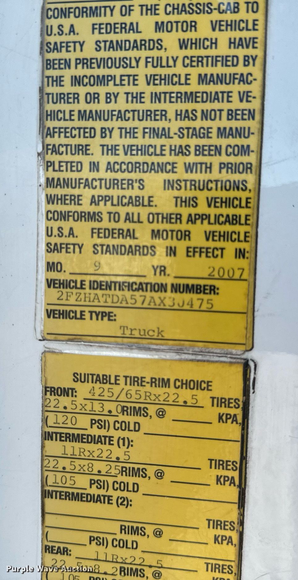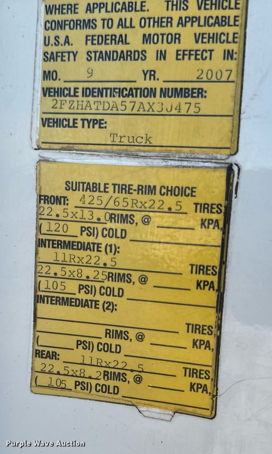 - Front: 425/65R22.5