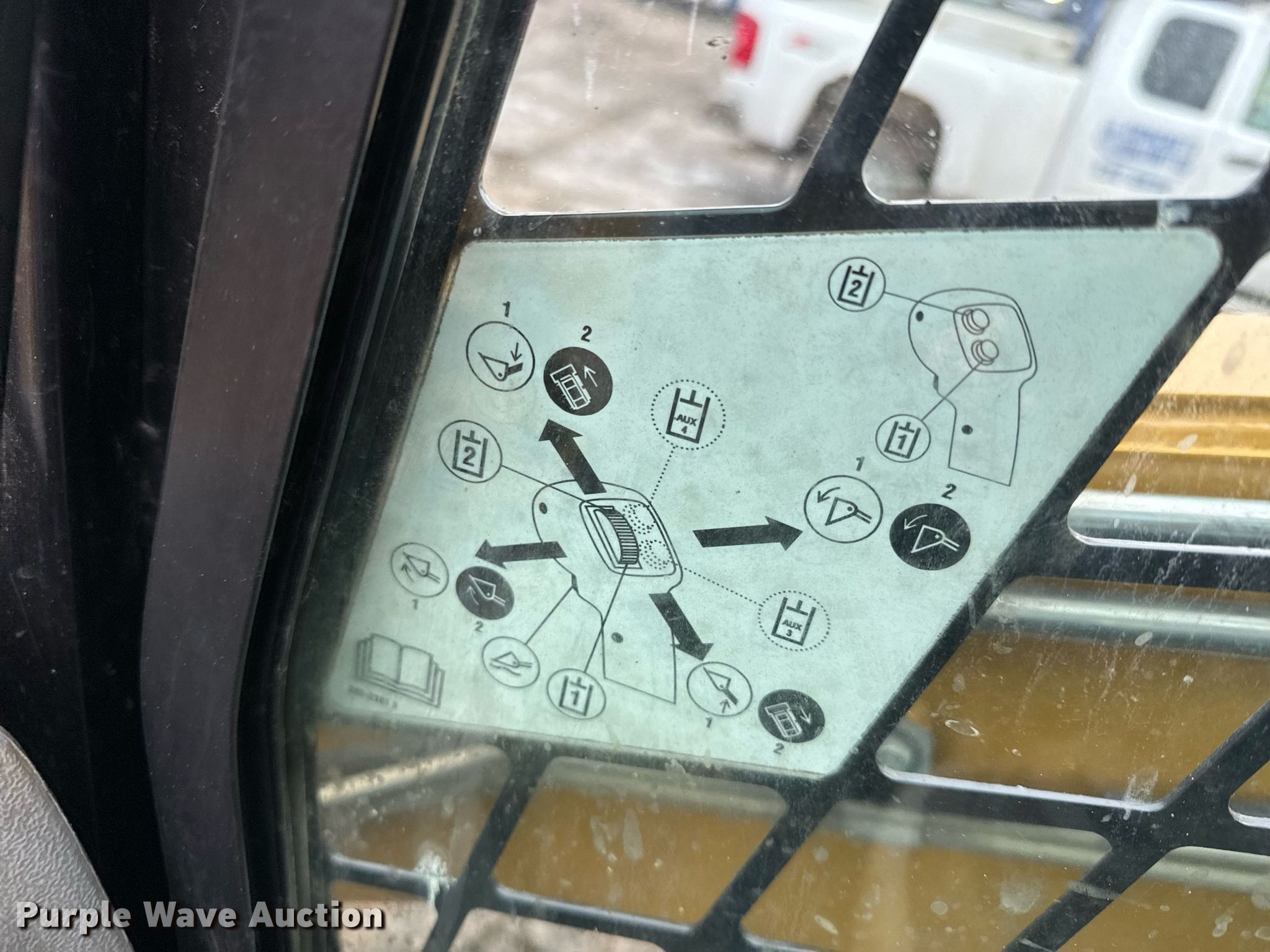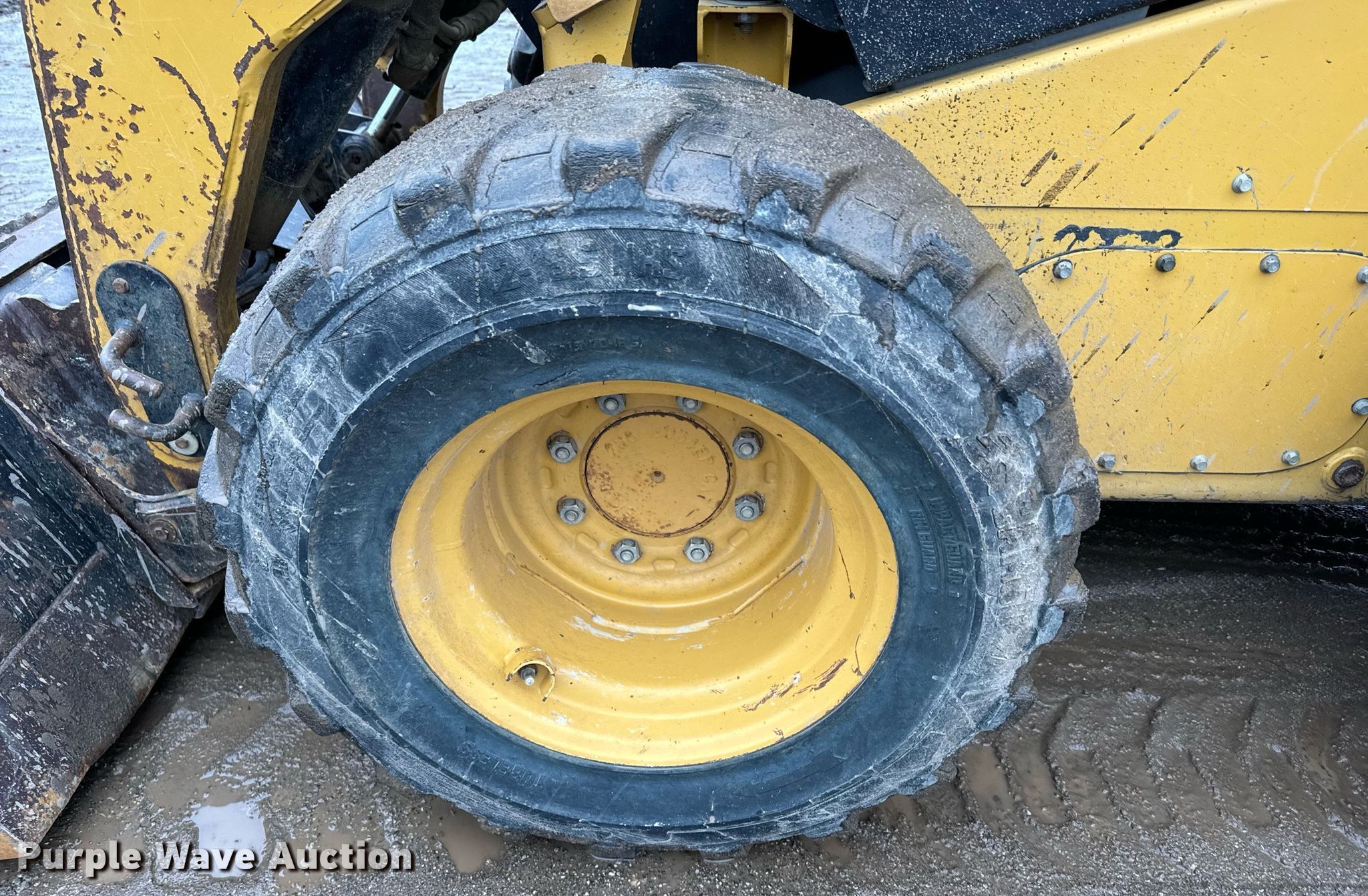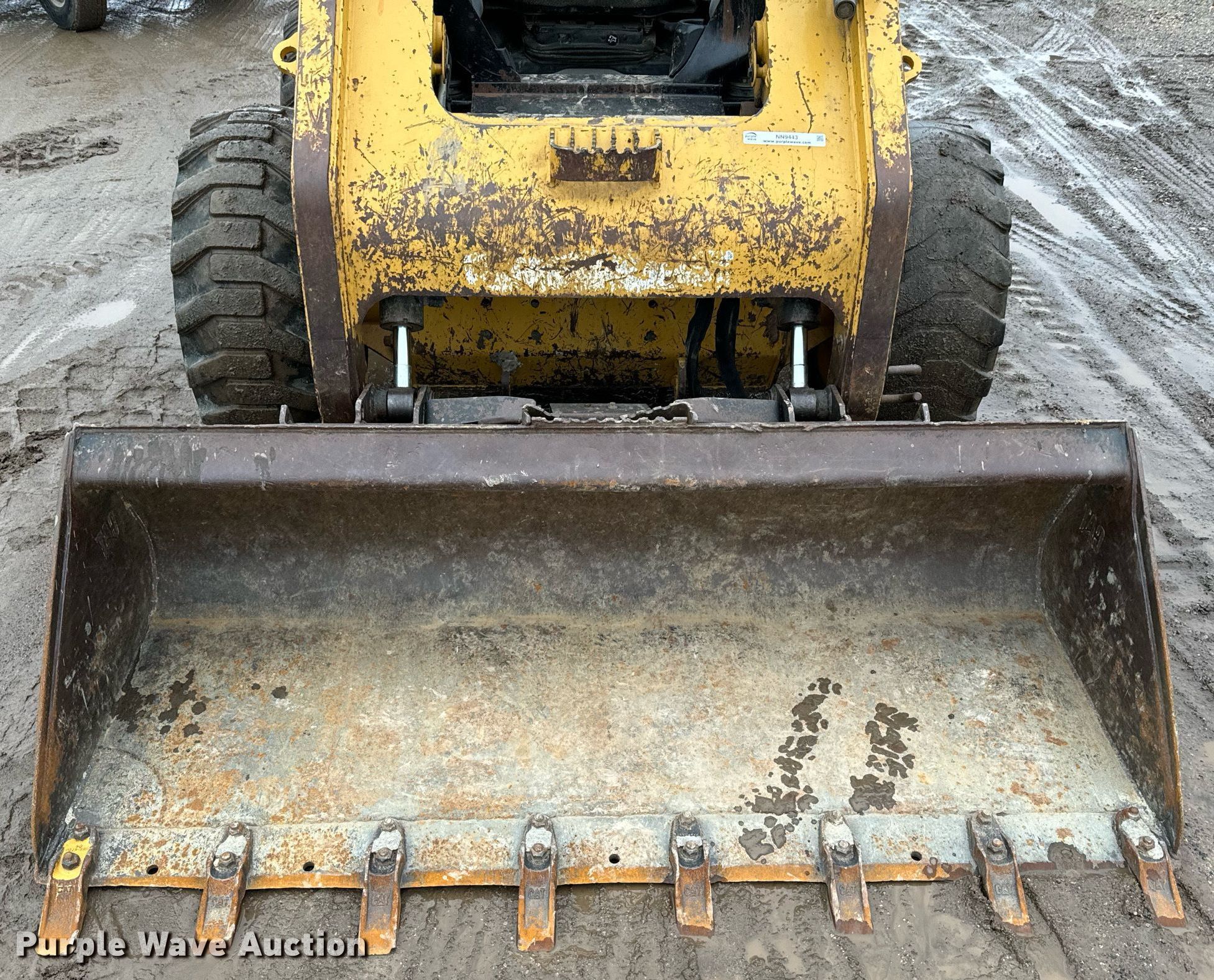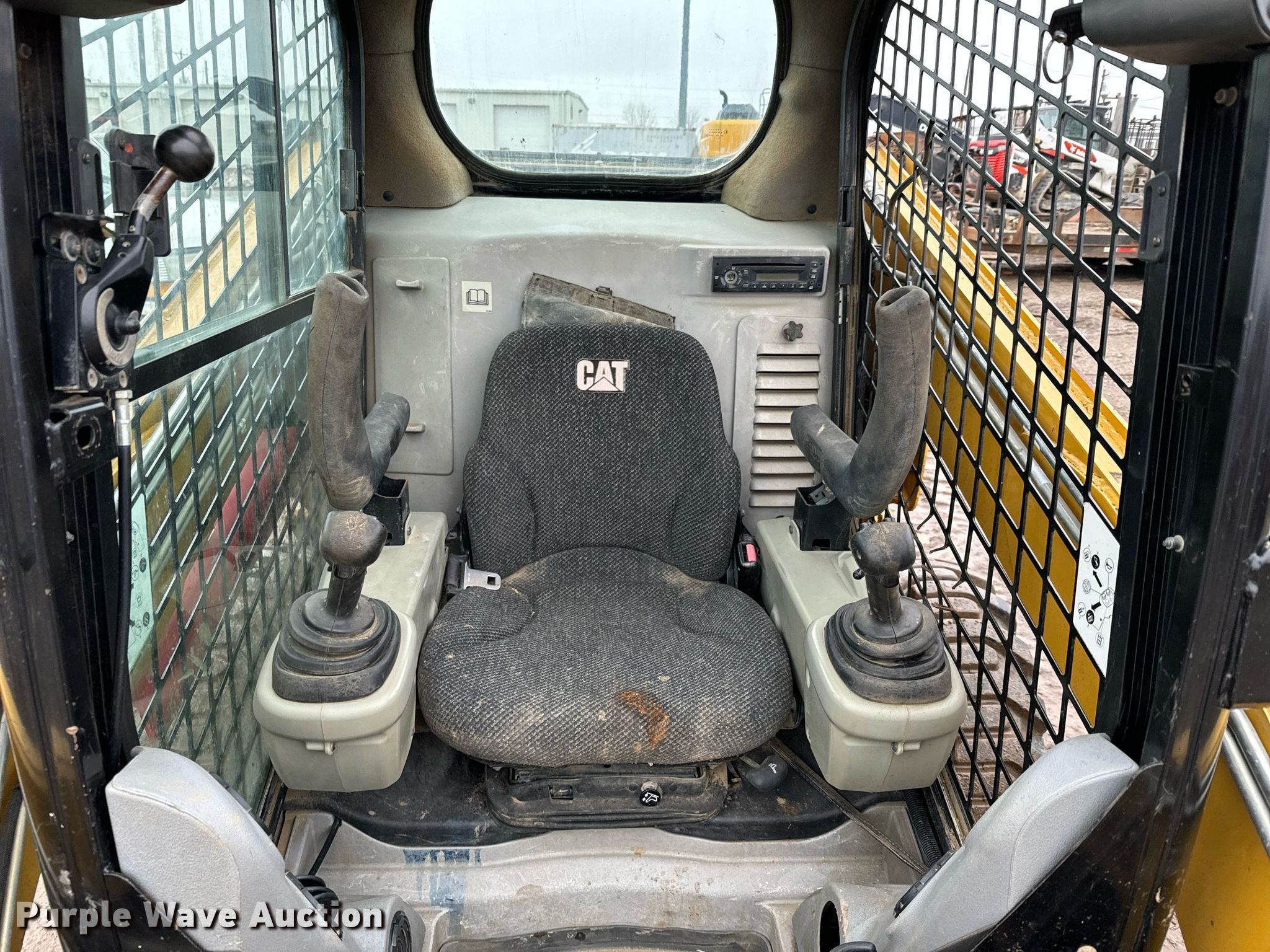 2013 Caterpillar 246C skid steer loader. Hours: 5,837 on meter, Serial: CAT0246CPJAY09186. Engine Caterpillar, Displacement: 3.2L, Cylinders: 4, Fuel type: Diesel. Transmission Hydrostatic, Two speed travel. Operators station Enclosed cab, AC, Heat, Bucket control: Hand. Features Auxiliary hydraulics, Quick coupler: Hydraulic, Counter weights, Bucket Caterpillar, Width: 72", Teeth: Bolt-on. Tires Size: 12-16.5. Notes Door missing, Side glass missing, Top glass missing. Concrete Unlimited. 3311 Southeast 21st Street. Topeka, KS 66607