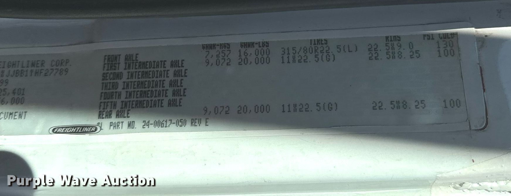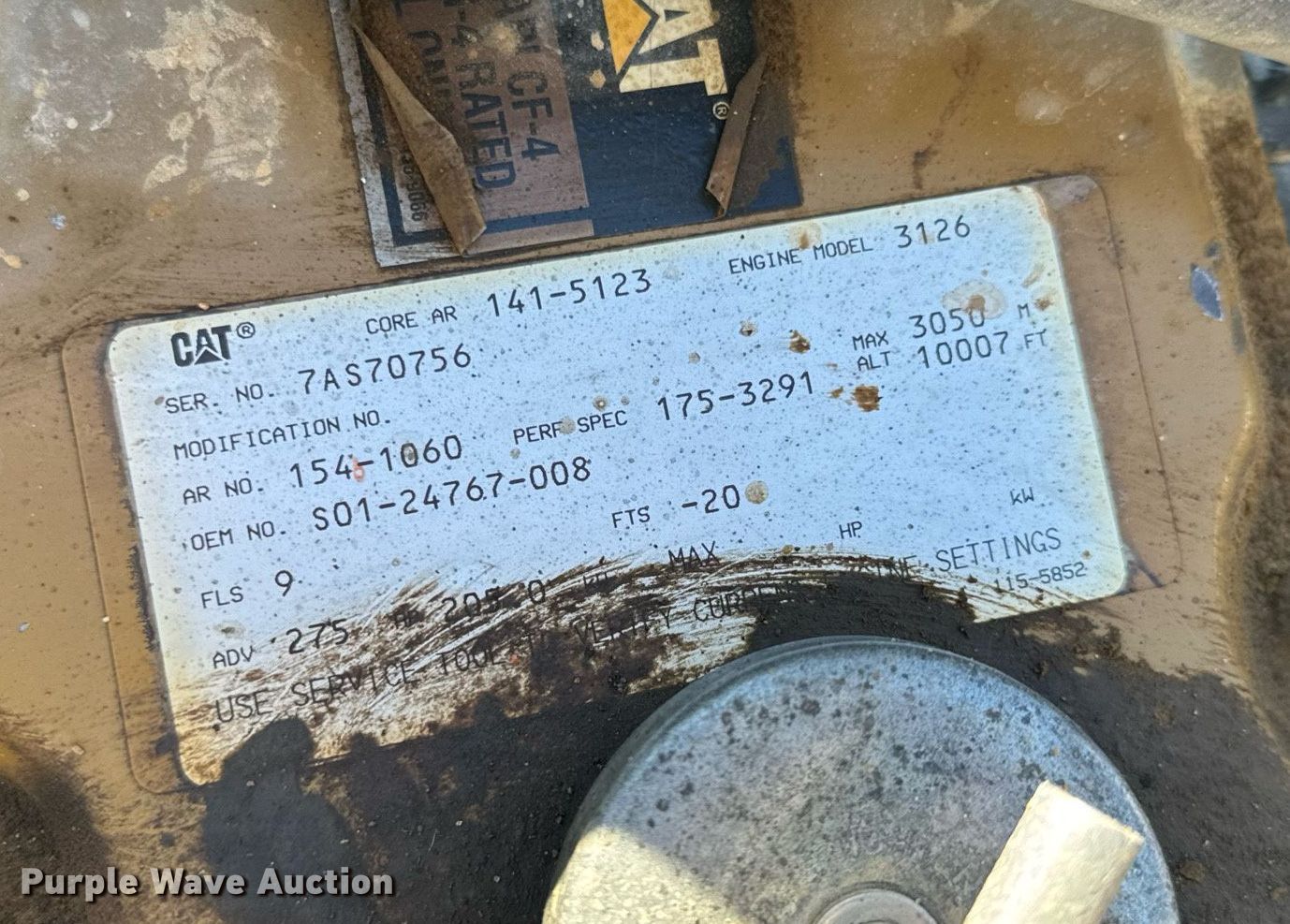 2000 Freightliner FL80 dump truck. Miles: 315,182 on odometer, Hours: 16,170 on meter, VIN: 1FVXJJBB1YHF27789. Engine Caterpillar 3126, Serial: 7AS70756, Displacement: 7.2L, Cylinders: 6, Fuel type: Diesel. Transmission Eaton Fuller, Manual, Speed: 10. Chassis Axles: Tandem, Differential lock: Full, Suspension: Spring over walking beam, Brakes: Air, PTO, GVWR: 56,000 lbs FAWR: 16,000 lbs, IAWR: 20,000 lbs, RAWR: 20,000 lbs. Interior AC, Heat, Cruise control. Features Dump bed 15' L x 96" W, Side height: 36", Side board height: 6", Bed type: Steel, Roll tarp, Ram: Single, End gate: Air operated. Tires Size: 11R22.5. Notes Dead battery. Kansas title. Title distribution may be delayed up to 14 days from verification of funds. Concrete Unlimited. 3311 Southeast 21st Street. Topeka, KS 66607