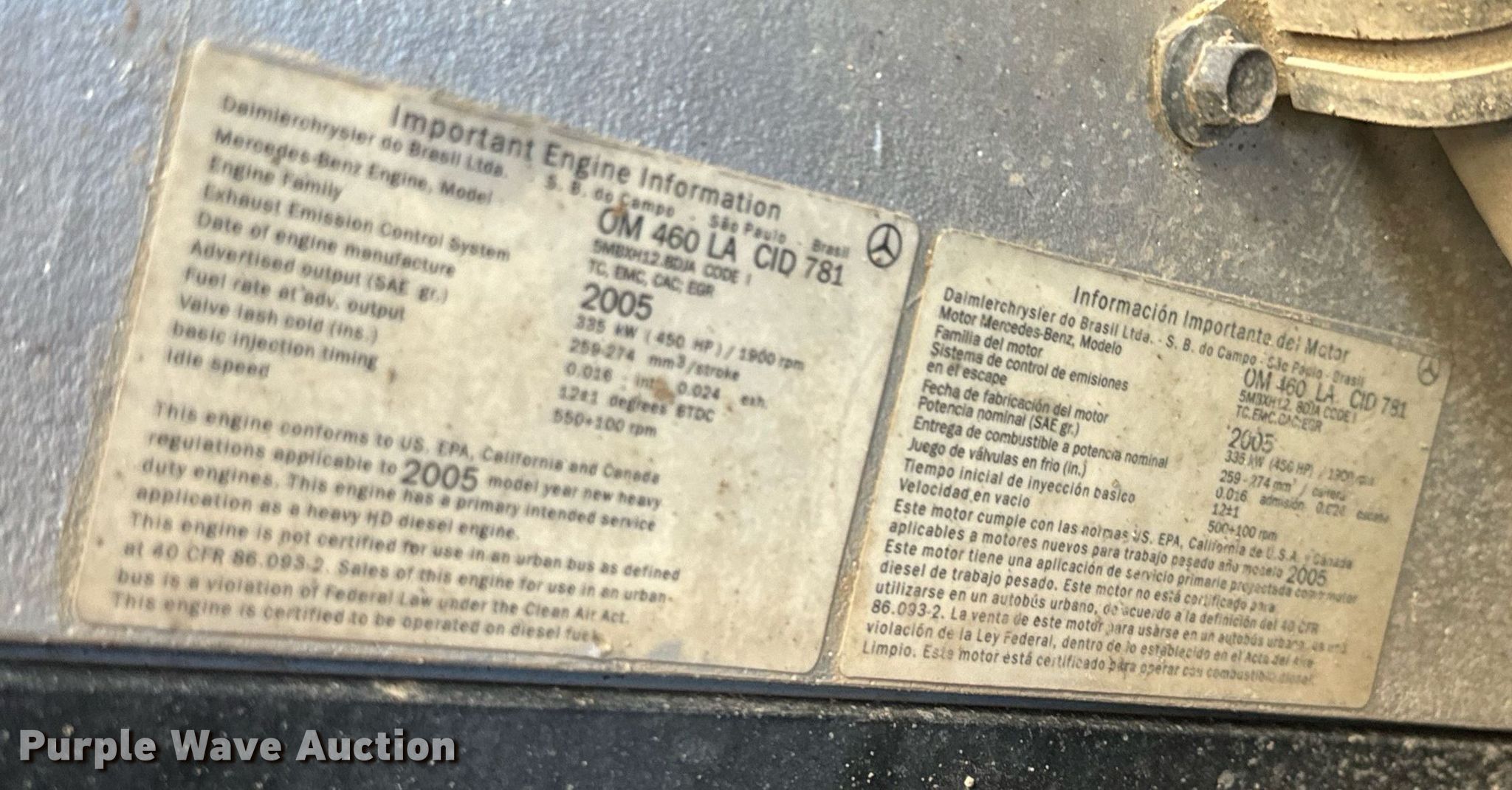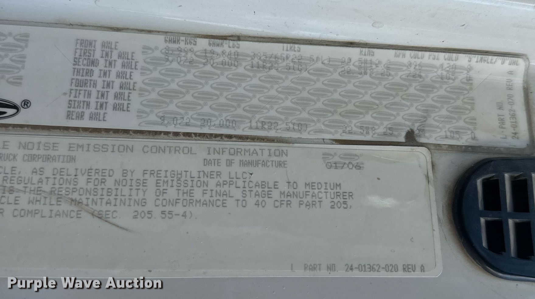 2006 Sterling LT9500 dump truck. Miles: 373,247 on odometer, VIN: 2FZHAZCV56AW64371. Engine Mercedes-Benz, Displacement: 718 C.I.D., Cylinders: 6, Fuel type: Diesel, HP: 450, Engine brake. Transmission Eaton Fuller Roadranger, Manual, Speed: 10. Chassis Axles: 4, Pusher axle Steerable, Differential lock: Full, Suspension: Spring over walking beam, Brakes: Air, PTO, GVWR: 59,840 lbs FAWR: 19,840 lbs, IAWR: 20,000 lbs, RAWR: 20,000 lbs. Interior AC, Heat, Cruise control. Features Dump bed Strong, 17' L x 100" W, Side height: 60", Bed type: Steel, Barrel, Roll tarp, Ram: Single, End gate: Air operated. Tires Front: 425/65R22.5, Rear: 11R22.5, Lift axle: 215/75R17.5. Kansas title. Title distribution may be delayed up to 14 days from verification of funds. Concrete Unlimited. 3311 Southeast 21st Street. Topeka, KS 66607