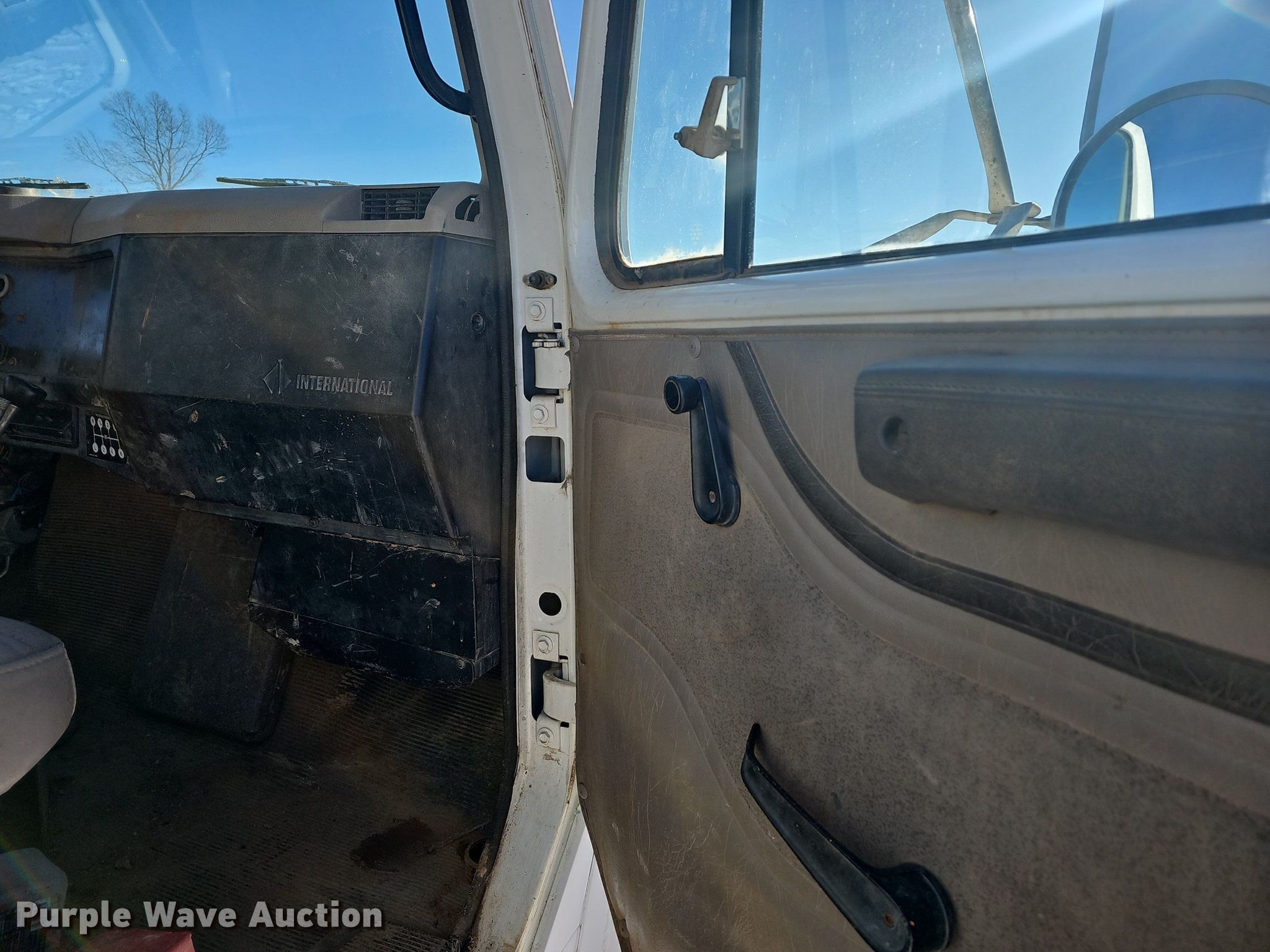 2000 International 4700 water truck. Miles: 32,189 on odometer, VIN: 1HTSCABN8YH320889. Engine International, Cylinders: 8, Fuel type: Diesel. Transmission International 6 plus, Manual, Speed: 7. Chassis Axles: Single, Suspension: Spring, Brakes: Air, PTO. Interior Heat, Cruise control. Features Bed / tank Capacity: 2,500 gallons, Spray bar: Front, Rear, Top fill, Sight tube. Tires Size: 11R22.5. Notes Dash warning indicator: Check engine. Missouri title. Seven Valleys Construction Gas Division LLC. 14075 Farm Rd 2165. Cassville, MO 65625