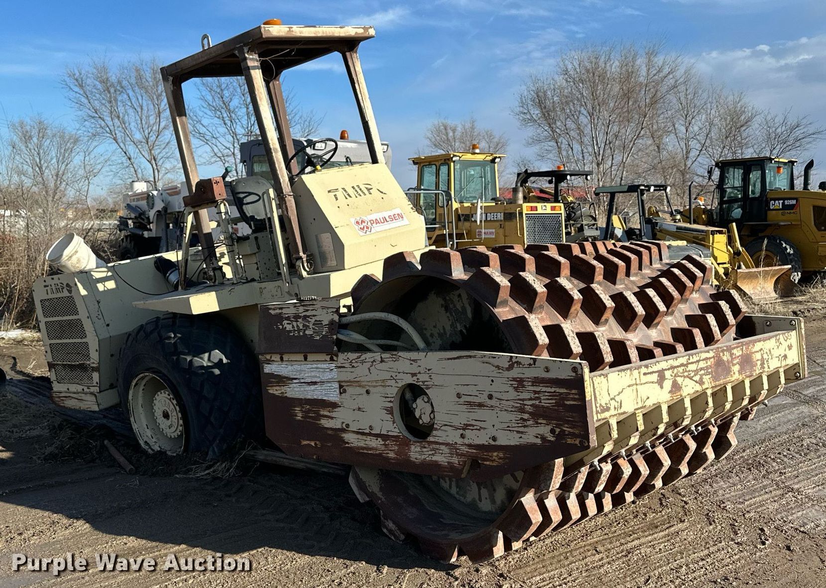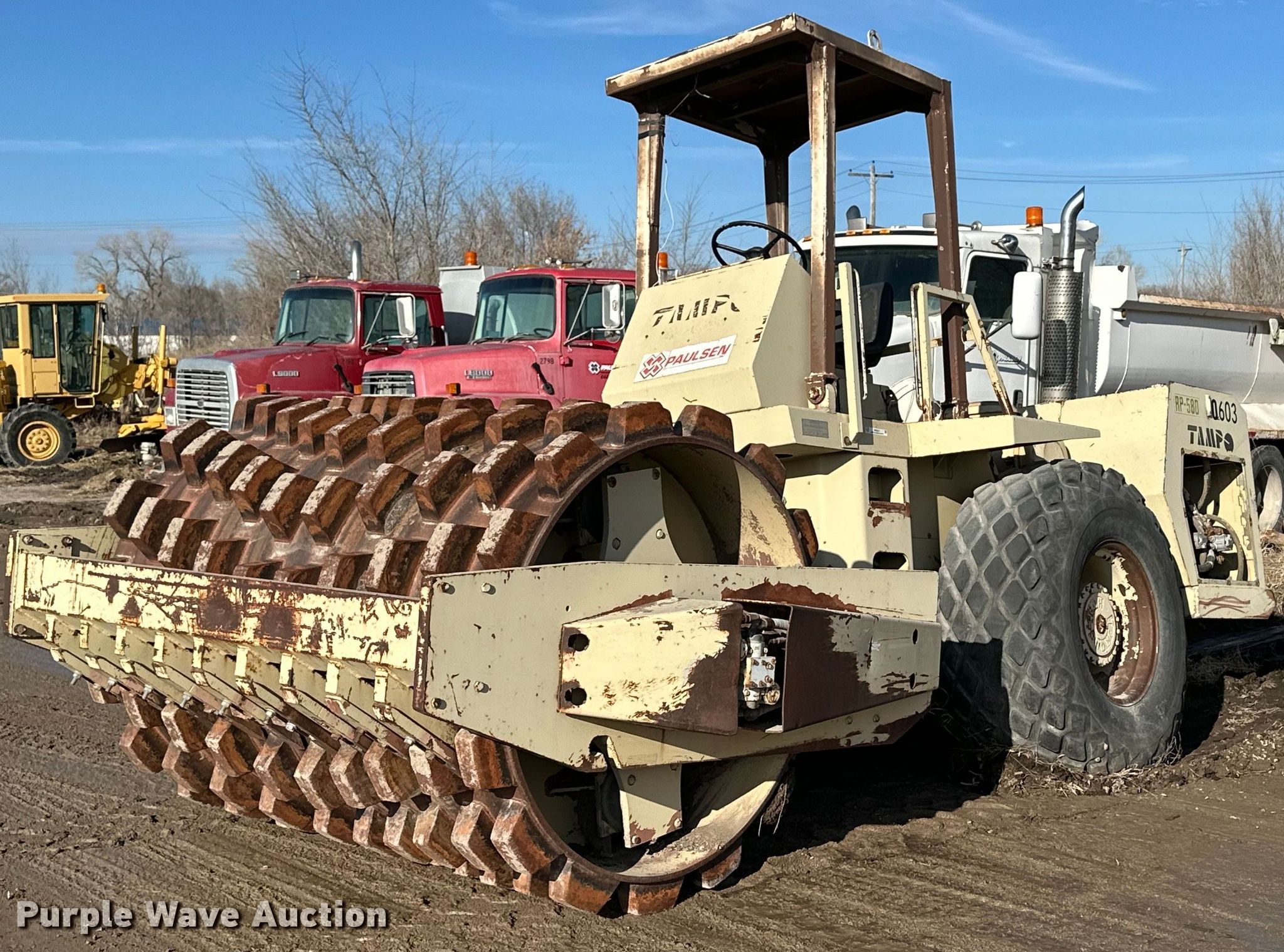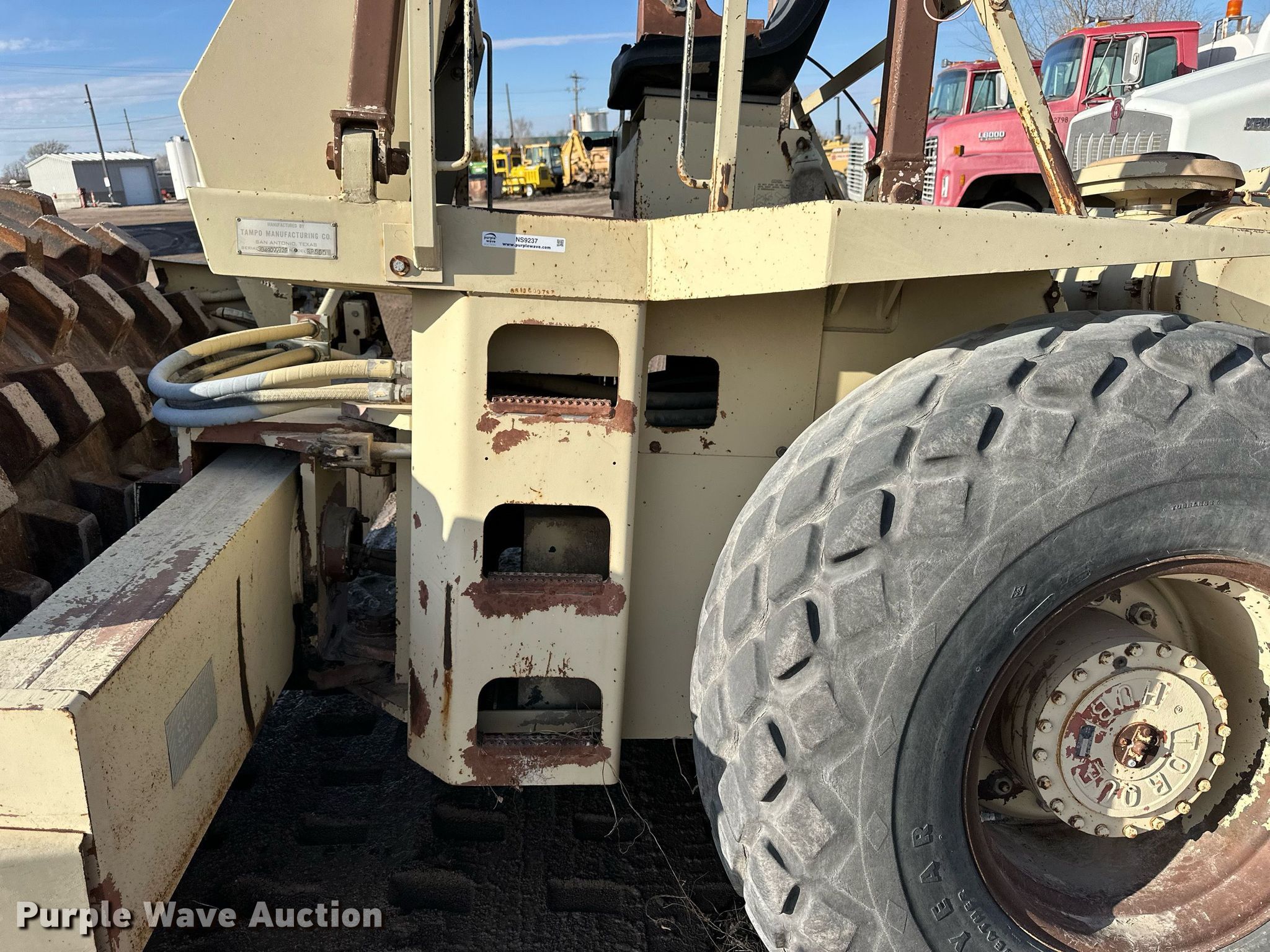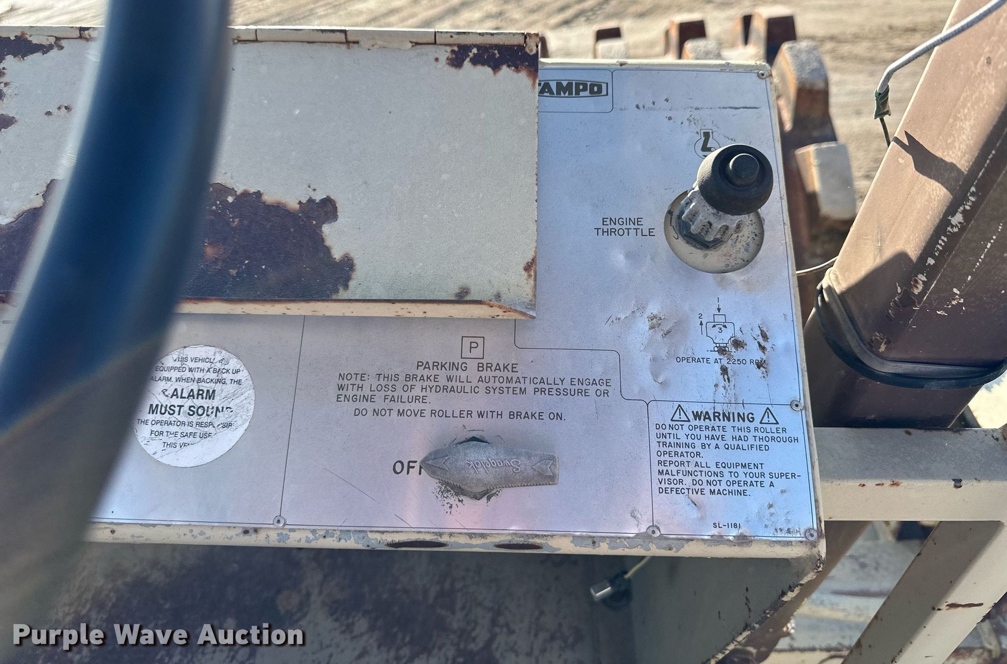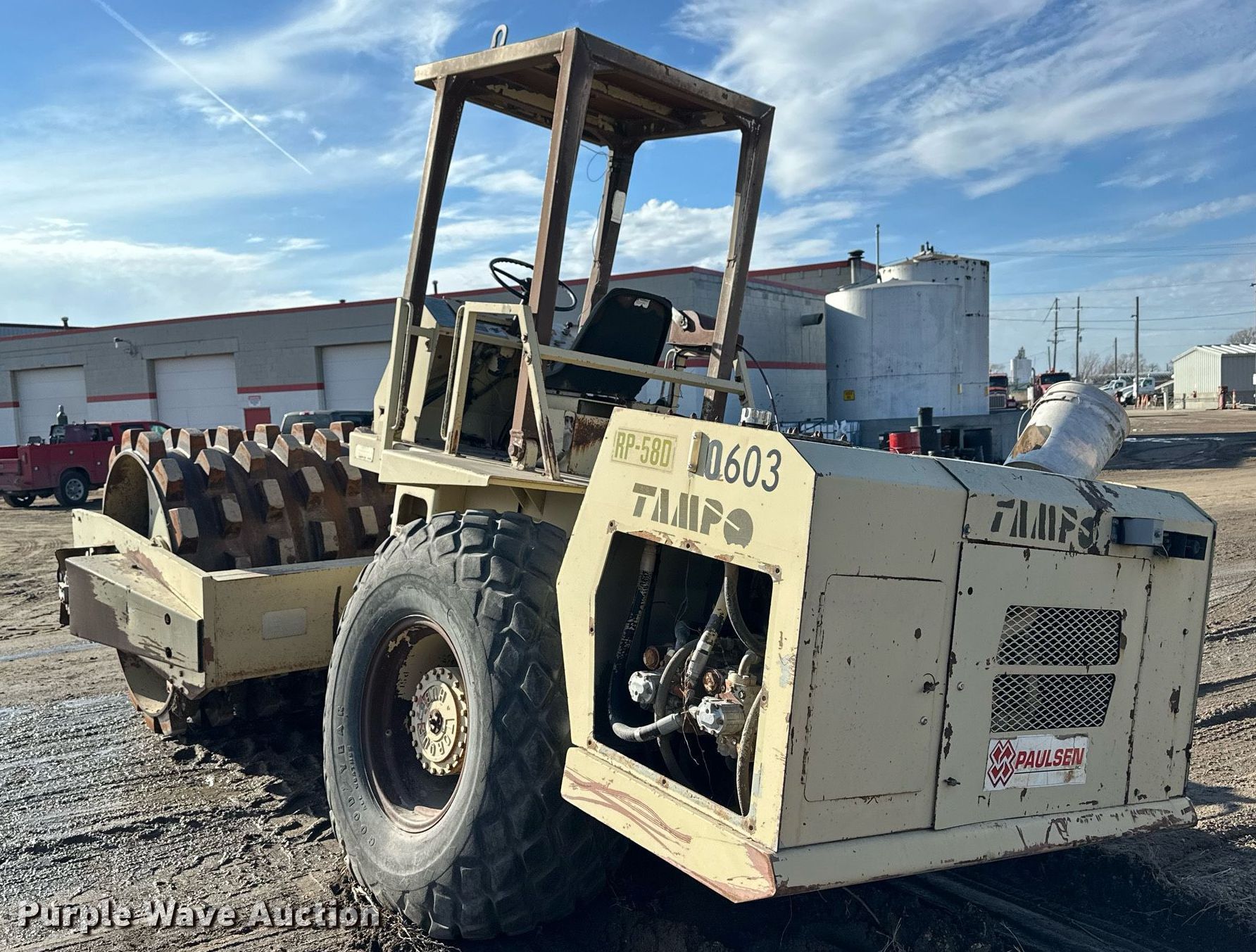 Tampo RP58D single drum vibratory roller. Serial: S84900073P, Unit #: 603. Engine Detroit Diesel, Cylinders: 3, Fuel type: Diesel. Transmission Hydrostatic, Two speed travel. Features Drum: Padfoot, Vibratory system: Single, Front drum Width: 84", Diameter: 58", Drum scrapers: Front. Tires Size: 23.1-26. Notes Rear tire flat, Engine issues , Non-operational unit. Paulsen Inc.. 1116 US-30. Cozad, NE 69130