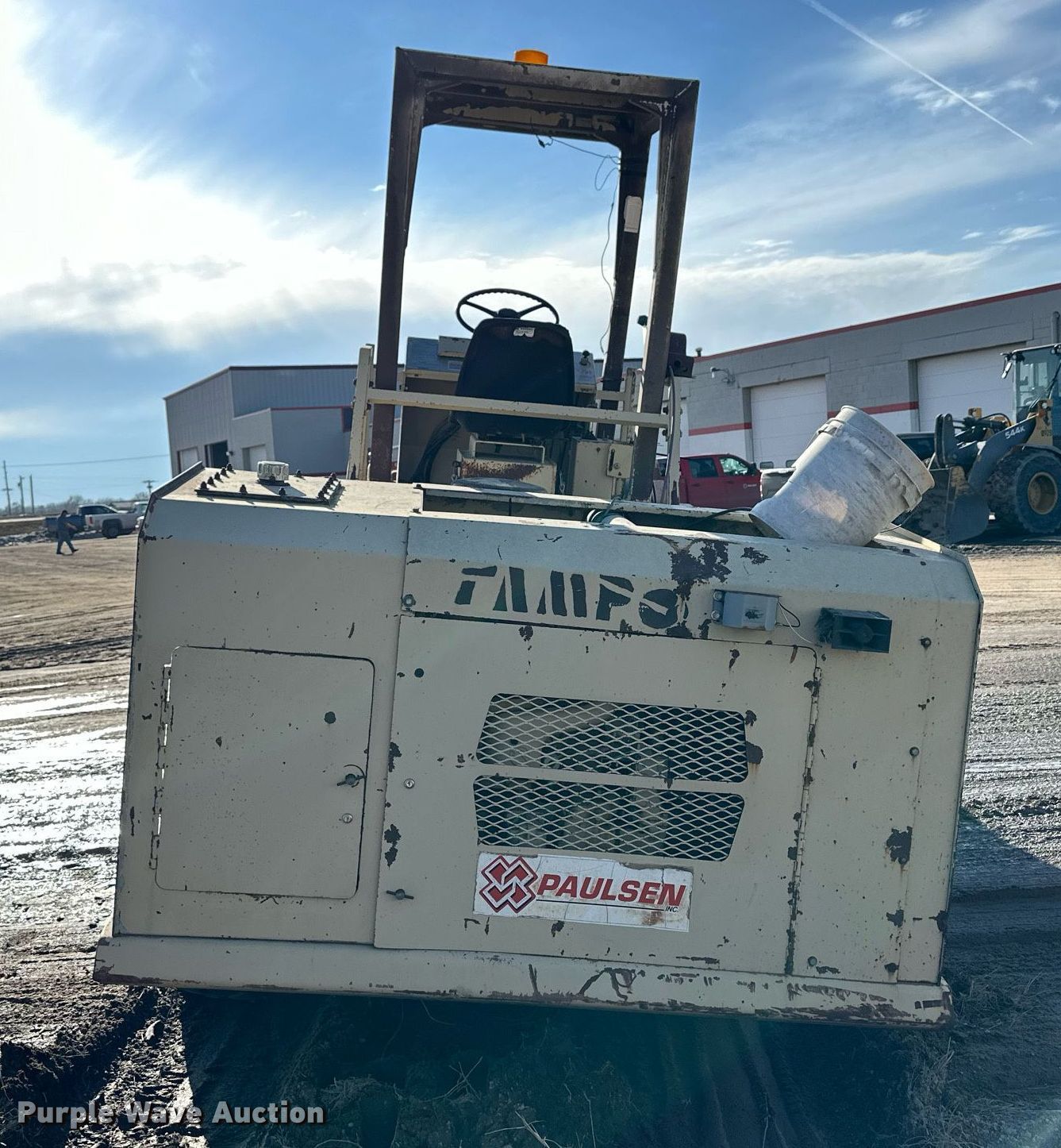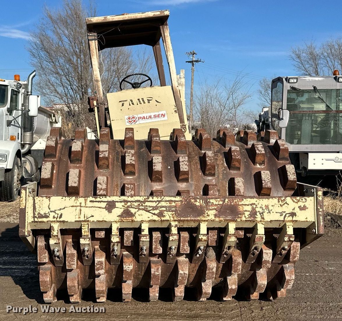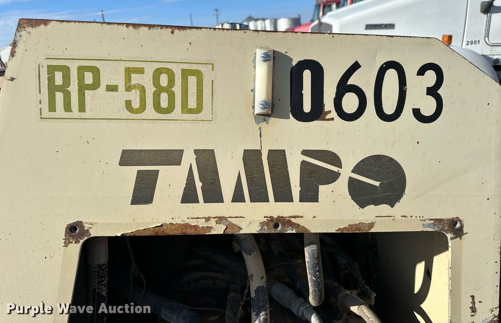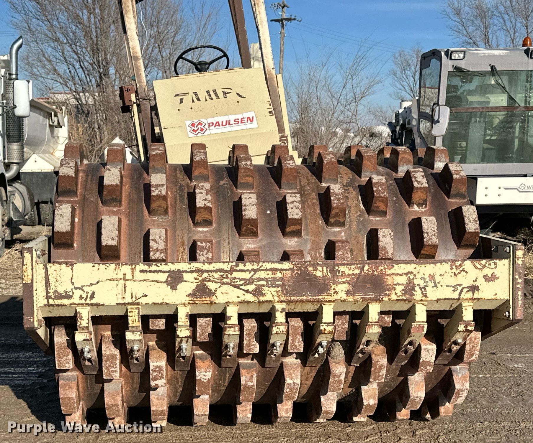 Tampo RP58D single drum vibratory roller. Serial: S84900073P, Unit #: 603. Engine Detroit Diesel, Cylinders: 3, Fuel type: Diesel. Transmission Hydrostatic, Two speed travel. Features Drum: Padfoot, Vibratory system: Single, Front drum Width: 84", Diameter: 58", Drum scrapers: Front. Tires Size: 23.1-26. Notes Rear tire flat, Engine issues , Non-operational unit. Paulsen Inc.. 1116 US-30. Cozad, NE 69130