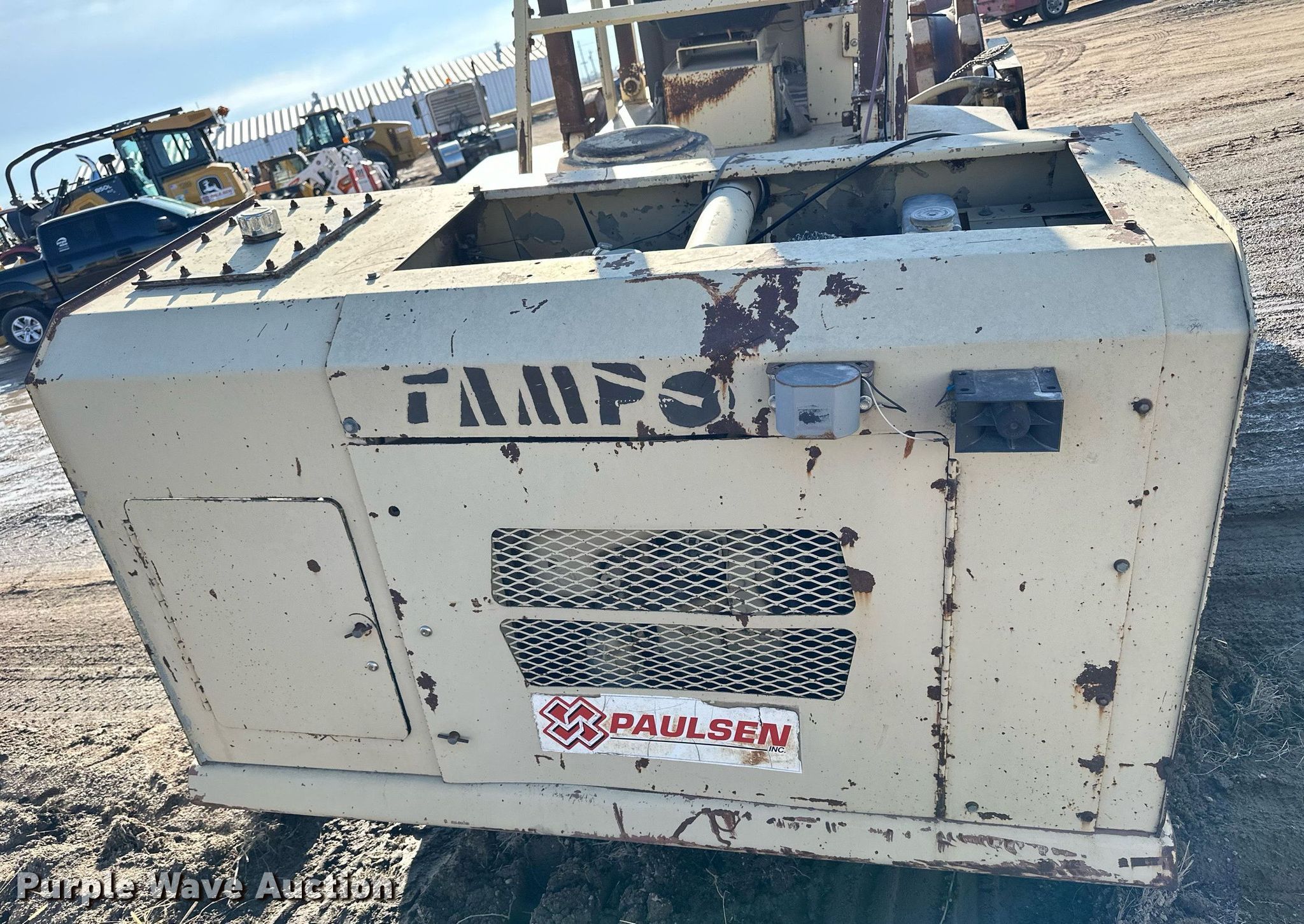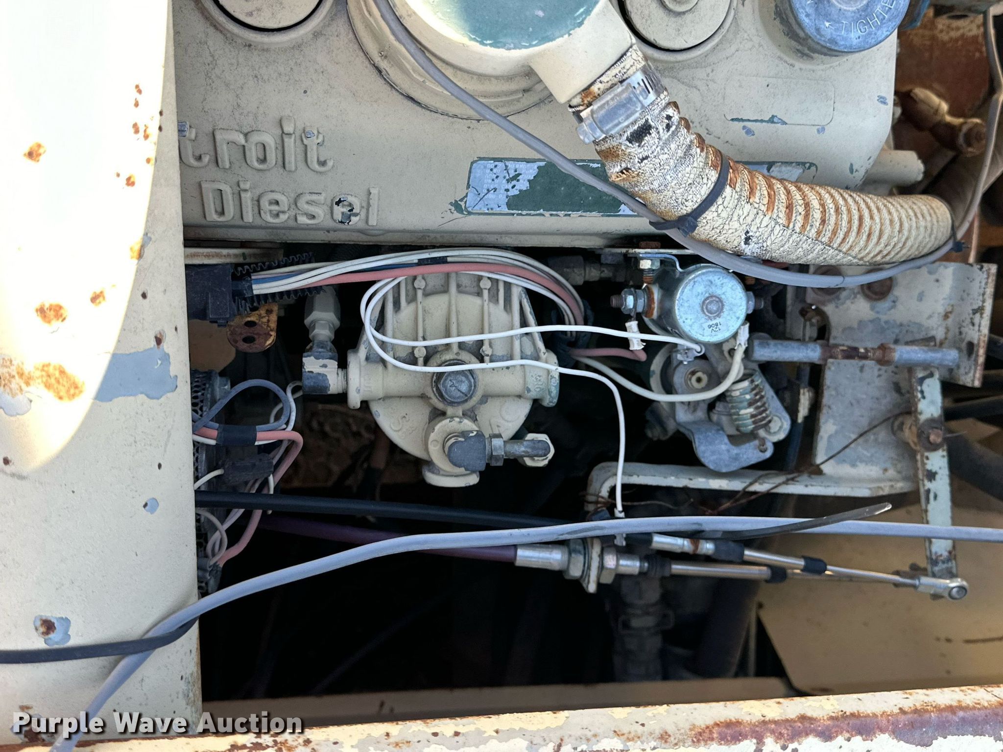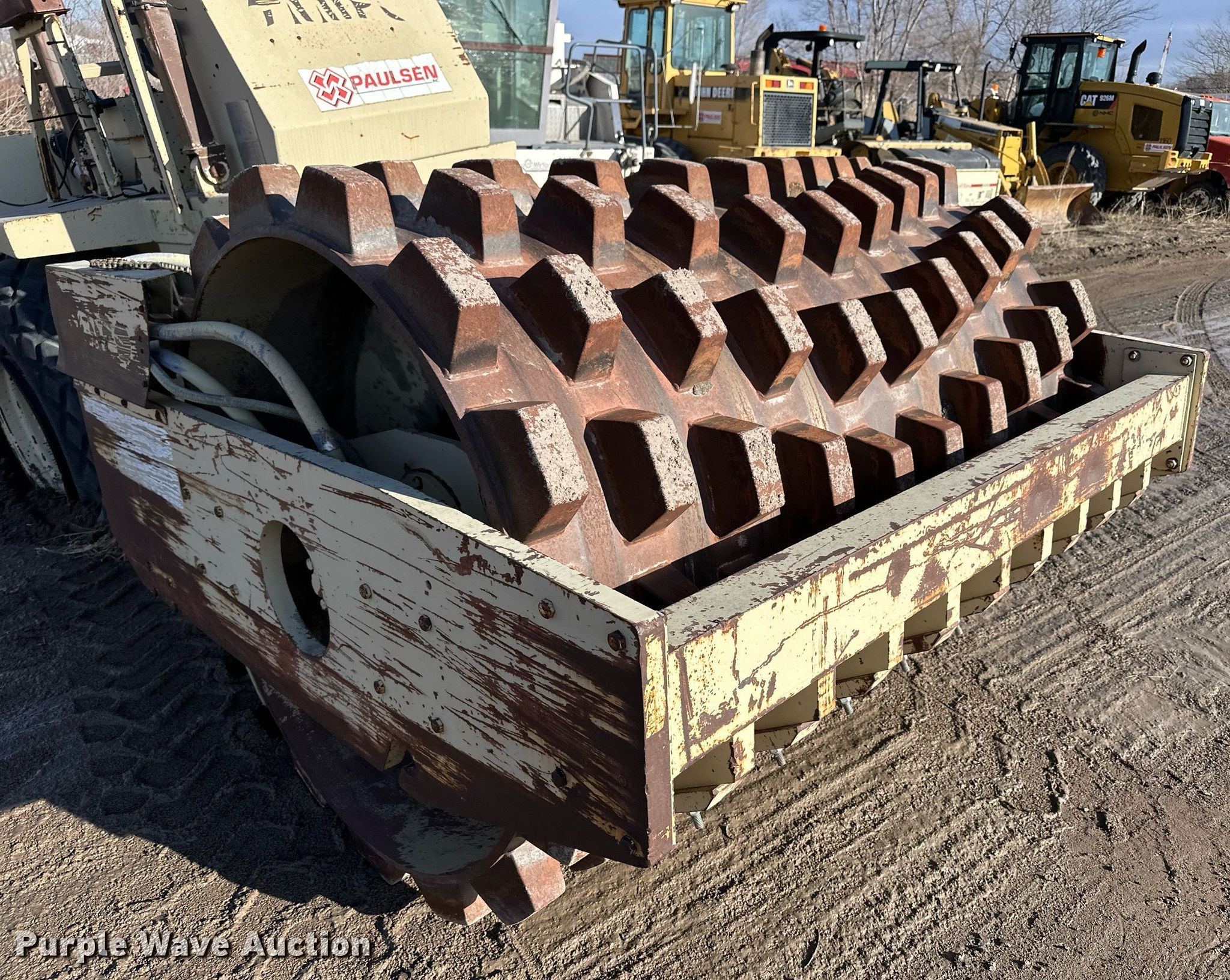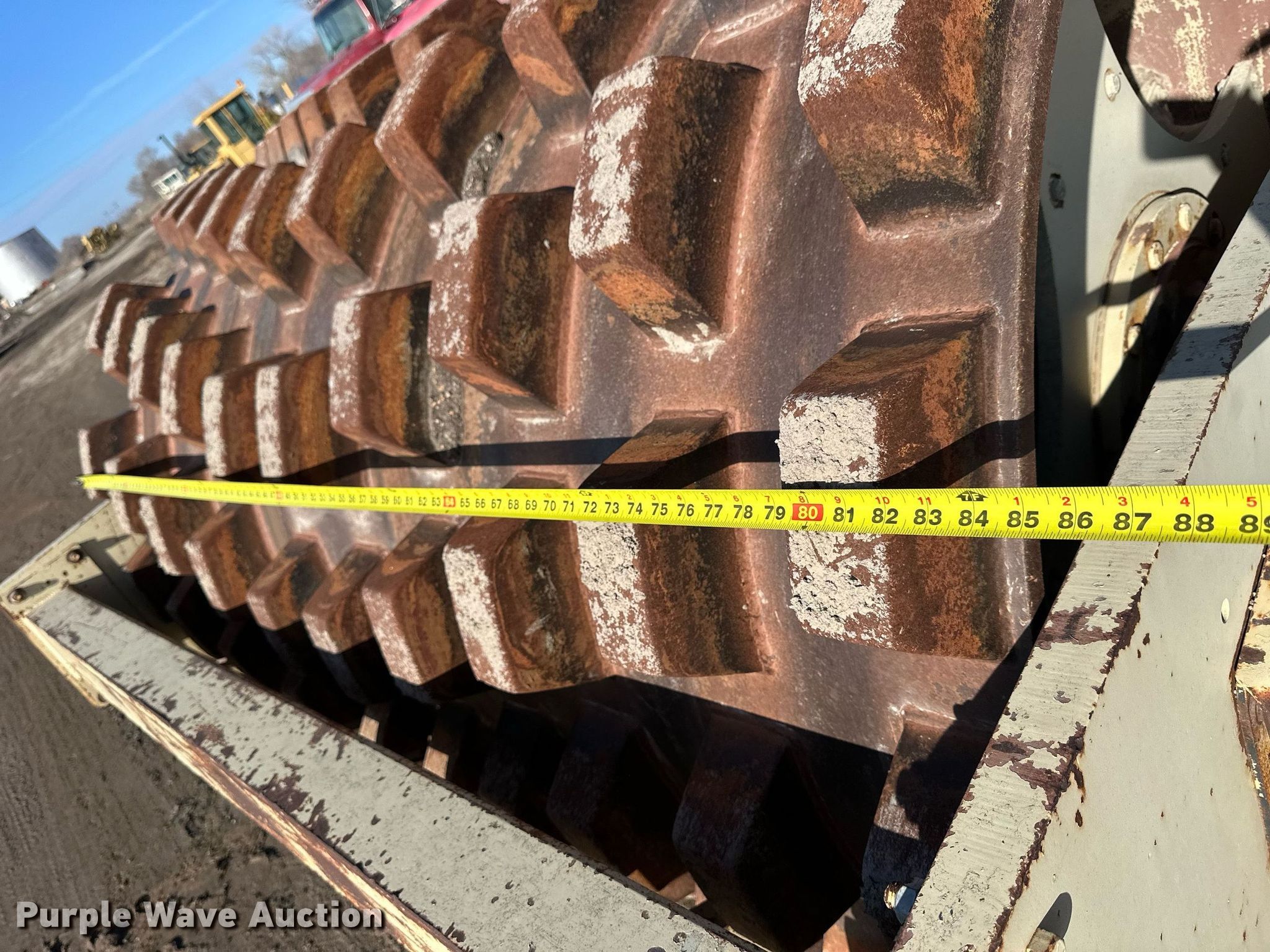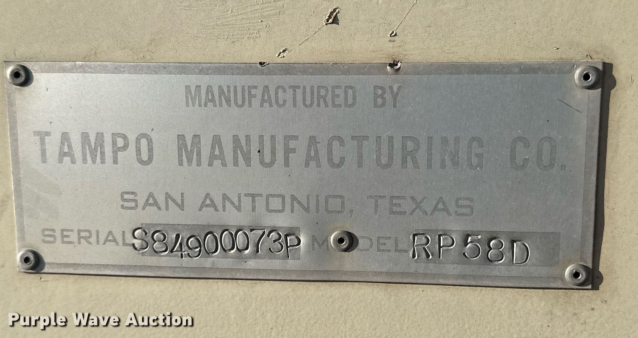 Tampo RP58D single drum vibratory roller. Serial: S84900073P, Unit #: 603. Engine Detroit Diesel, Cylinders: 3, Fuel type: Diesel. Transmission Hydrostatic, Two speed travel. Features Drum: Padfoot, Vibratory system: Single, Front drum Width: 84", Diameter: 58", Drum scrapers: Front. Tires Size: 23.1-26. Notes Rear tire flat, Engine issues , Non-operational unit. Paulsen Inc.. 1116 US-30. Cozad, NE 69130