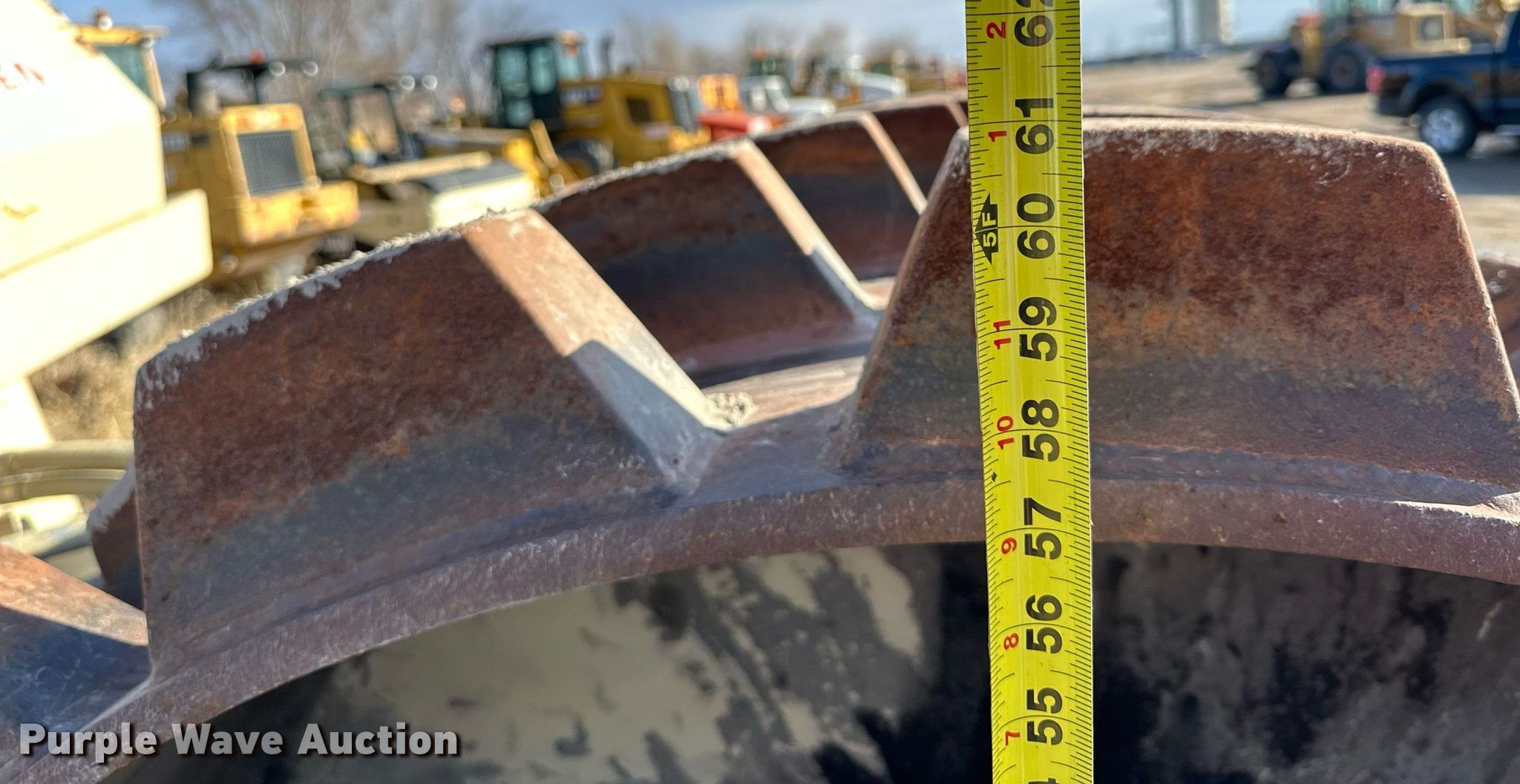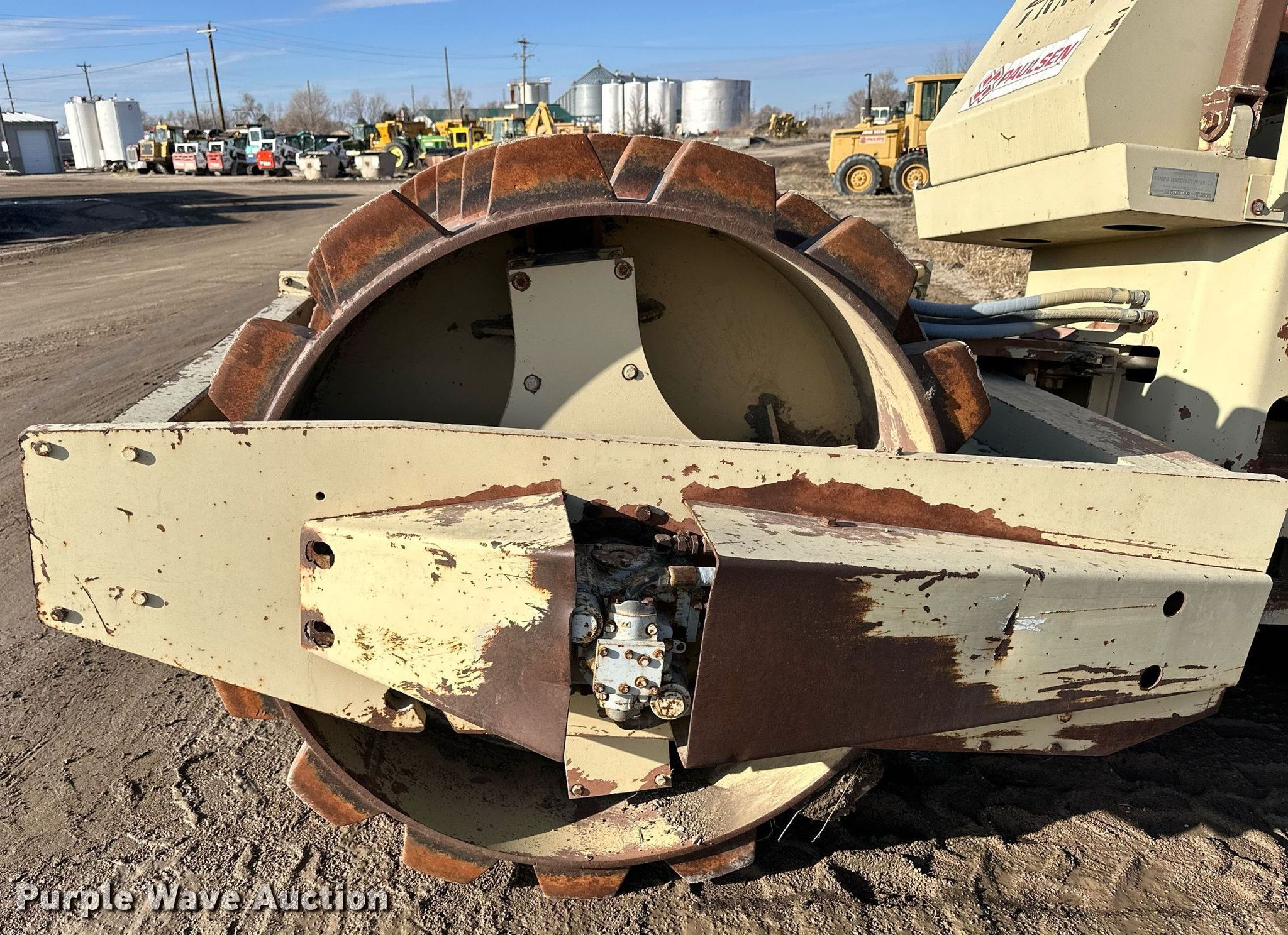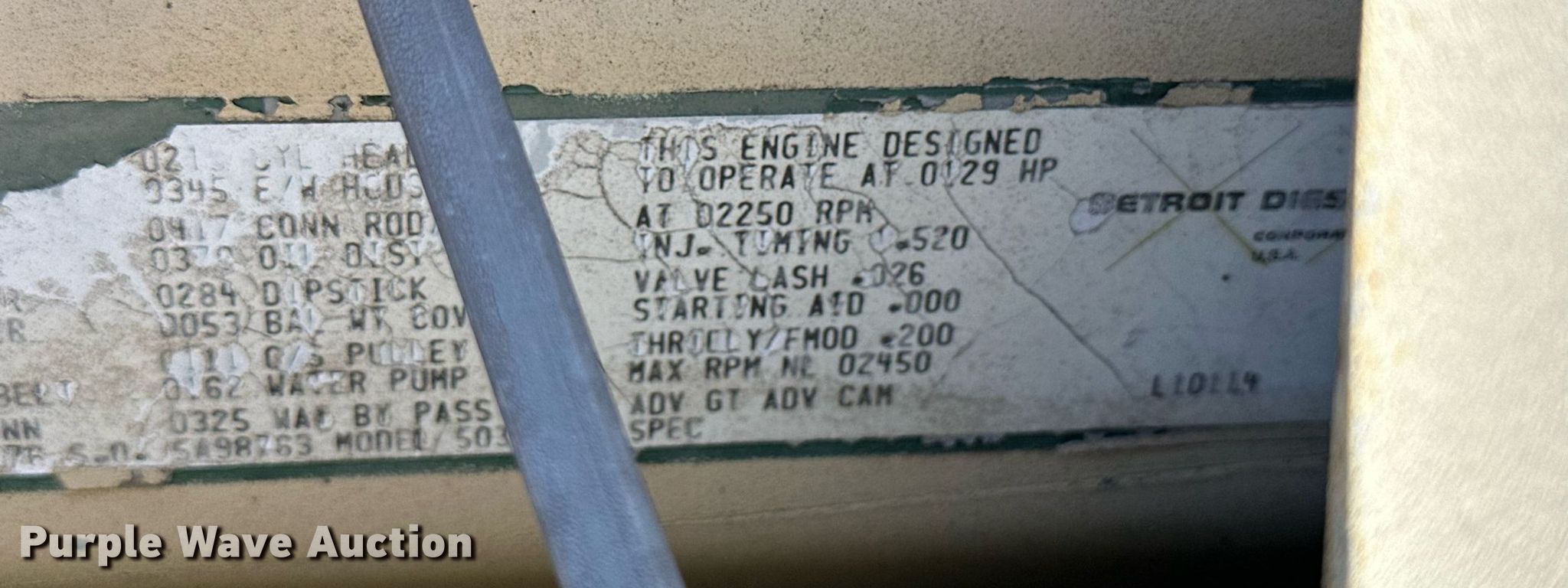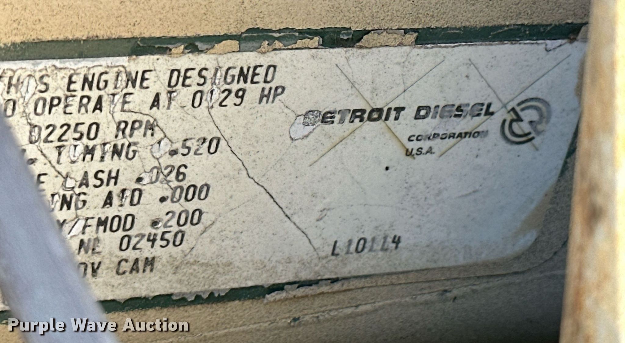 Tampo RP58D single drum vibratory roller. Serial: S84900073P, Unit #: 603. Engine Detroit Diesel, Cylinders: 3, Fuel type: Diesel. Transmission Hydrostatic, Two speed travel. Features Drum: Padfoot, Vibratory system: Single, Front drum Width: 84", Diameter: 58", Drum scrapers: Front. Tires Size: 23.1-26. Notes Rear tire flat, Engine issues , Non-operational unit. Paulsen Inc.. 1116 US-30. Cozad, NE 69130