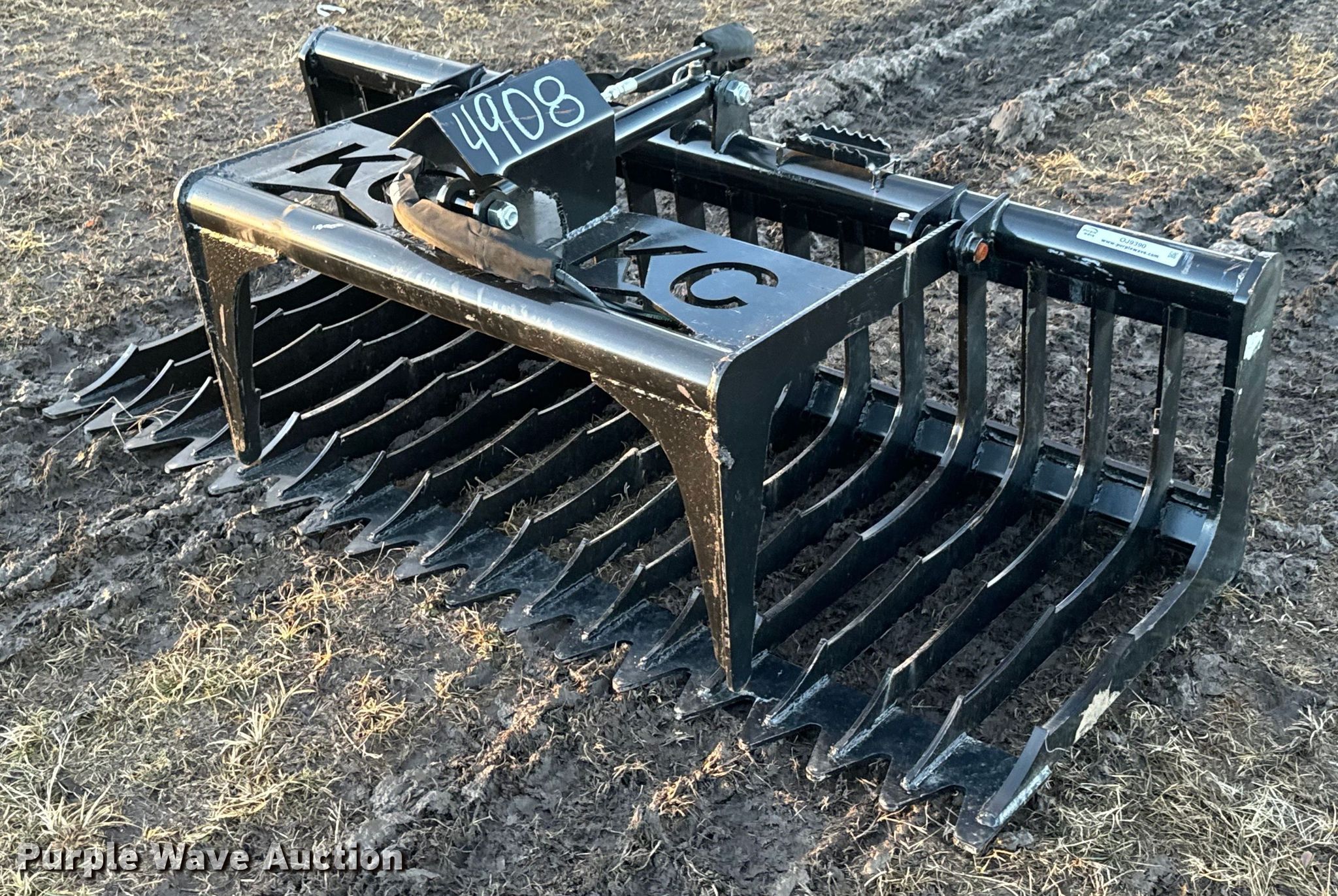 Purple Wave is selling a used Skid Steer Attach. in Kansas. This item is a KC skid steer rock grapple bucket with the following: Serial: A18E1604, Width: 75", Unused